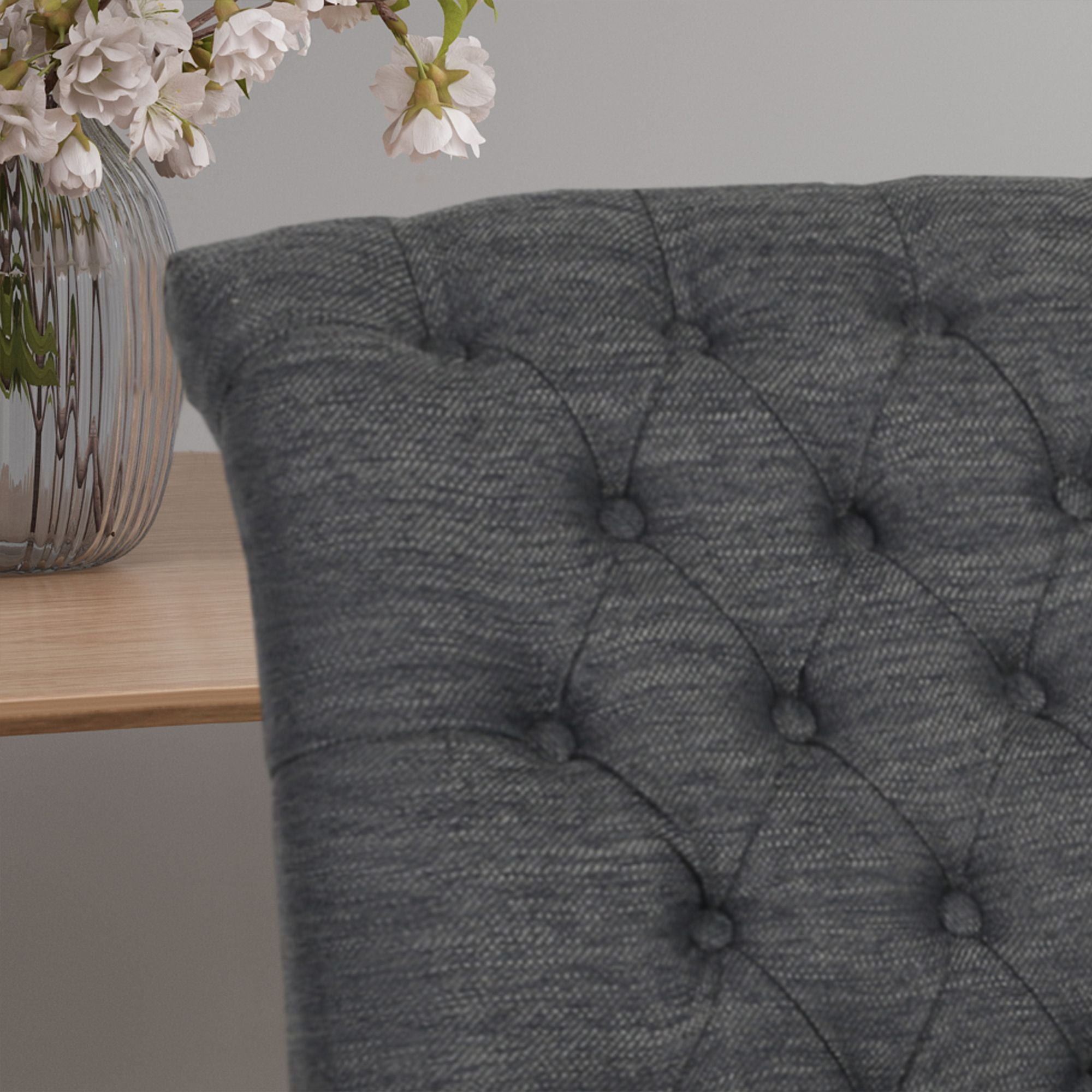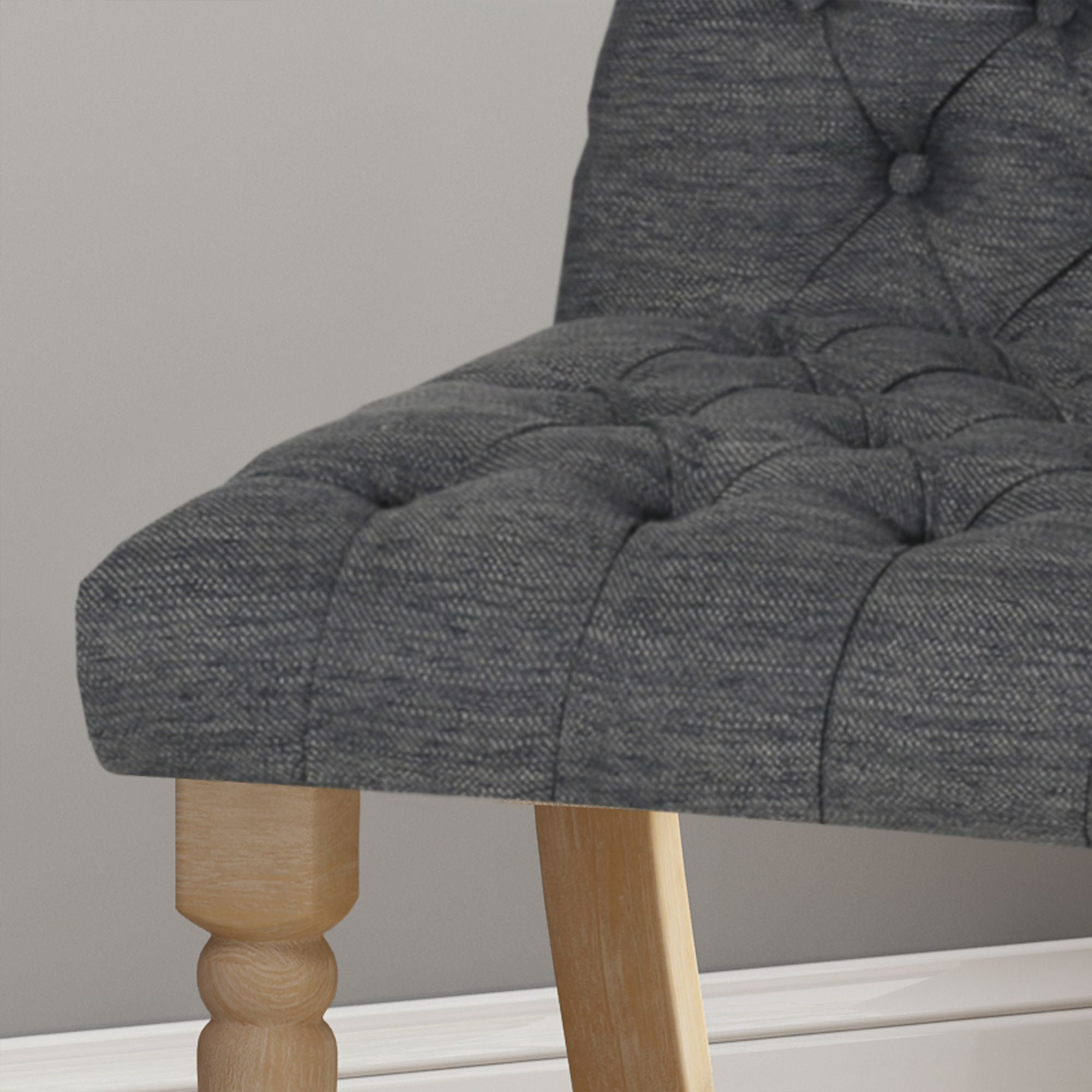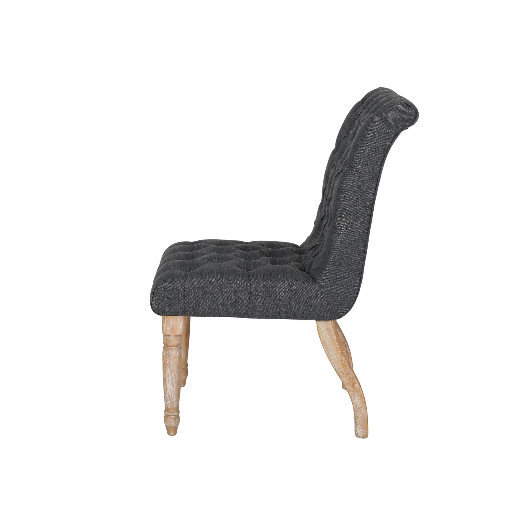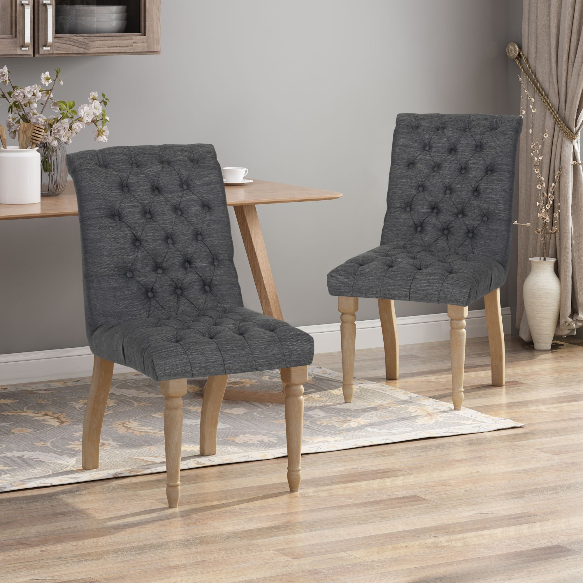 Noble House Field Traditional Tufted Dining Chairs 36.25″, Set of 2, Natural, Gray Includes: Two (2) Dining Chairs Material: Rubber Wood Cushion Material: Fabric Fabric Composition: 100% Polyester Finish: Natural Cushion Color: Charcoal Some Assembly Required Hand Crafted Details Dimensions: 27.80 inches deep x 19.75 inches wide x 36.25 inches high Seat Dimensions: 17.50 inches deep x 19.75 inches wide x 19.00 inches high