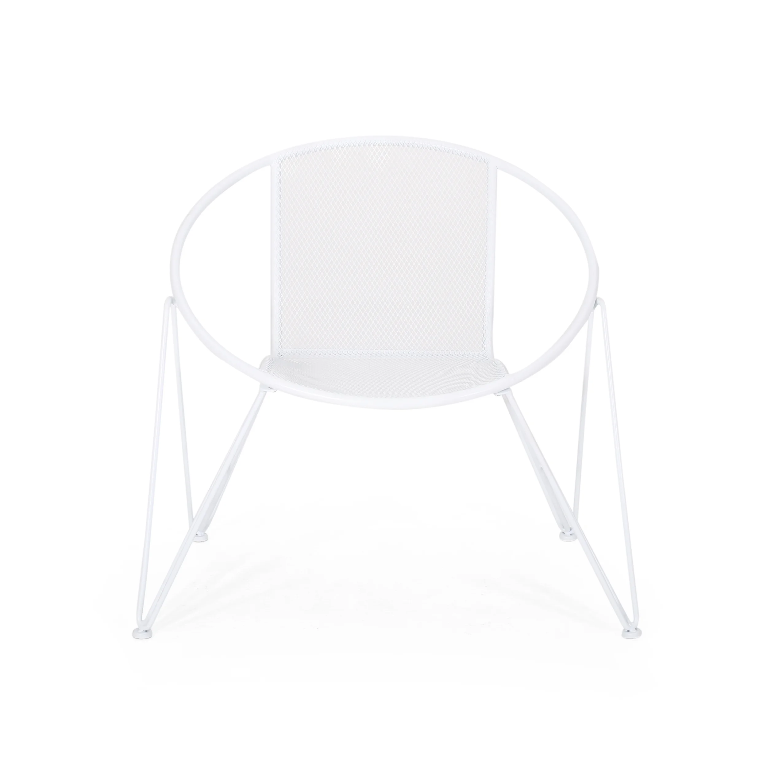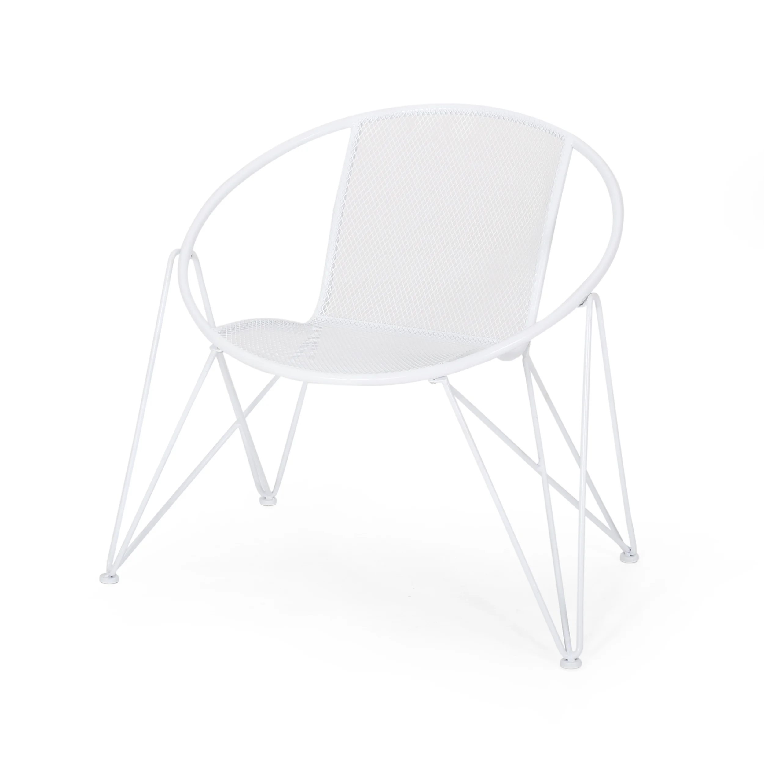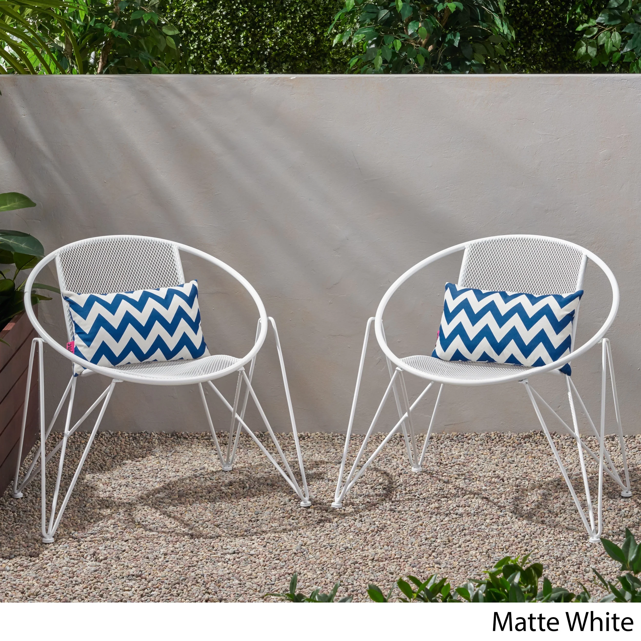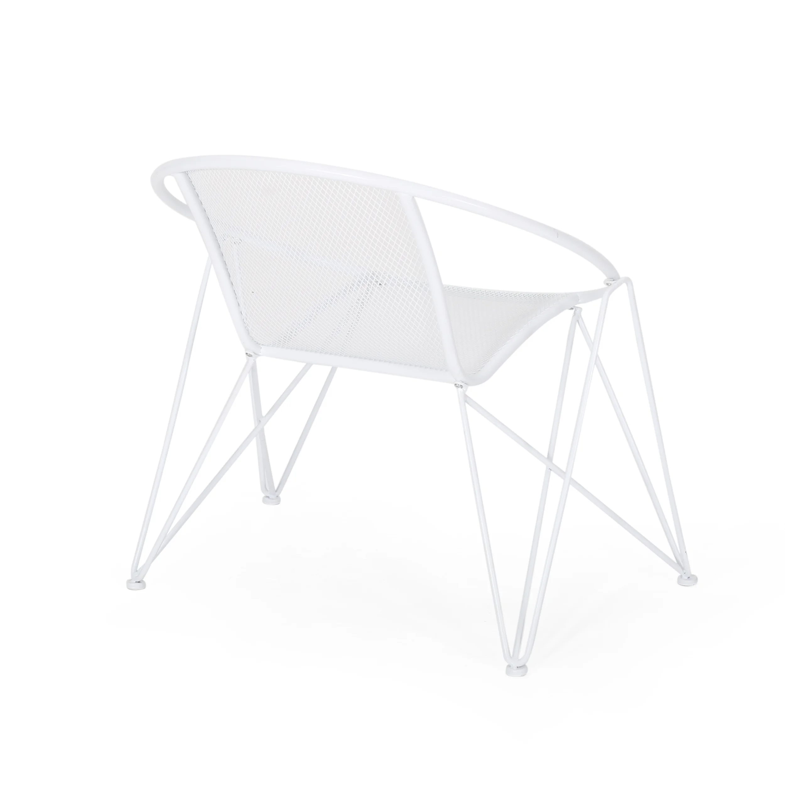 Accent your outdoor décor with a set of chairs that will bring a lively atmosphere to your home. Featuring a breezy mesh look and rounded silhouette, our chair set provides a timeless style to your home while providing ultimate comfort. Consisting of an iron frame and hairpin legs, this charming piece is made to last with its intricate, durable structure and refreshing finish. As the perfect backyard companion, this chair set allows you to relax and enjoy the summer sun for years to come. MODERN: With clean lines contrasted perfectly by its rounded silhouette, our chair is the ideal modern accessory for your interior space. Finished with wide hairpin legs, this chair not only has a sleek, minimalistic look but also provides a stable structure. MESH DESIGN: The seating of this chair offers a fine diamond mesh design that allows for air to circulate and ventilate body heat on a hot day. HAIRPIN LEGS: To complete the sleek look and feel, the hairpin legs of these chairs provide both style and stability. The minimalist look of the legs ties in perfectly with the modern design. IRON FRAME: Constructed of iron, the frame of these chairs are made to be incredibly durable, ensuring that this piece will hold up under heavy use. Combined with the hairpin legs, this chair offers incredible stability for your home. ASSEMBLY REQUIRED: Some assembly is required for this chair set. All of the instructions and tools needed for assembly are included. This comes as a set of two. Features: Includes: Two (2) Club Chairs Material: Iron Finish: Matte White Hand-Crafted Details Assembly Required Specifications: Product Dimensions: 29.75″ H x 26.25″ W x 33.00″ D Product Weight: 29.54 lbs Seat Dimensions: 17.25″ H x 16.00″ W x 17.00″ D