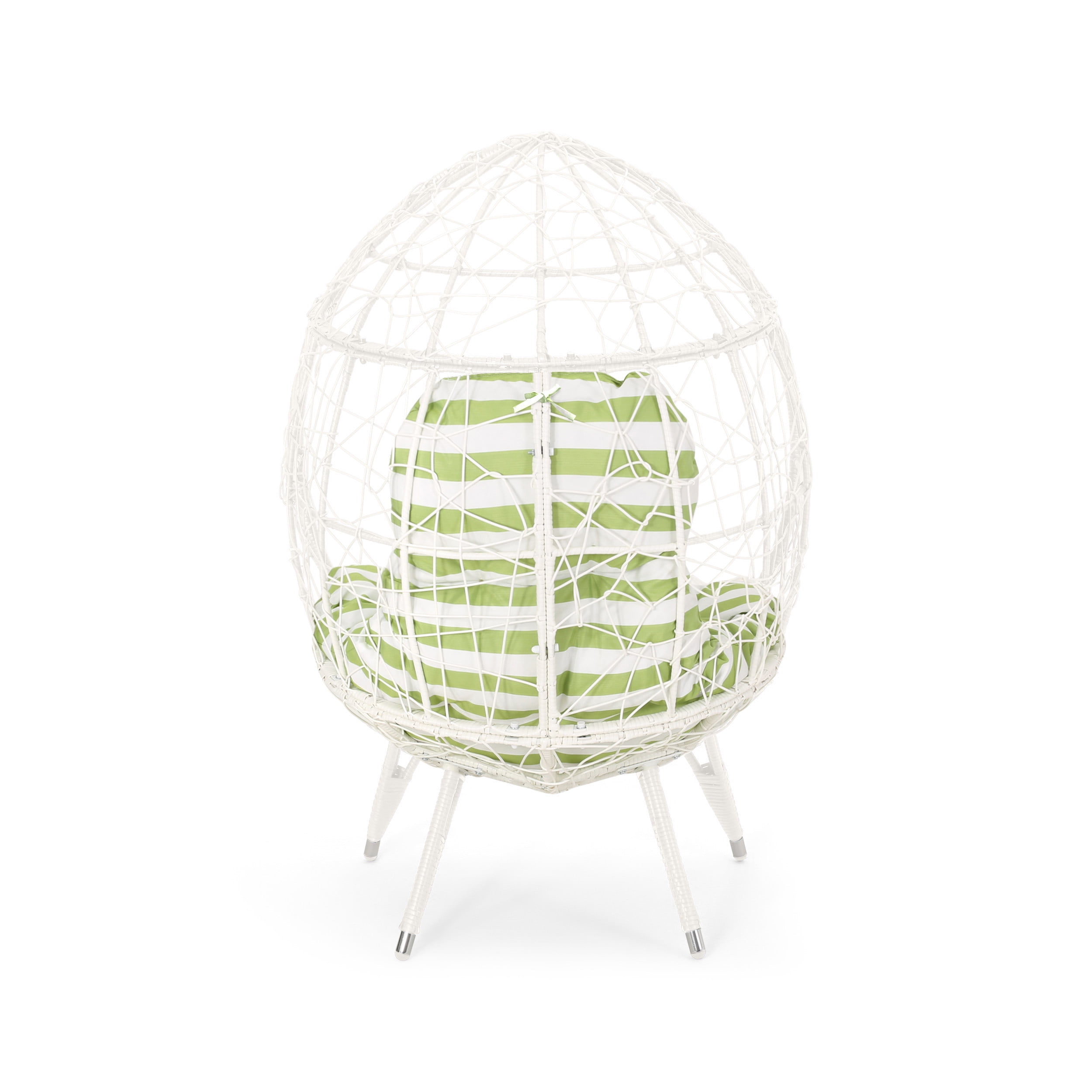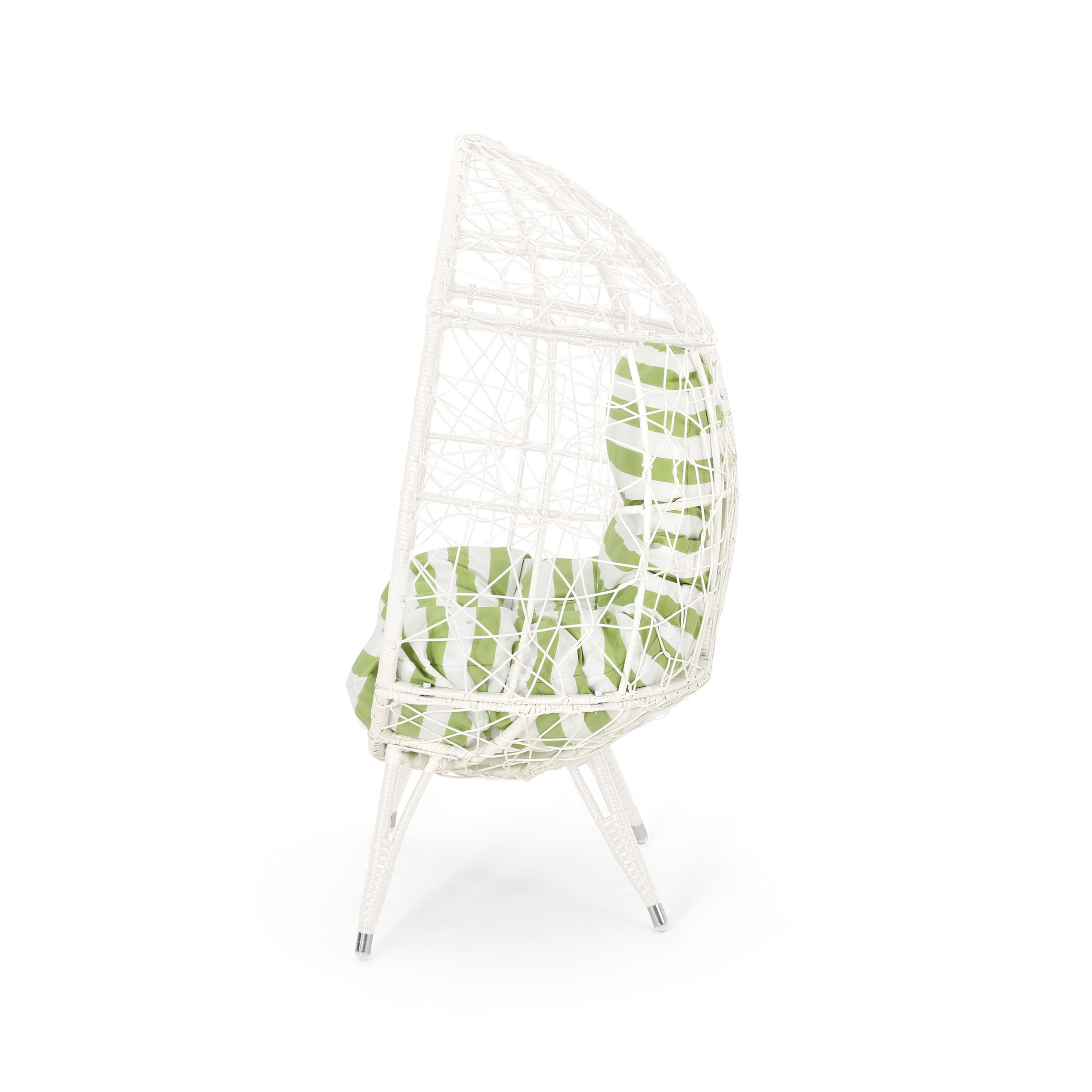 Noble House Gianni Outdoor Wicker Teardrop Chair, White and Green, Metal Includes: One (1) Teardrop Chair Material: Faux Rattan Frame Material: Iron Cushion Material: Water Resistant Fabric Cushion Composition: 100% Polyester