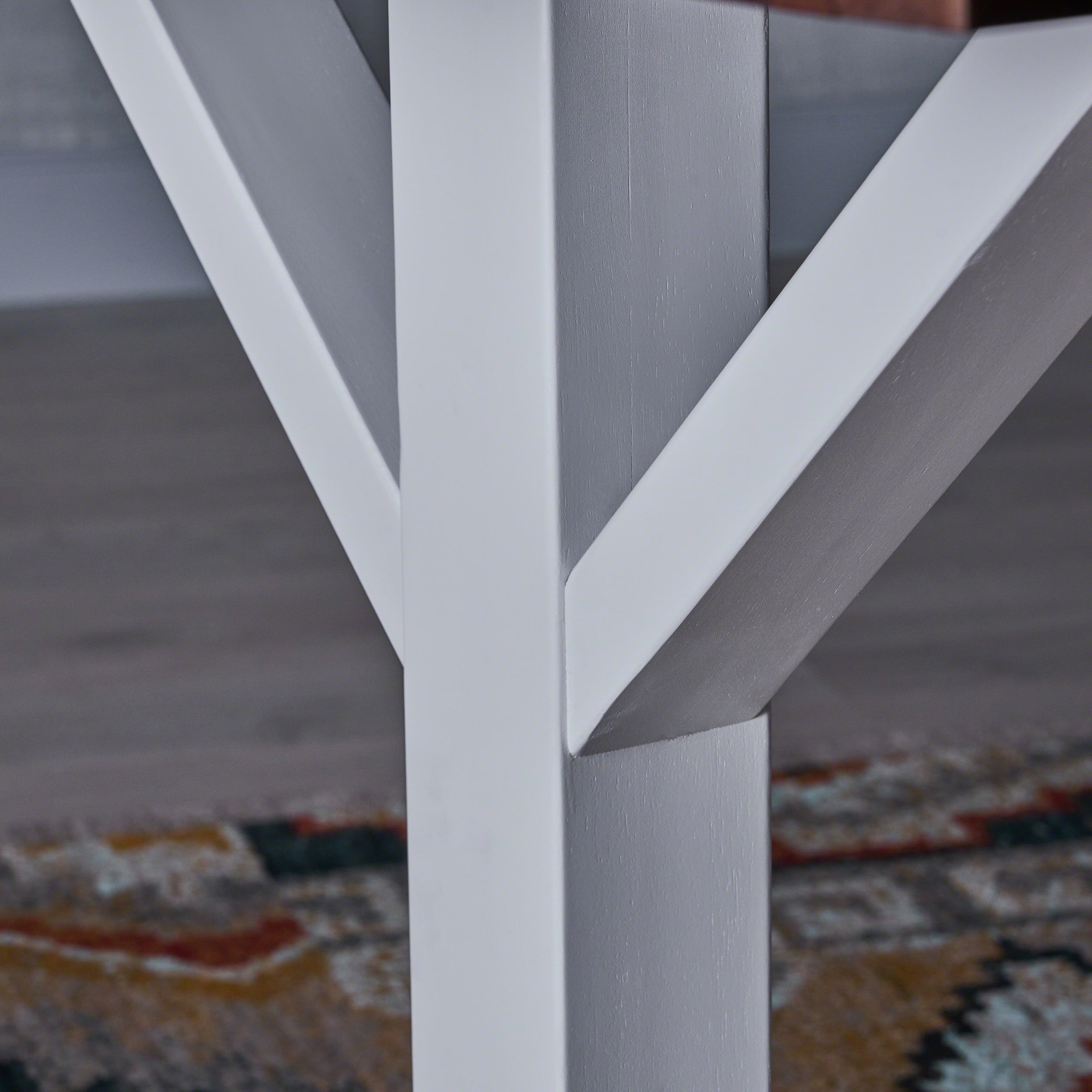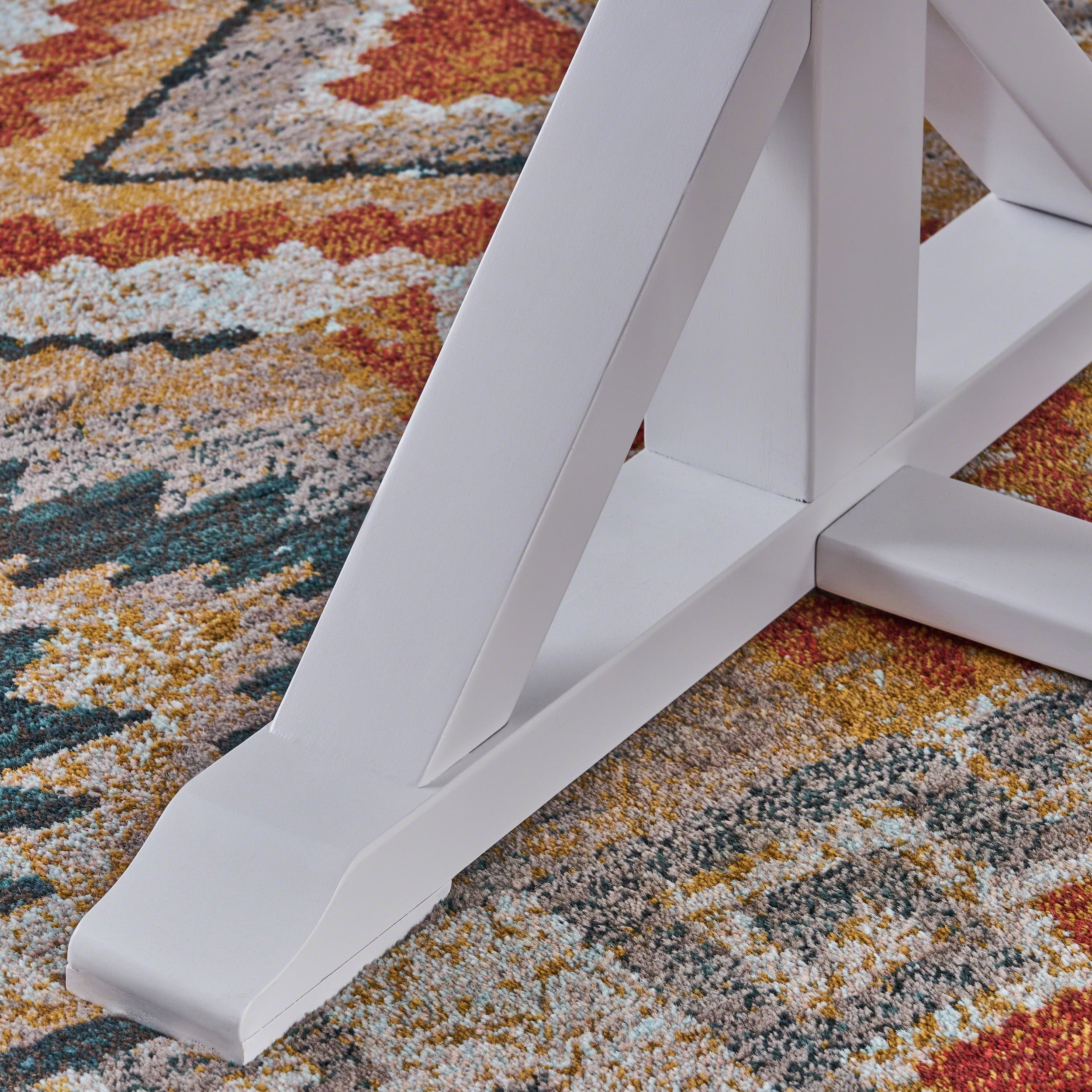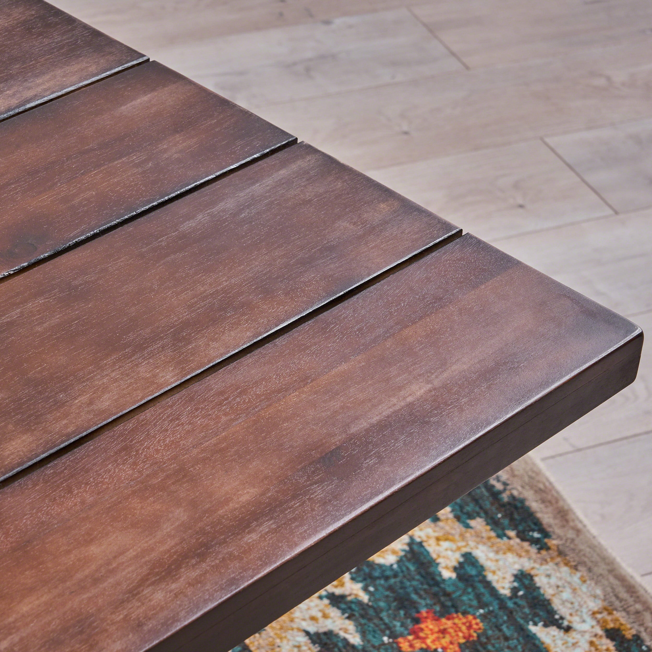 Includes: One (1) Dining Table Frame Material: Acacia Wood Table Top Finish: Dark Brown Leg Finish: White Hand-Crafted Details Some Assembly Required Product Dimensions: 35.50 inches deep x 69.00 inches wide x 29.75 inches high