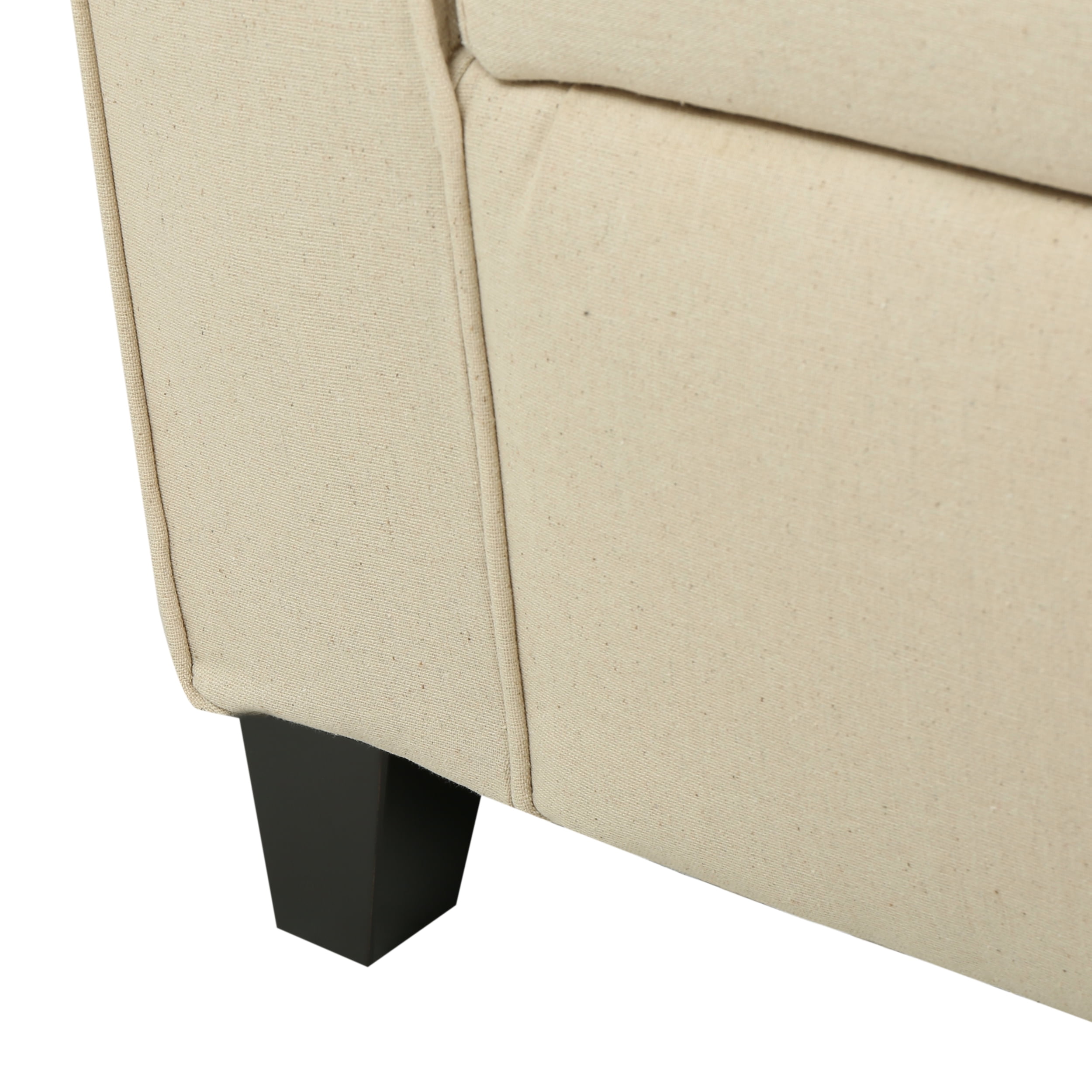Noble House Haden Contemporary Fabric Upholstered Storage Ottoman Bench with Rolled Arms, Beige