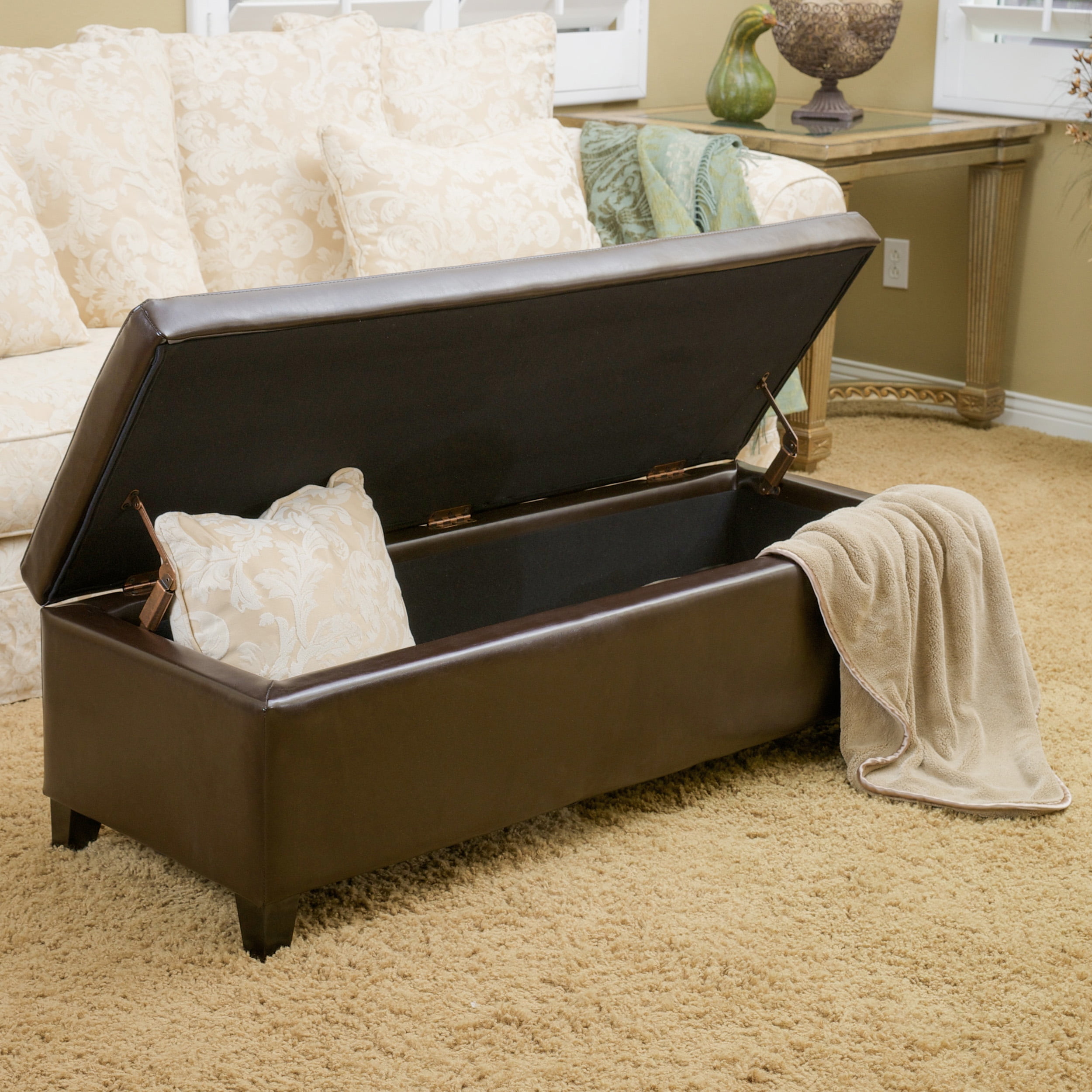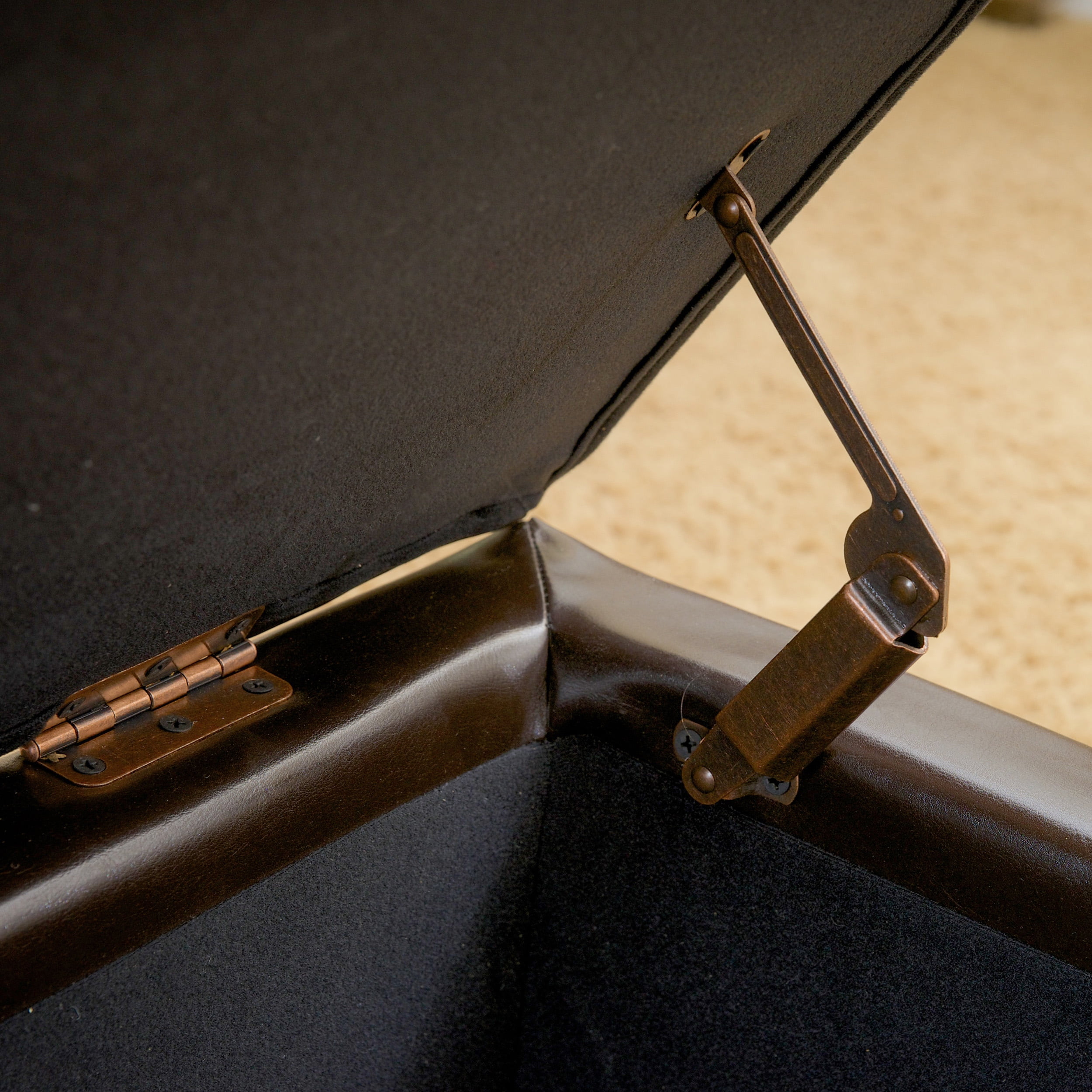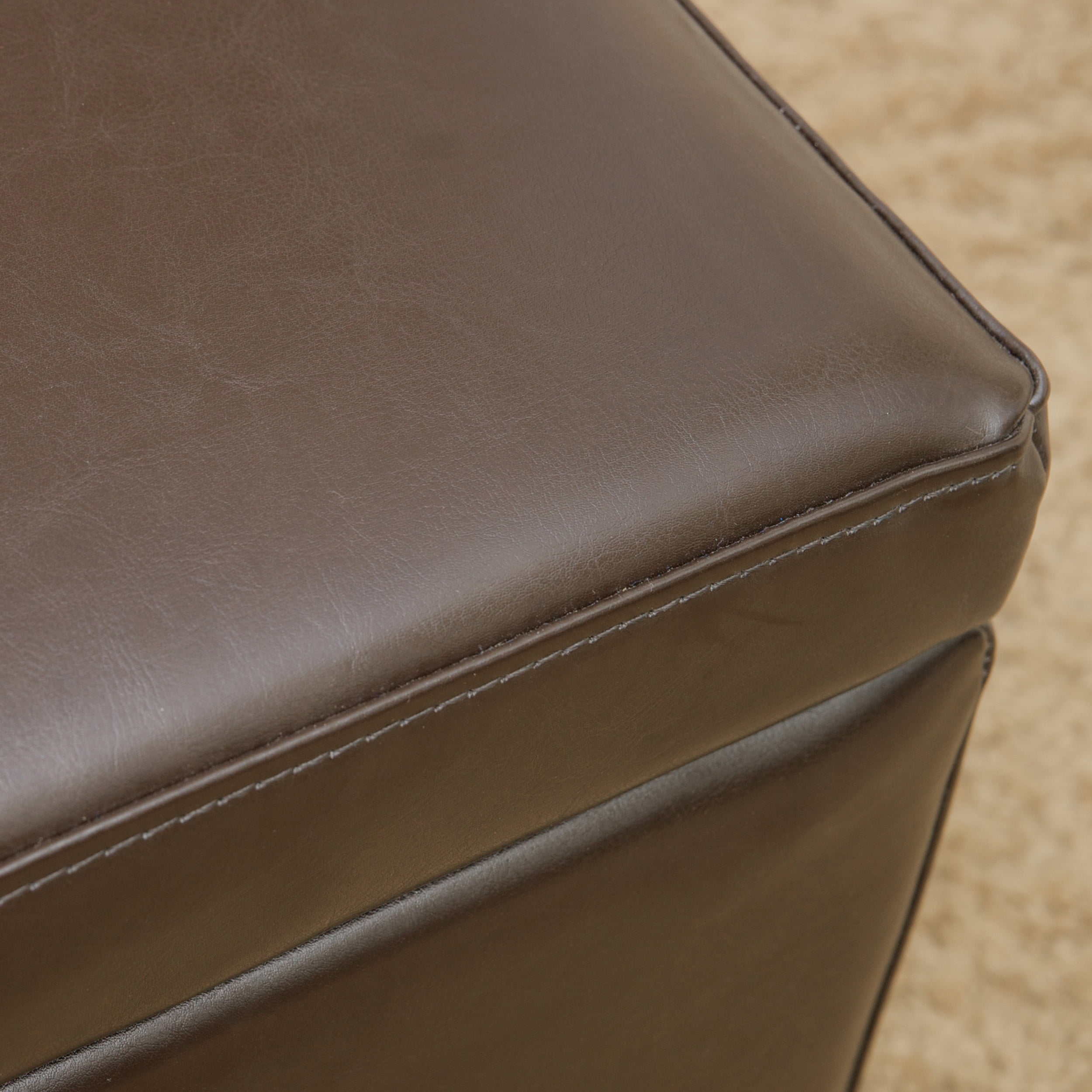 Noble House Hansen Brown Bonded Leather Storage Ottoman