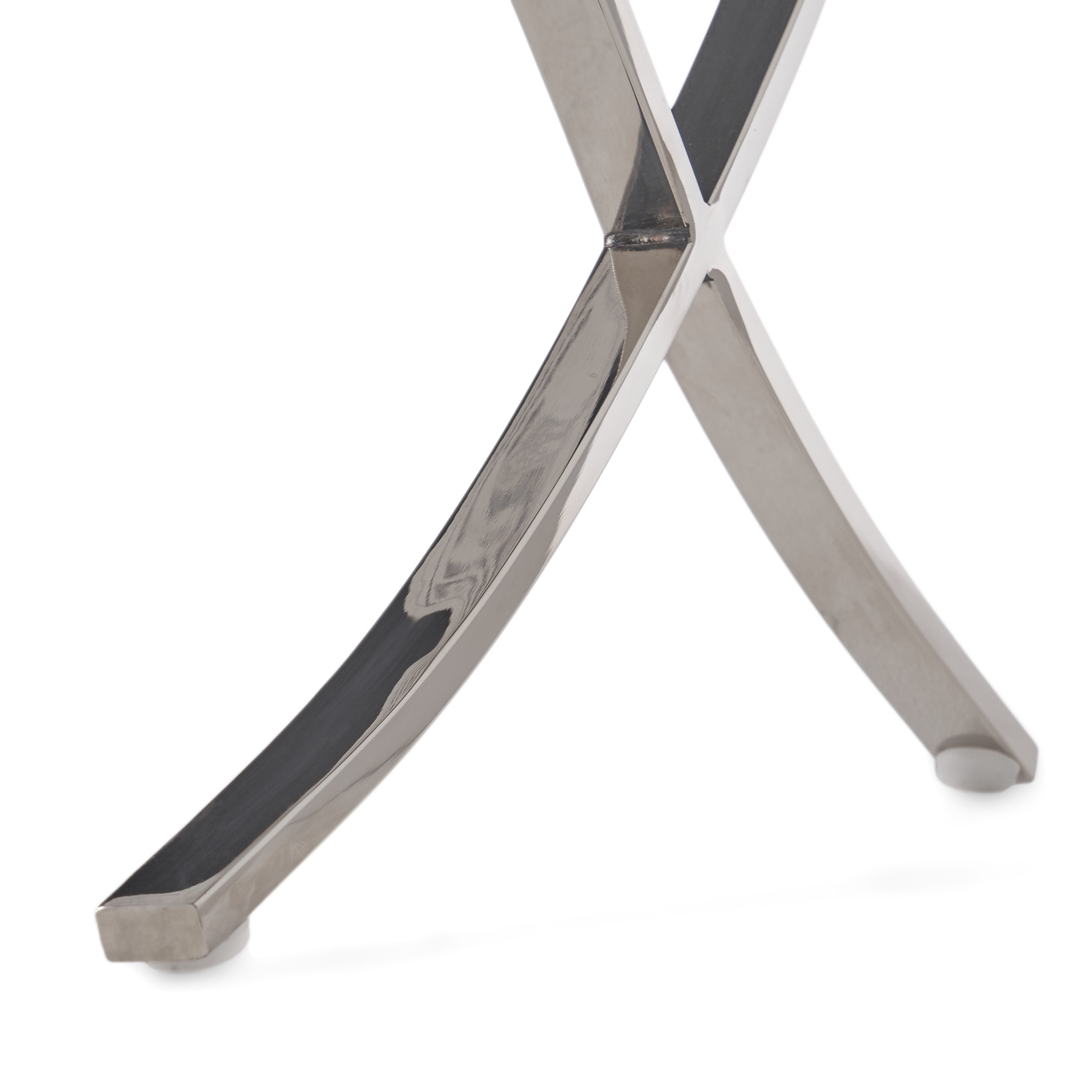 Entertaining your guests is made easy with a set of dining chairs that bring comfort and an air of refinement to your dining set. This set of chairs features gorgeous button-tufted seating and is complemented by smooth waffle stitching. Finished with chic piped edges along its stitching, each chair emphasizes modern design with its careful attention to detail. The dazzling silver X-shaped leg base adds the final touch to this set, bringing a adorned looked to any interior space.