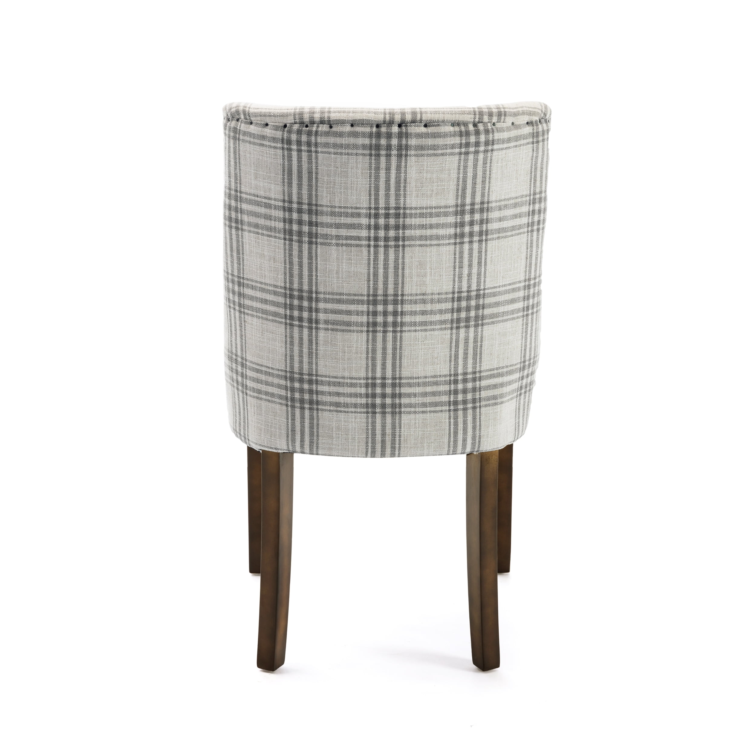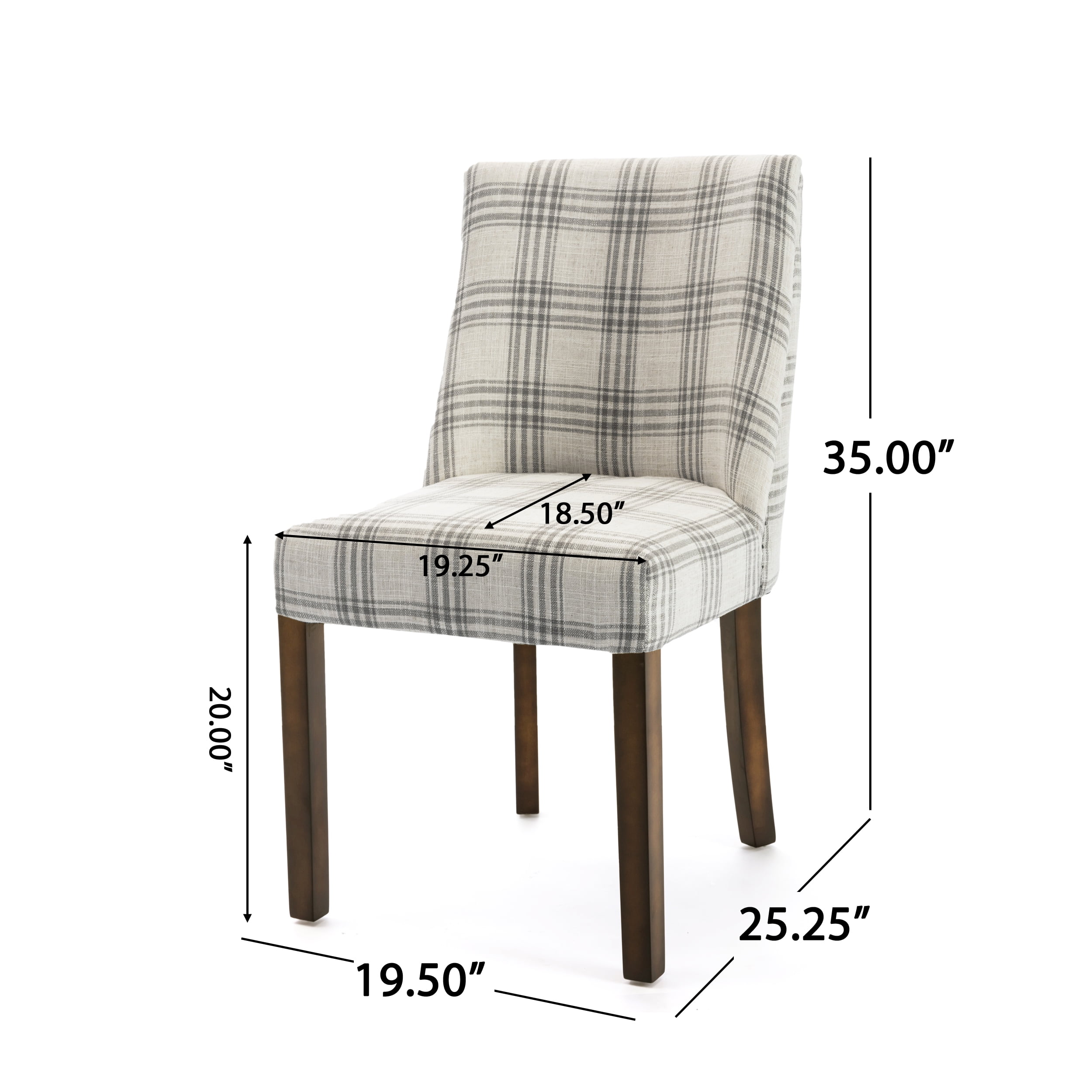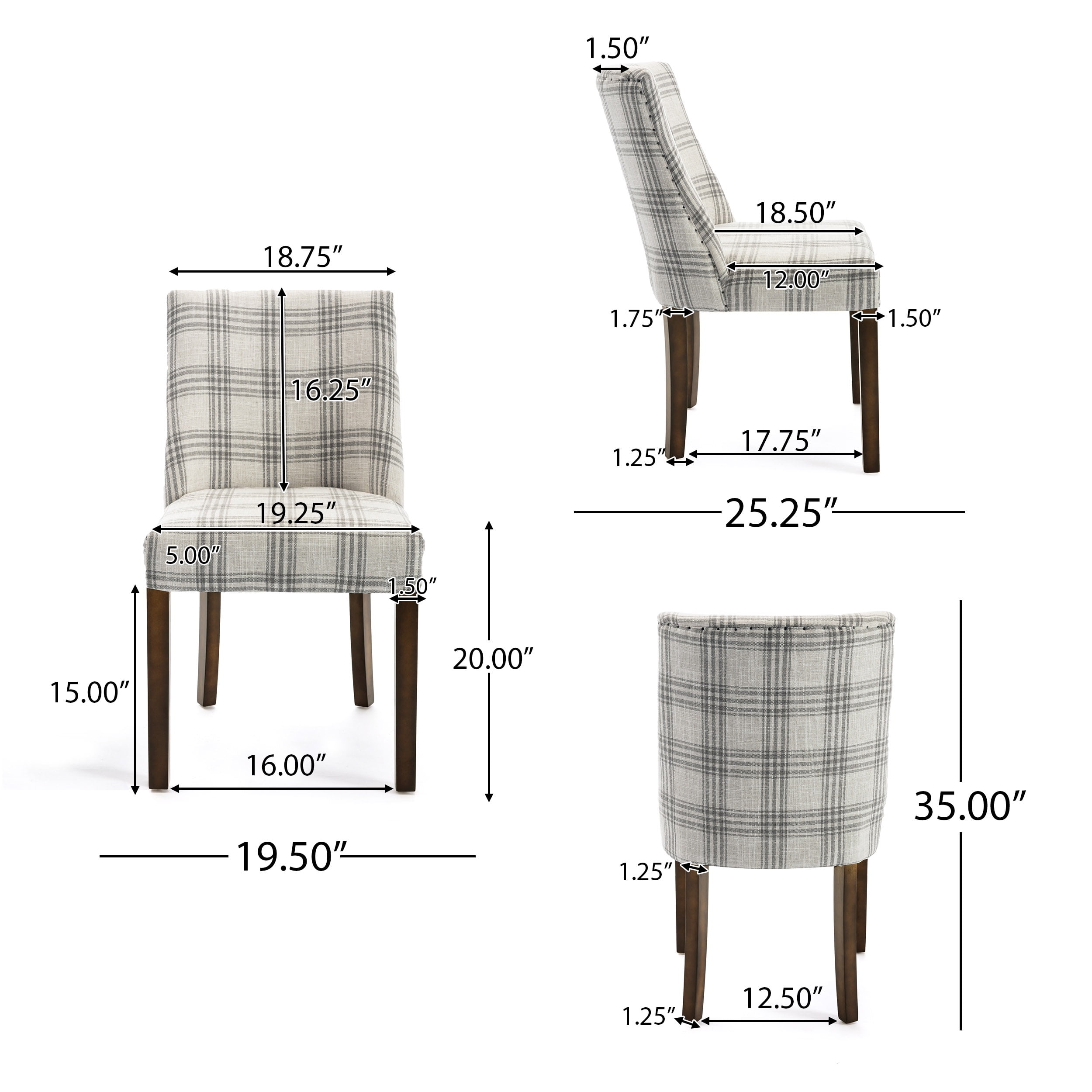 Noble House Harrison Contemporary Fabric Dining Chairs, Set of 2, Gray: Includes: Two (2) Dining Chairs Material: Fabric Multiple Fabric Composition Leg Material: Rubberwood Multiple Color Options Leg Finish: Brown Hand-Crafted Details Assembly Required Dimensions: 25.25 inches deep x 19.50 inches wide x 35.00 inches high Seat Dimensions: 18.50 inches deep x 19.25 inches wide x 20.00 inches high