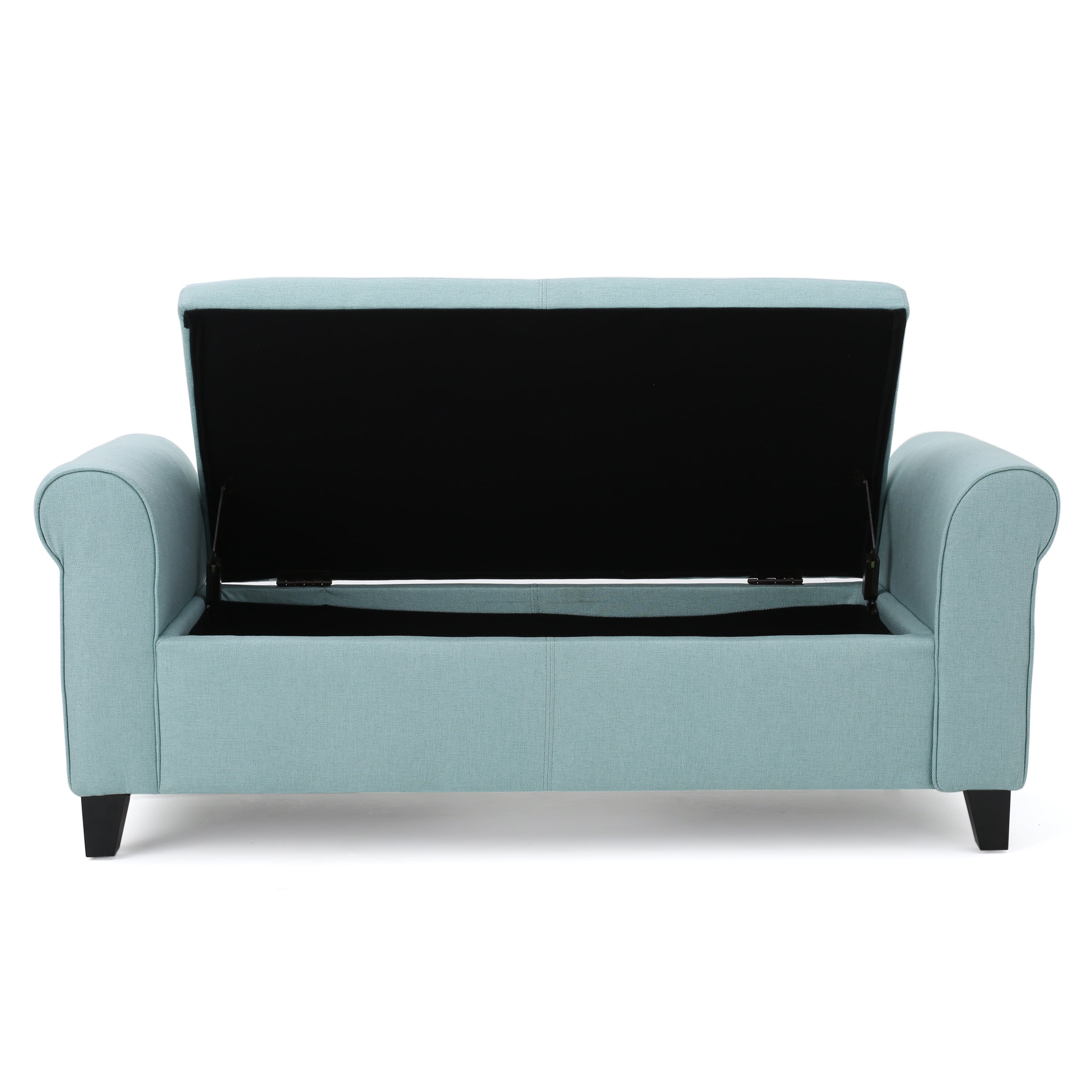 Noble House Haynes Contemporary Fabric Upholstered Storage Ottoman Bench with Rolled Arms, Light Blue