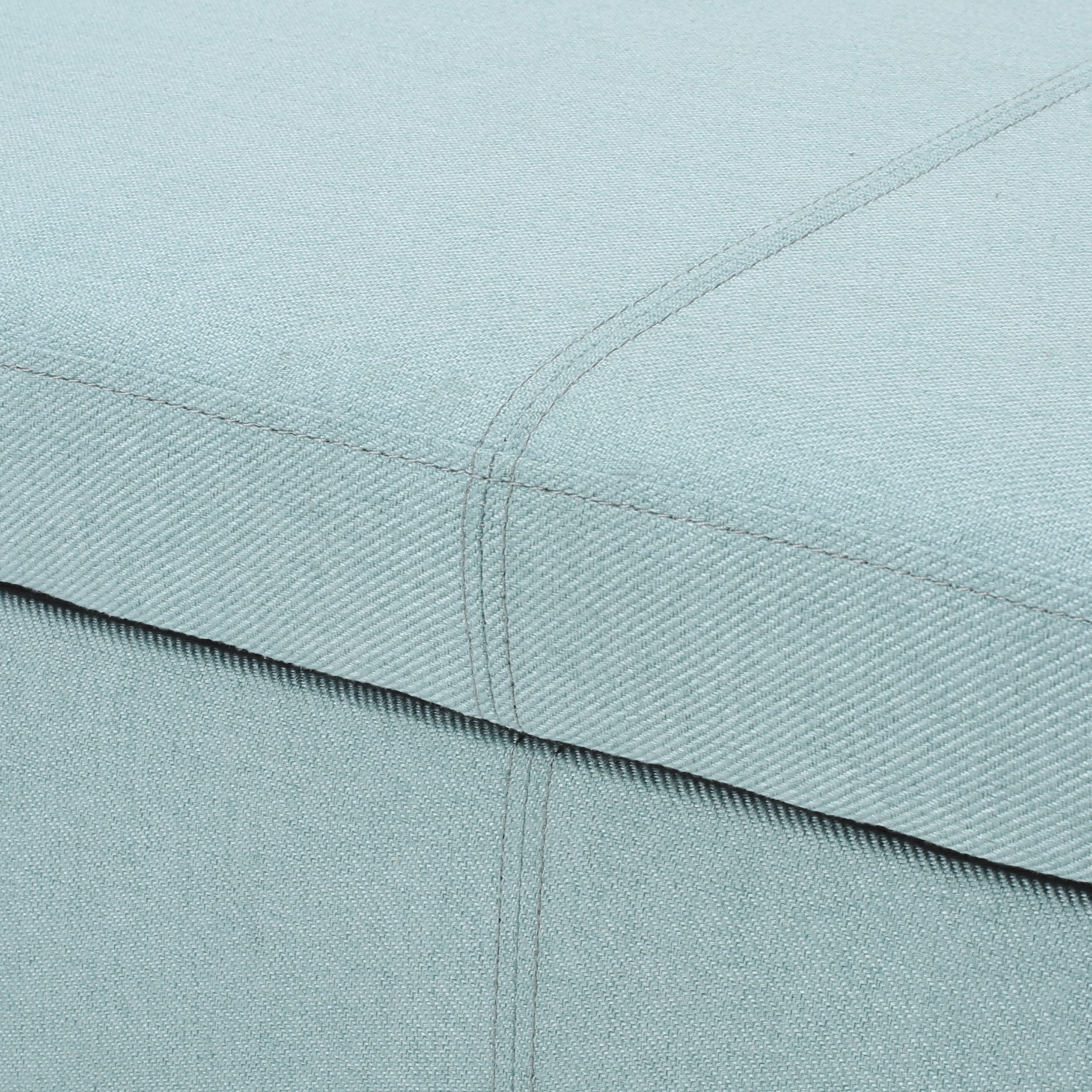 Includes: One (1) Storage Ottoman Bench Material: Fabric Fabric Composition: 100% Polyester Leg Material: Birch Color: Light Blue Leg Color: Dark Brown Hand-crafted details Assembly required Dimensions: 19.75 inches deep x 50.00 inches wide x 20.50 inches high Seat Dimensions: 19.75 inches deep x 37.00 inches wide x 14.00 inches high