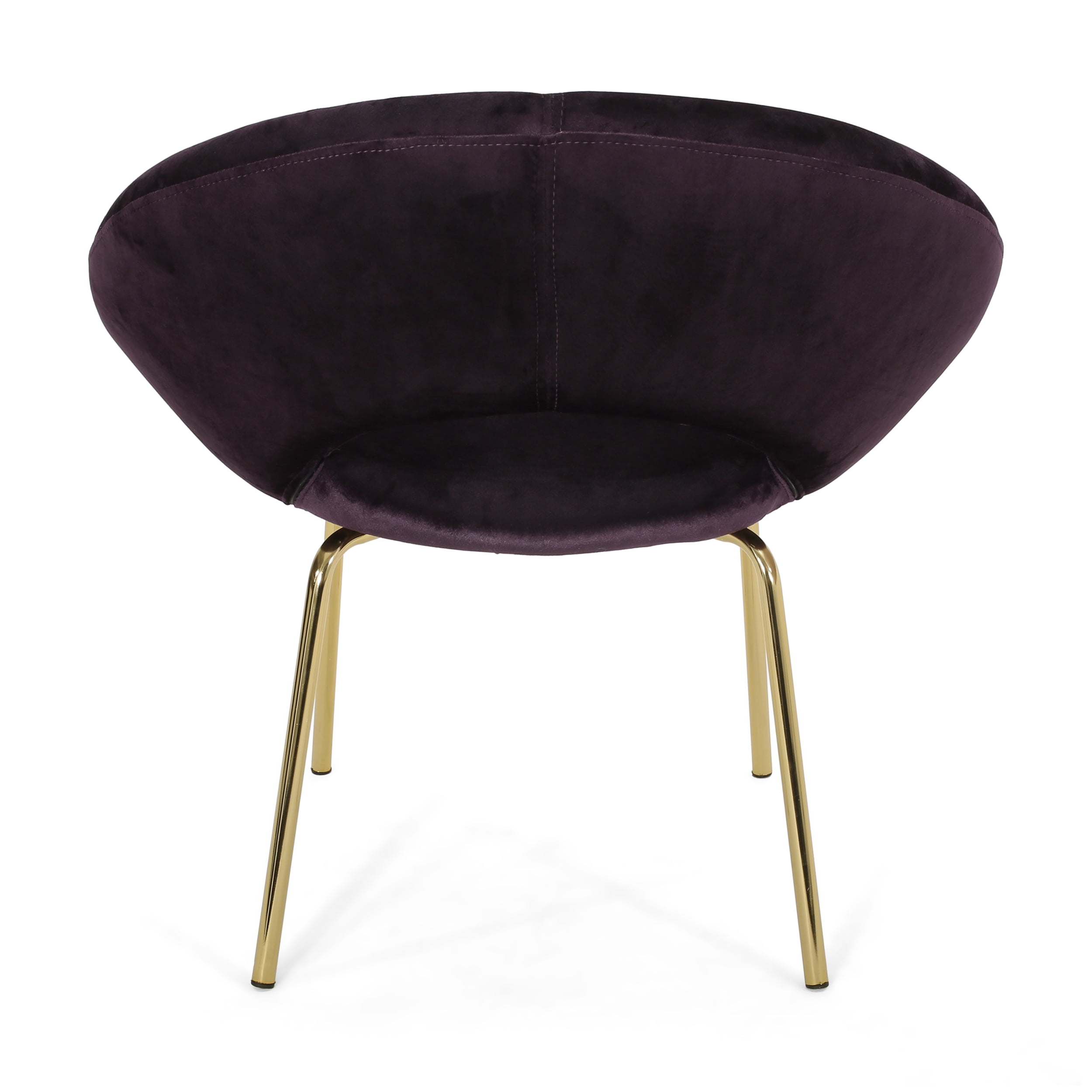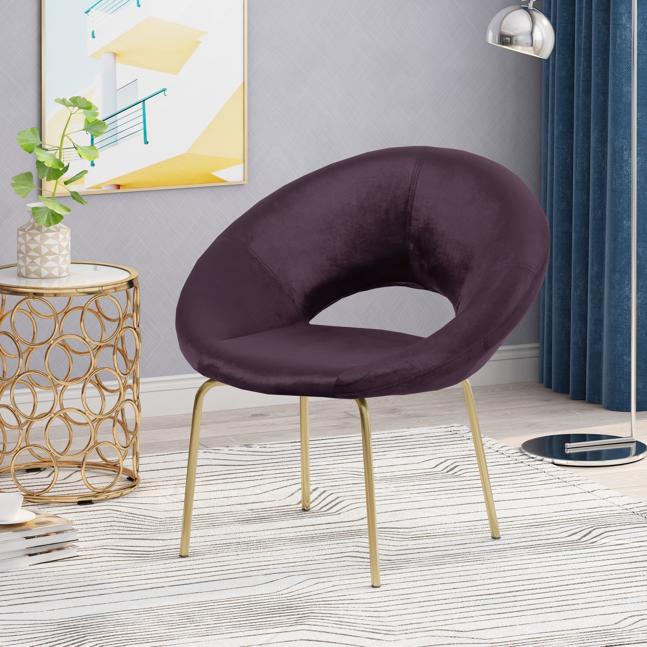 Includes: One (1) Accent Chair Material: Velvet Composition: 100% Polyester Leg Material: Iron Color: Blackberry Leg Finish: Gold