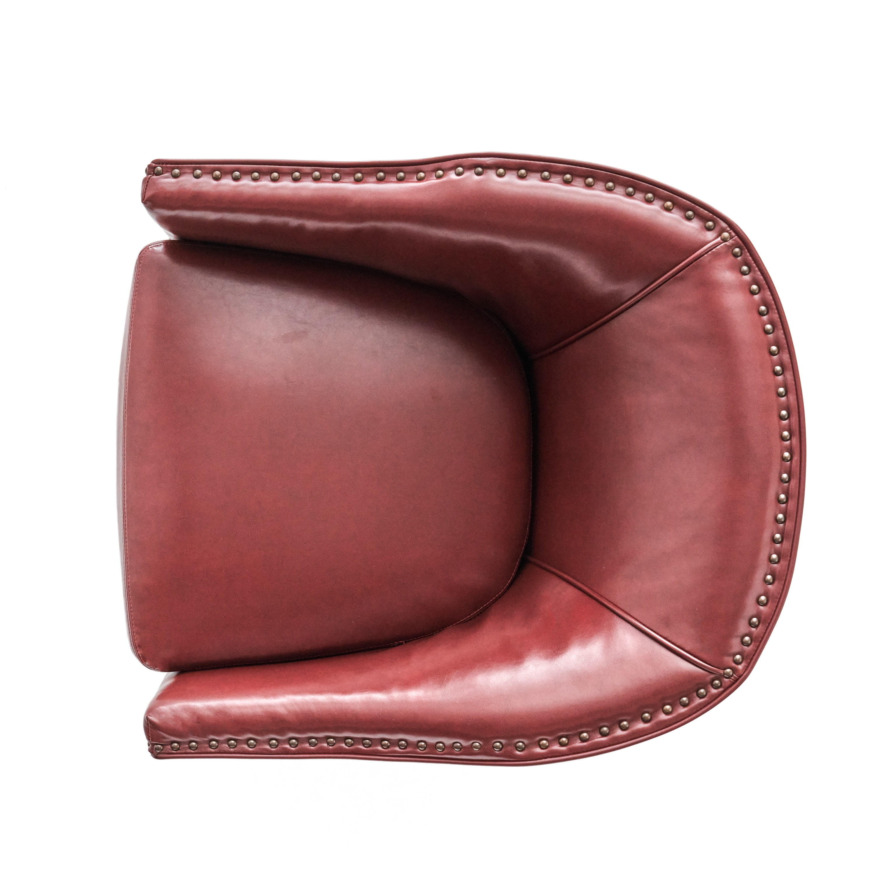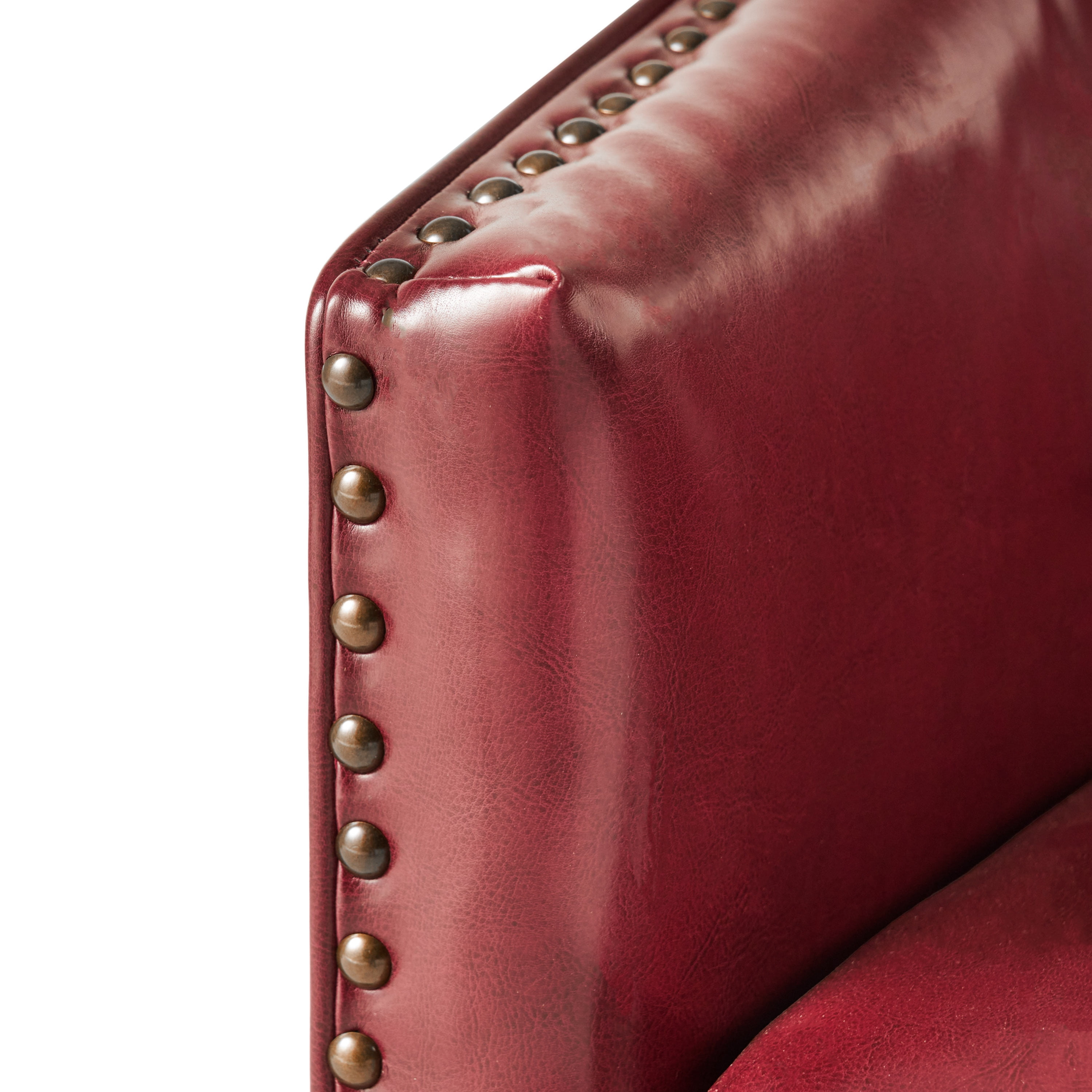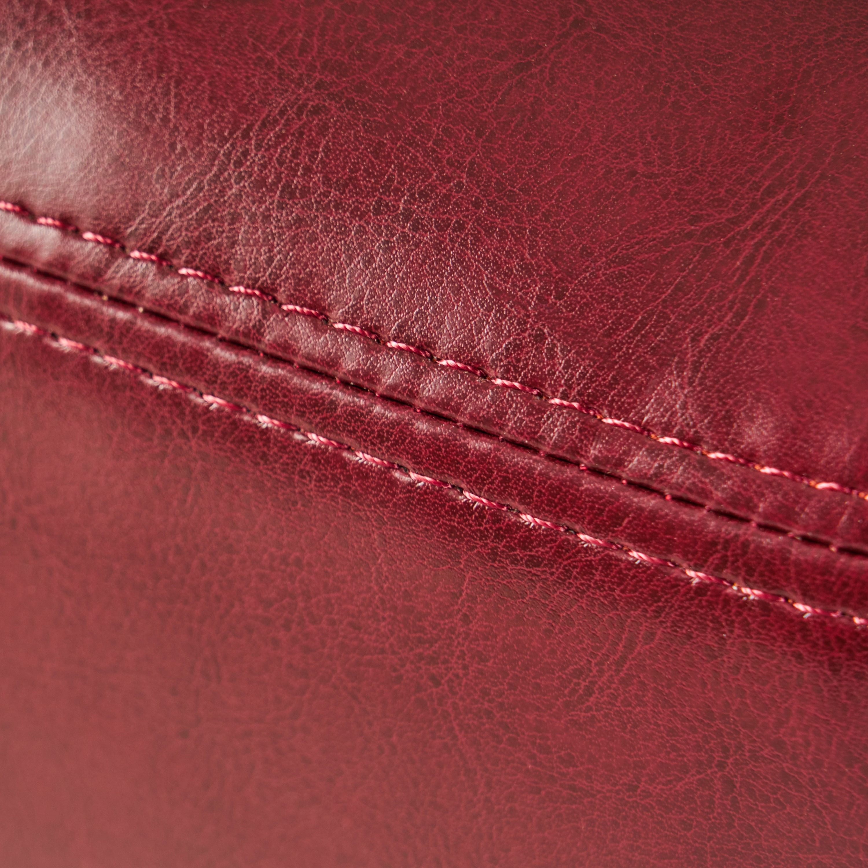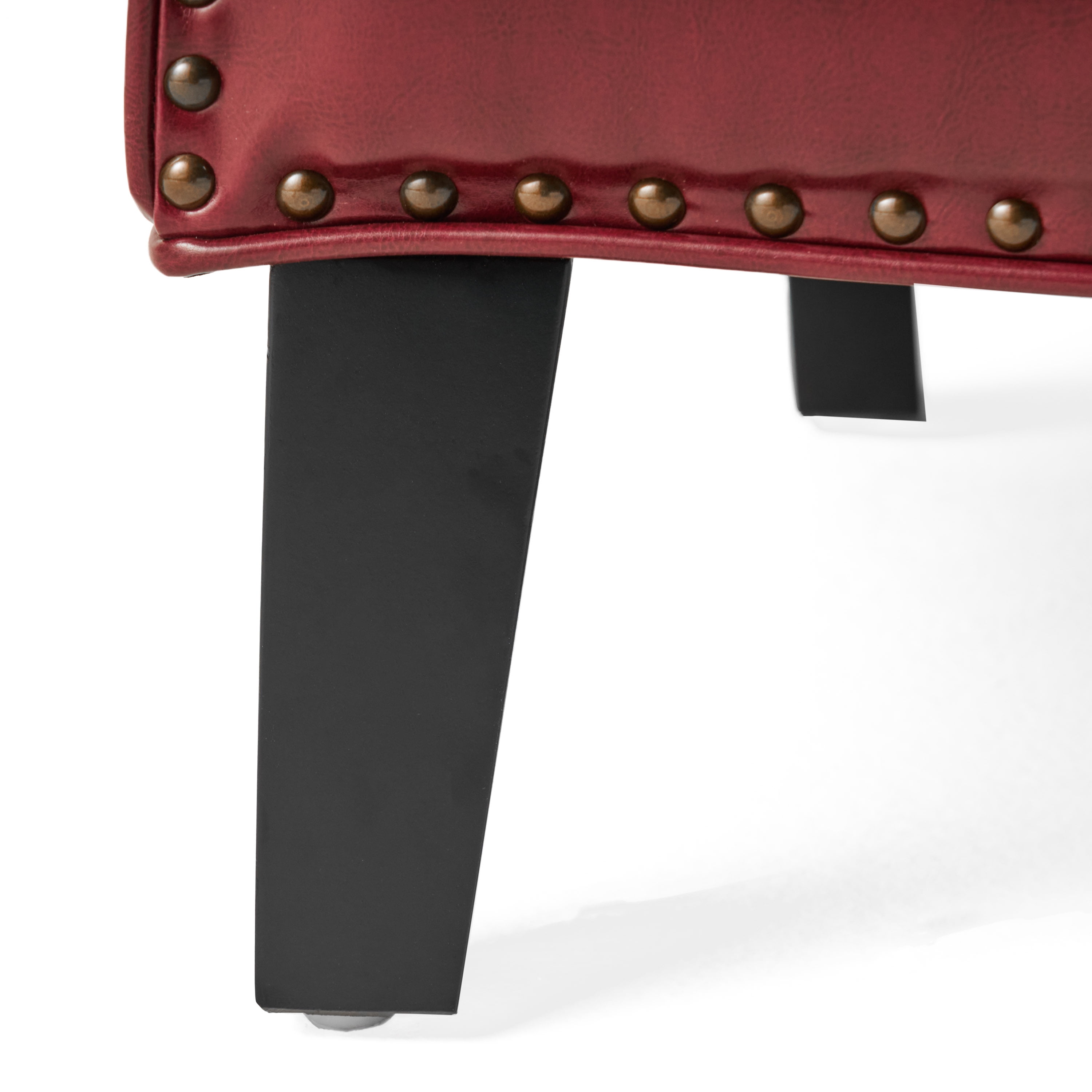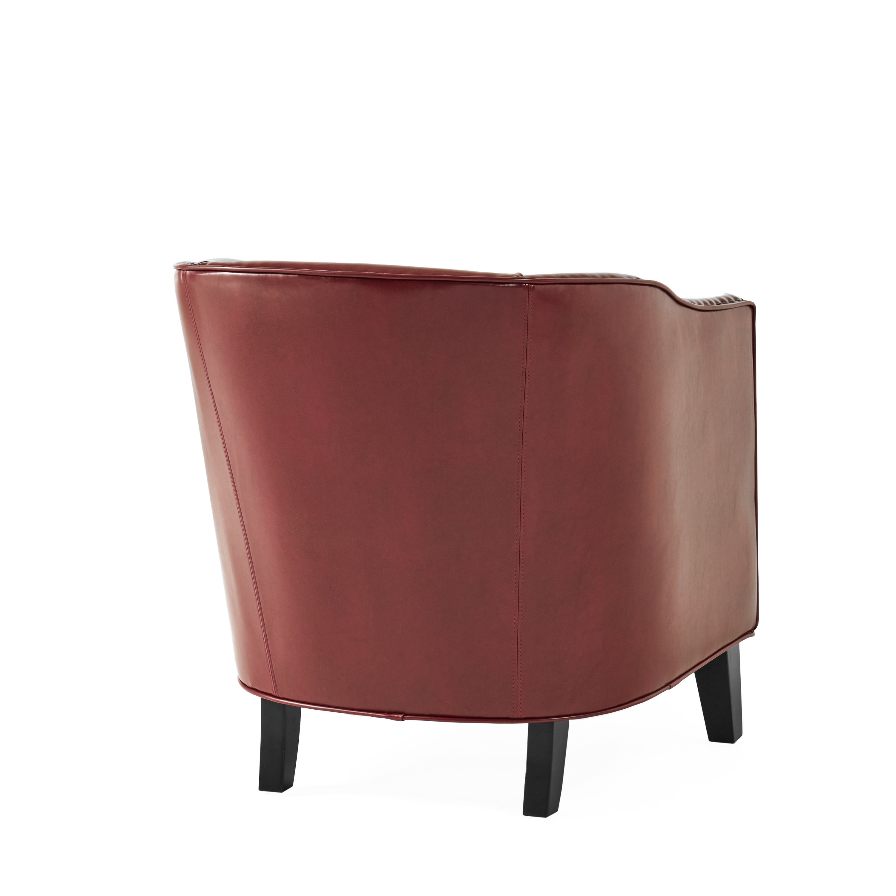 Noble House Houston Red Bonded Leather Club Chair: Includes: One (1) Club Chair Multiple Material Options Leg Material: Birch Wood Multiple Color Options Leg Finish: Dark Brown No Assembly Required Dimensions: 29.25 inches deep x 31.75 inches wide x 29.75 inches high Seat Dimensions: 22.05 inches deep x 22.24 inches wide x 20.28 inches high Arm Height: 25.00 inches