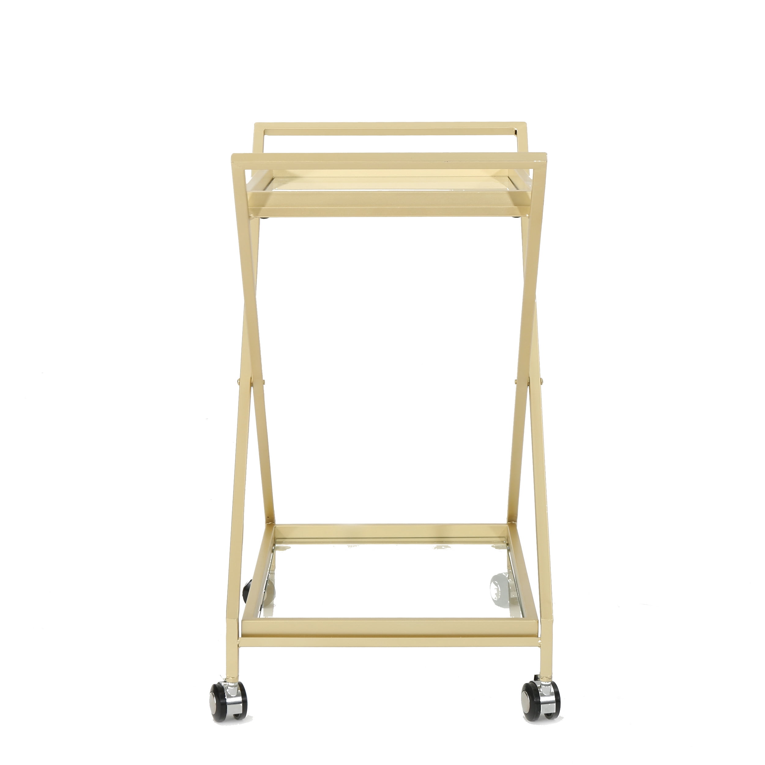 Includes: One (1) Bar Cart Material: Tempered Glass Frame Material: Iron Frame Finish: Gold Assembly Required Hand Crafted Details Dimensions: 17.00 inches deep x 32.25 inches wide x 31.00 inches high