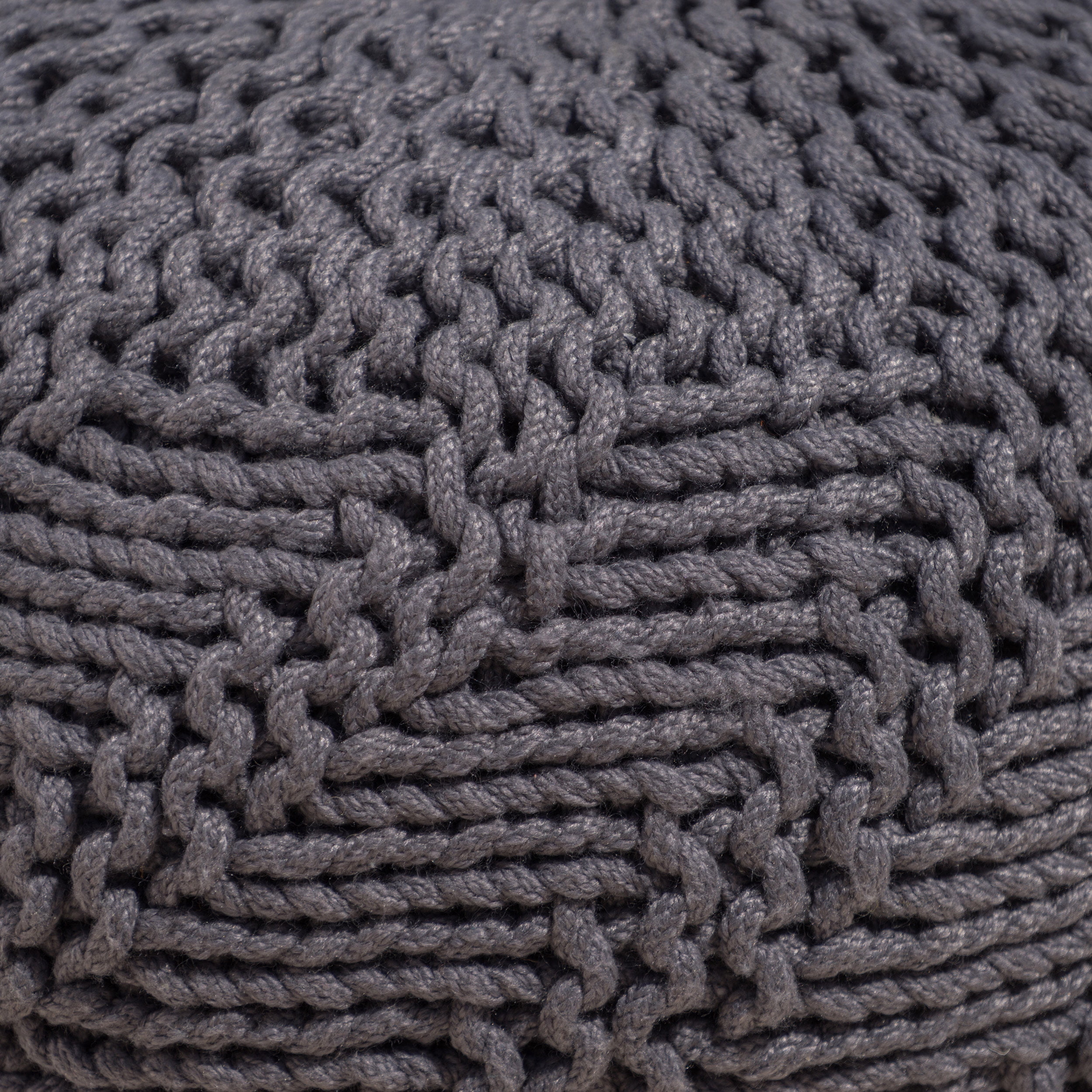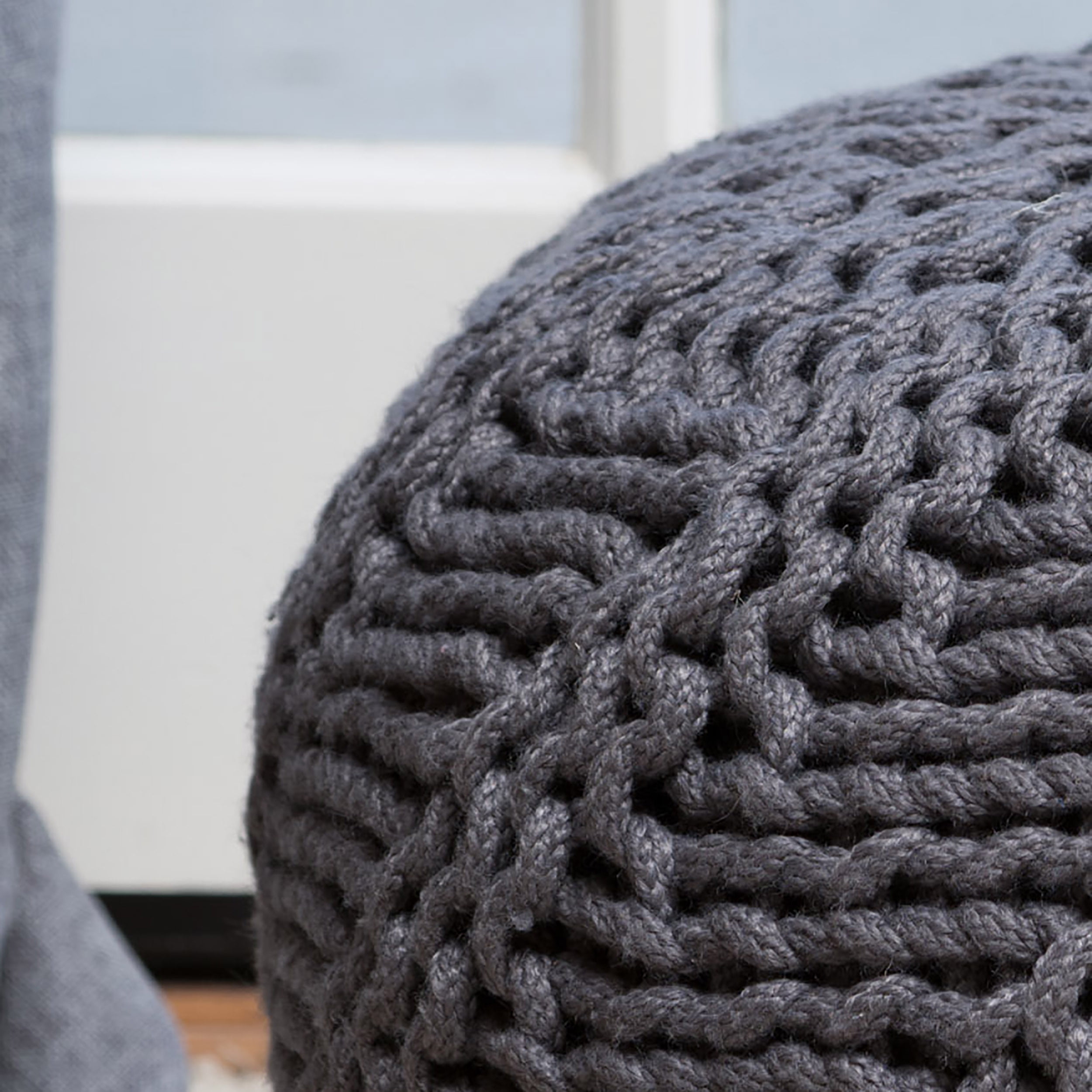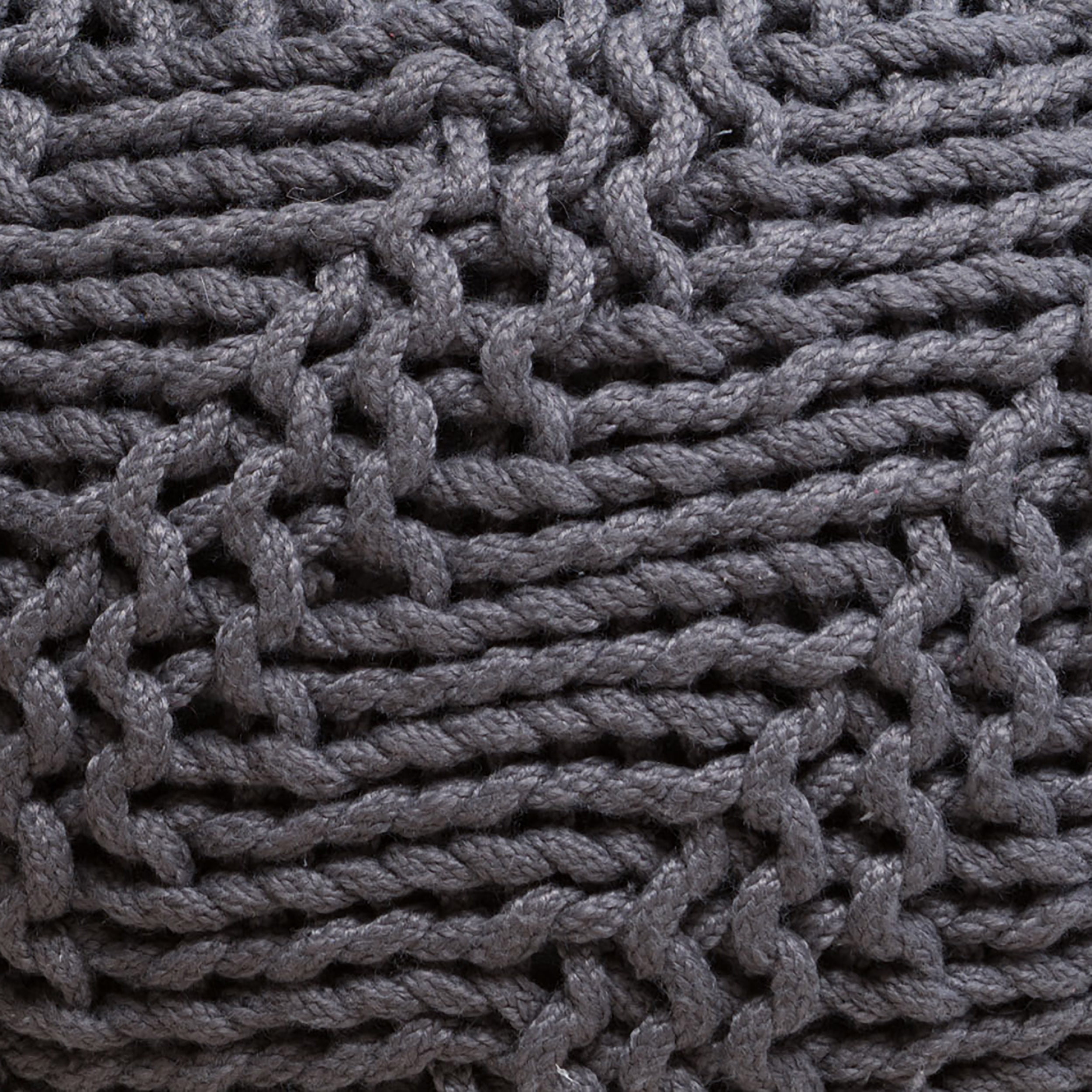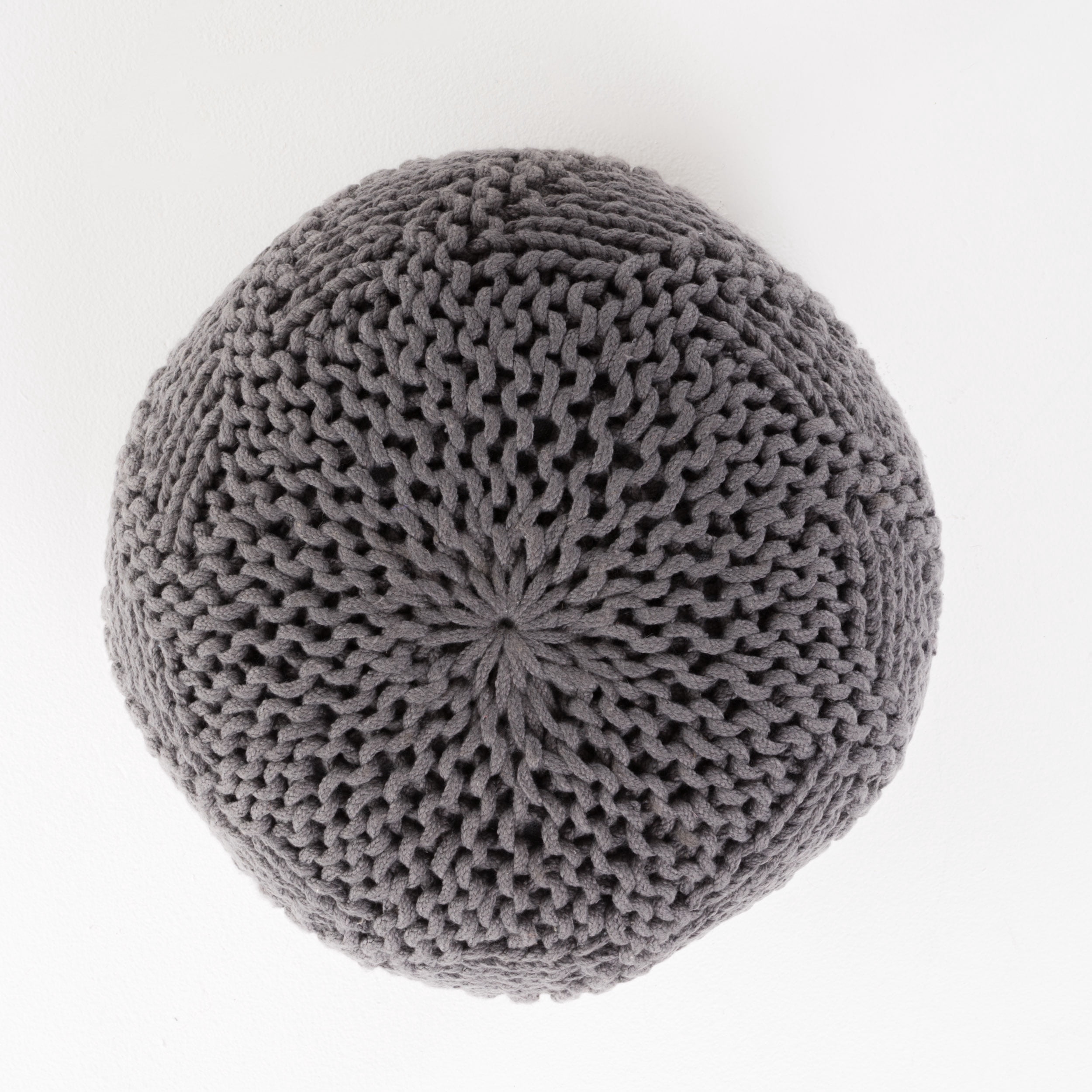 Includes: One (1) Pouf Material: PET Yarn Filling Material: Polystyrene Beads Color: Dark Gray Water-Resistant Hand-Crafted Details No Assembly Required Dimensions: 20.00 inches deep x 20.00 inches wide x 14.00 inches high