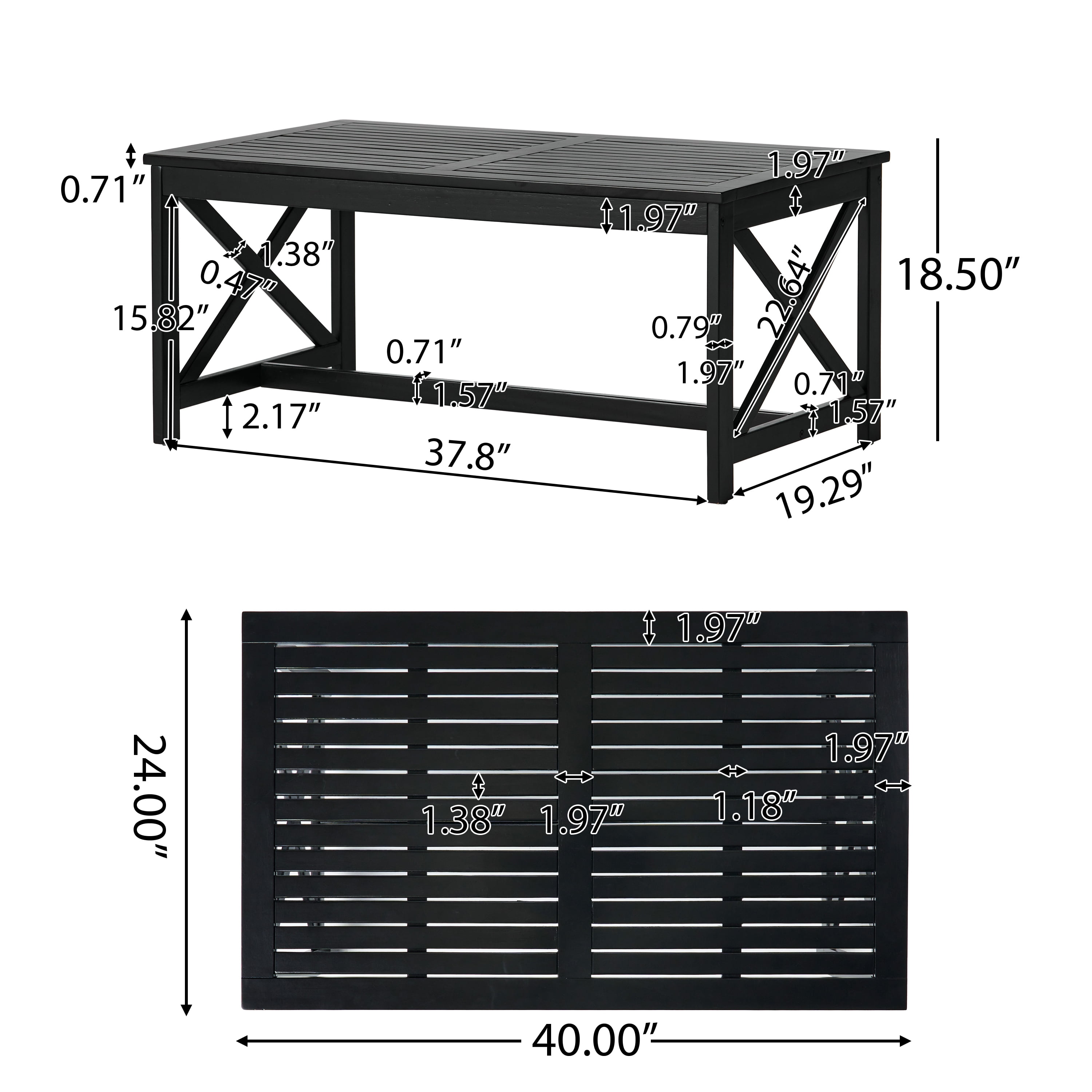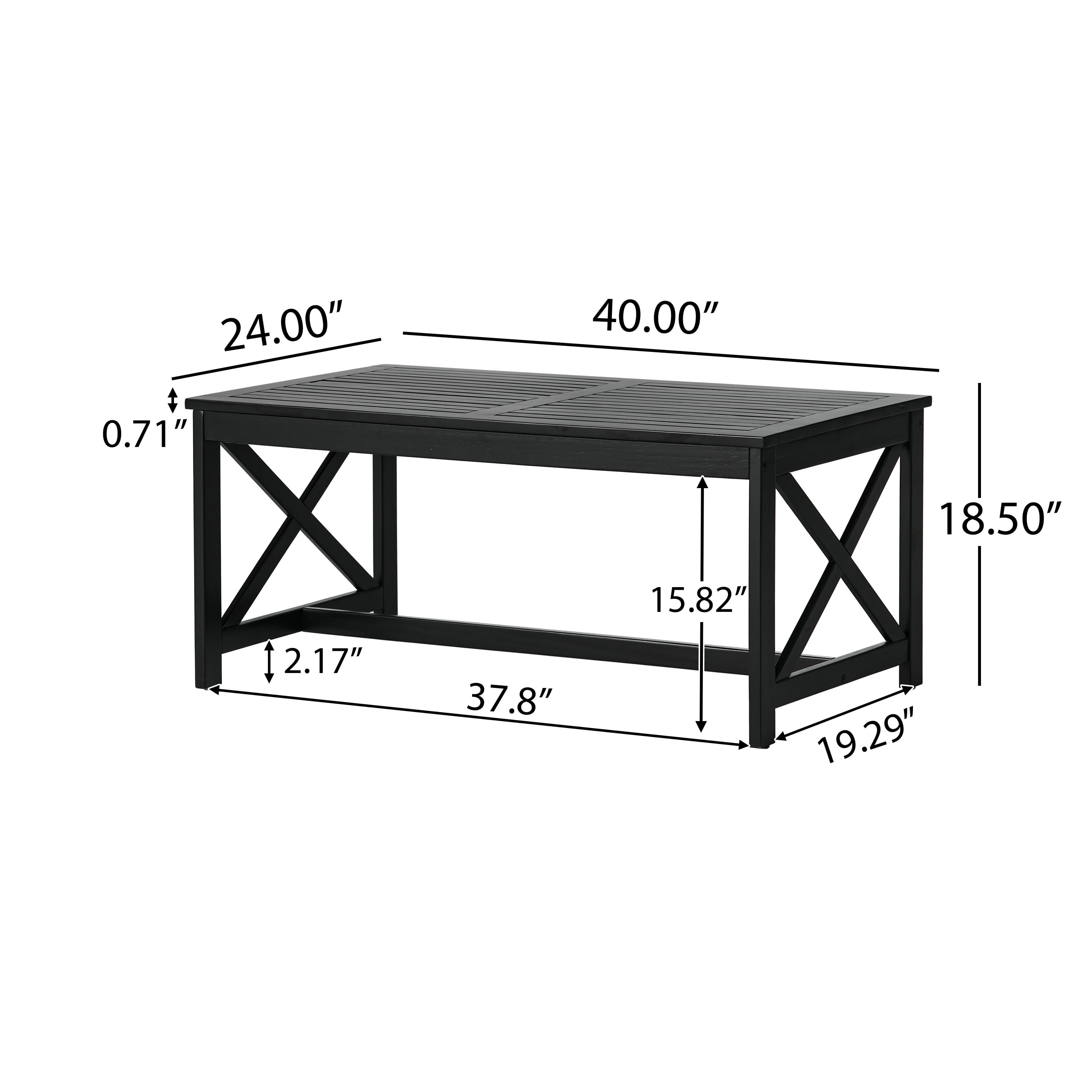 Noble House Ivan Farmhouse Outdoor Acacia Wood Coffee Table in Black