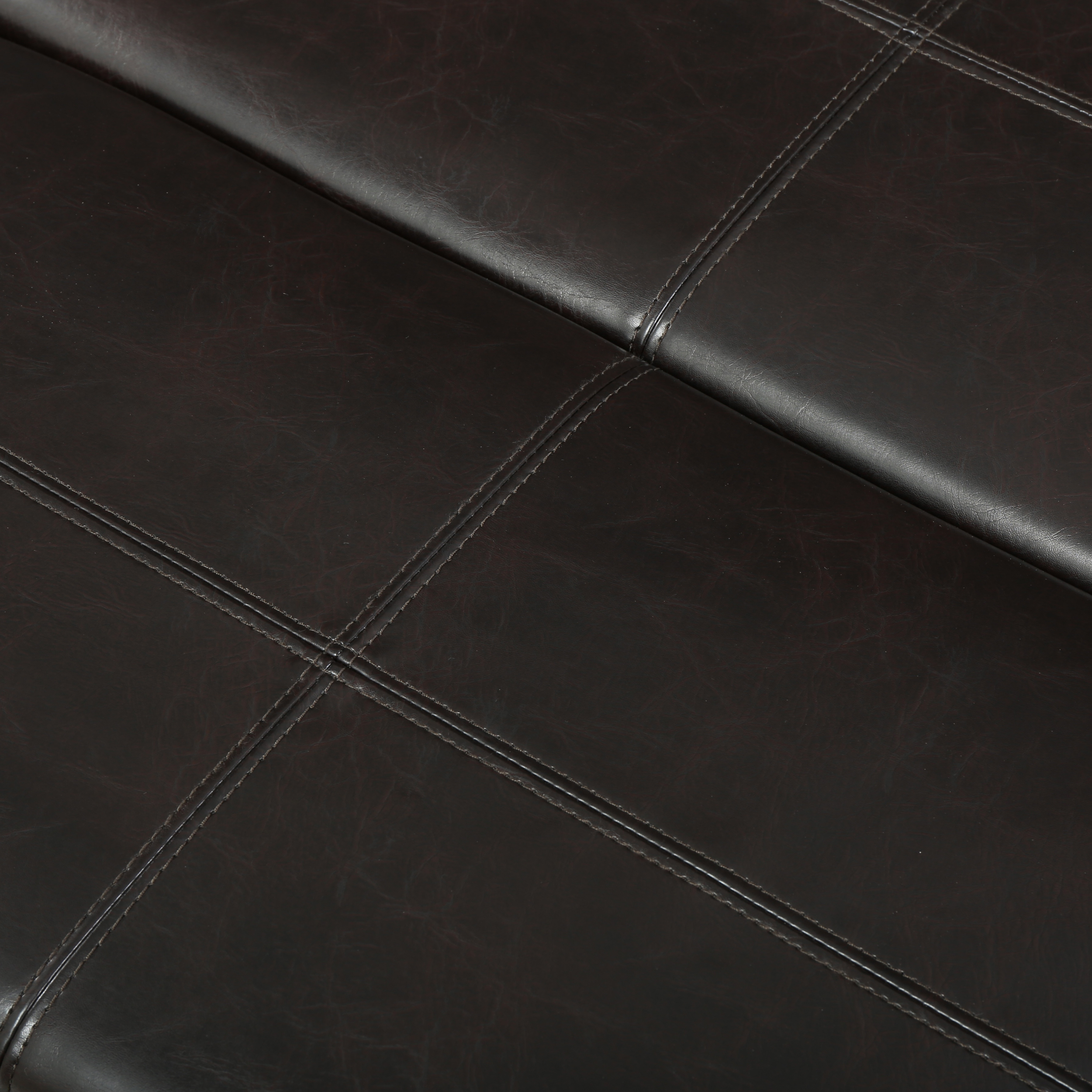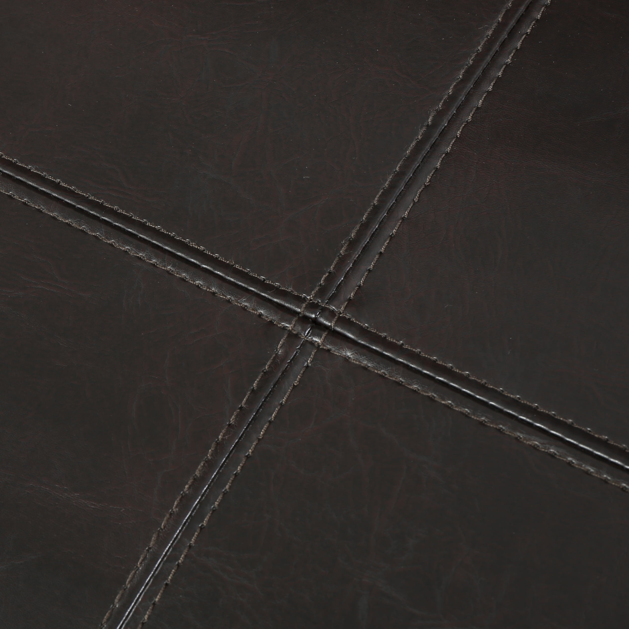 Includes: One (1) Storage Ottoman Material: Faux Leather Leg Material: Birch Wood Color: Brown Leg Finish: Dark Brown Hand-Crafted Details Dimensions: 29.00 inches deep x 29.00 inches wide x 15.50 inches high