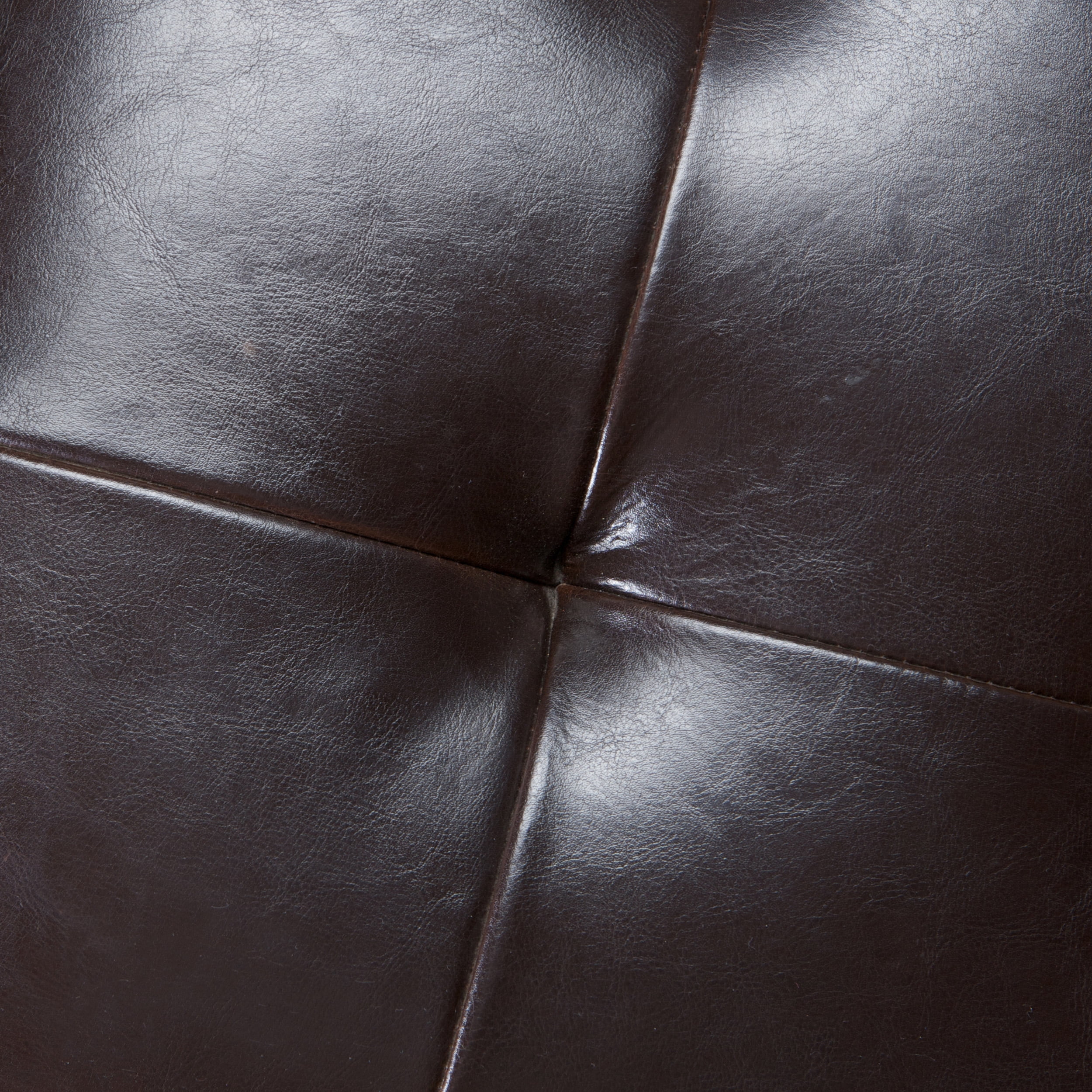 Includes: One (1) Ottoman Material: Bonded Leather Leg Material: Birch Color: Brown Leg Finish: Dark Brown Assembly Required Dimensions: 20.00 inches deep x 50.25 inches wide x 16.75 inches high