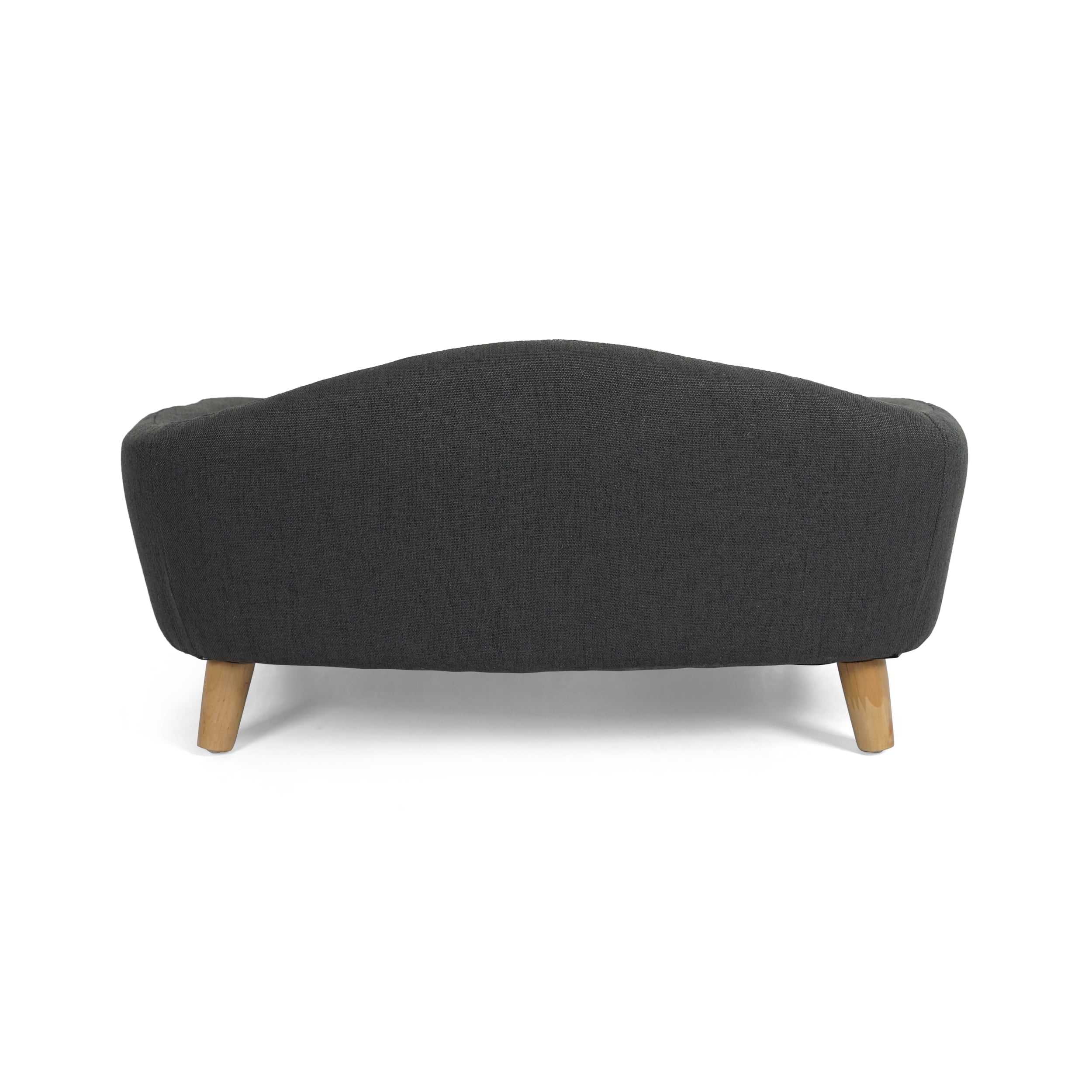 Noble House Jeffery Mid Century Small Plush Pet Bed, Dark Gray and Natural Includes: One (1) Small Dog Bed Material: Fabric Fabric Composition: 100% Polyester Leg Material: Birch Wood Color: Dark Gray Leg Finish: Natural Assembly Required Hand Crafted Details Dimensions: 21.75 inches deep x 30.25 inches wide x 14.00 inches high Seat Dimensions: 18.25 inches deep x 24.00 inches wide x 8.25 inches high