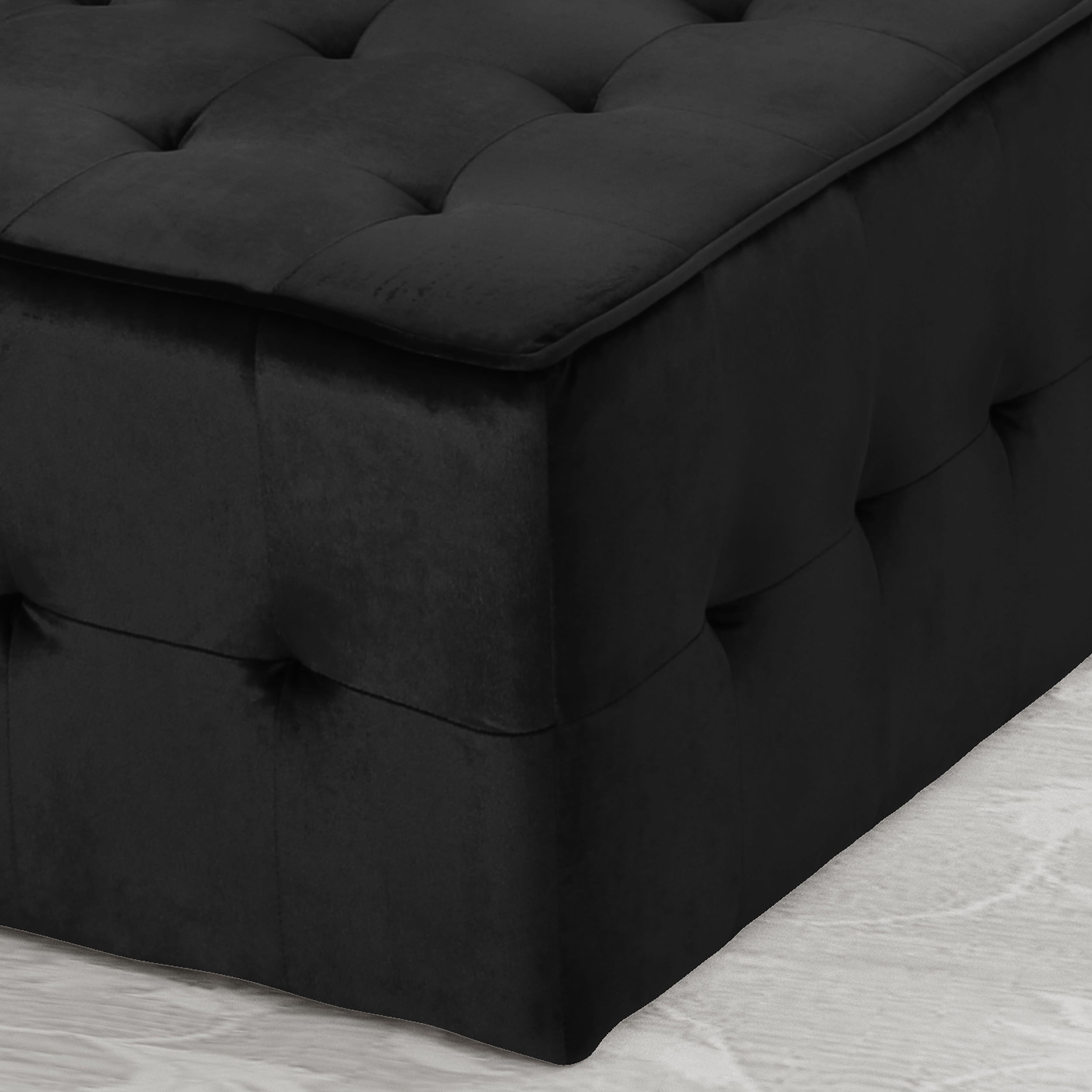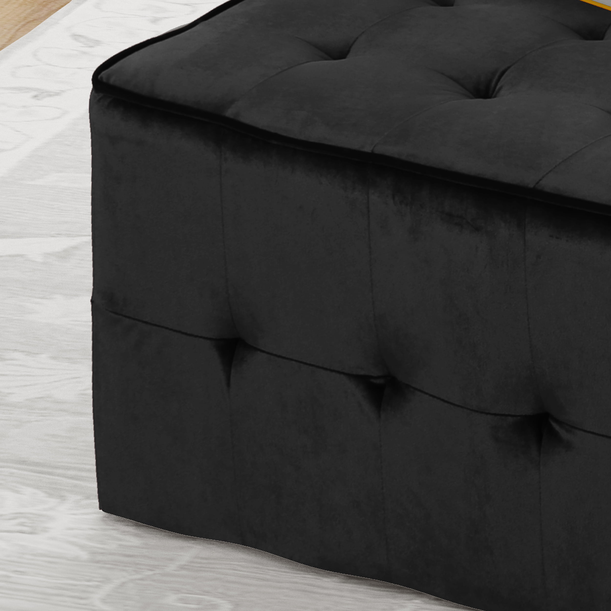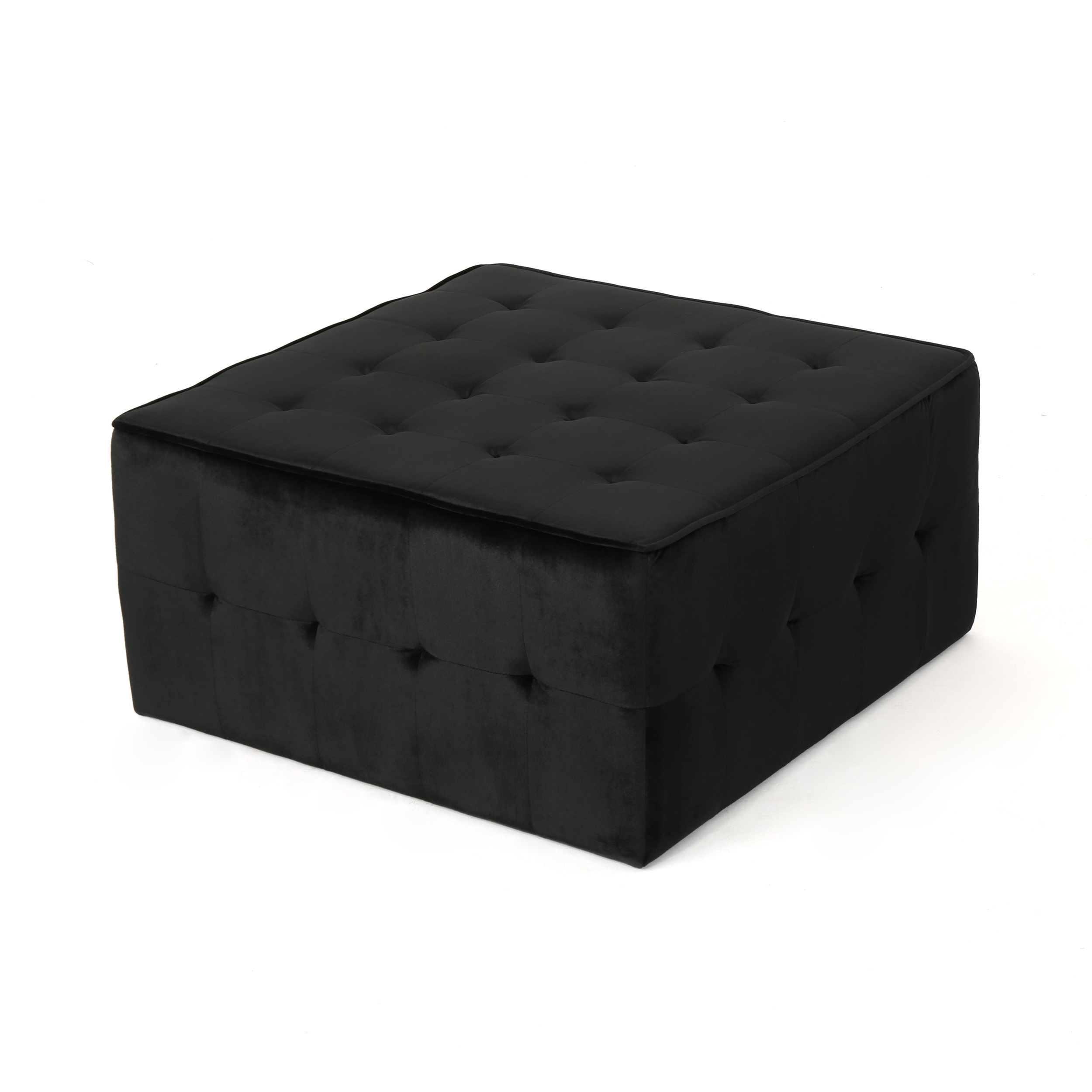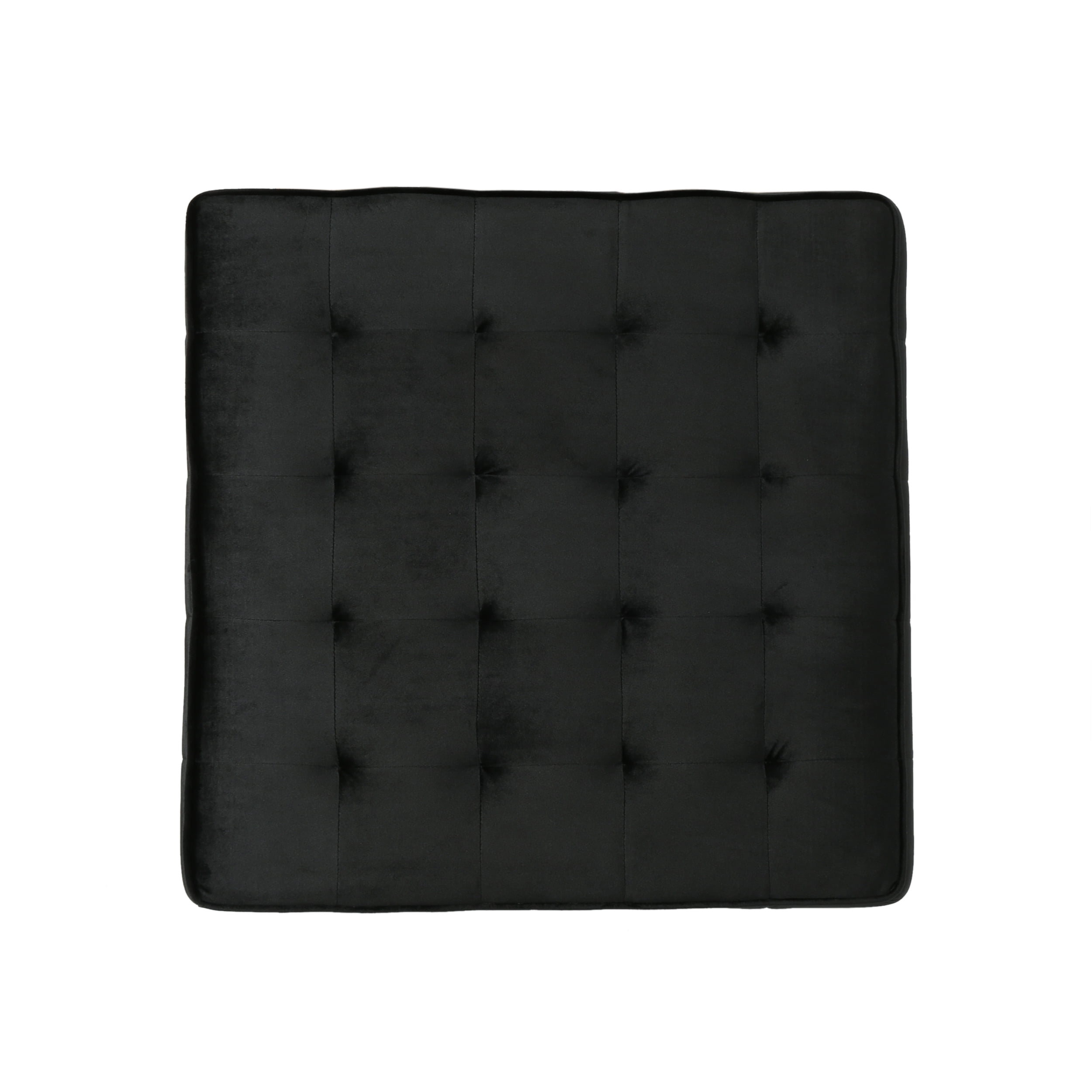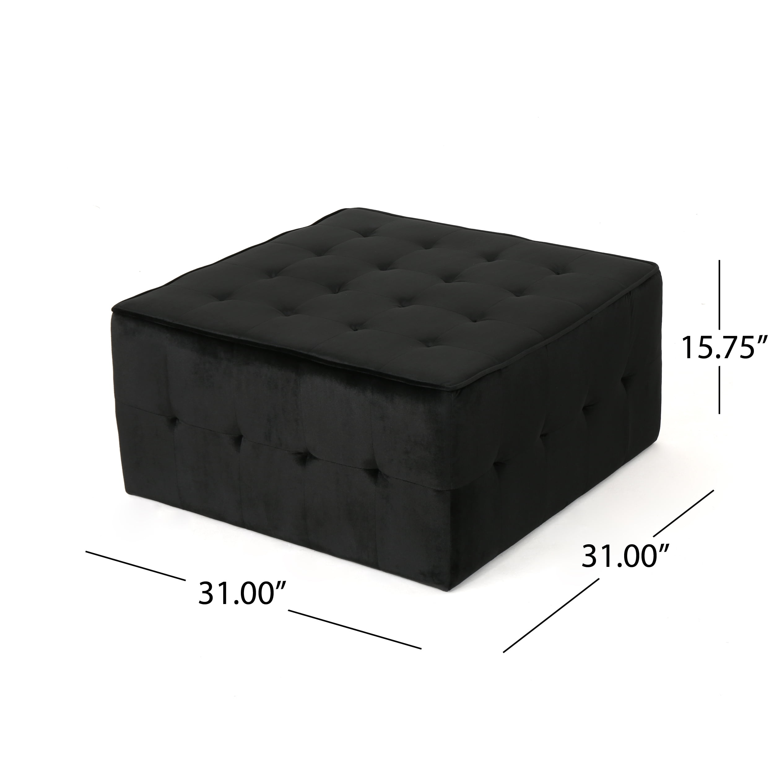 Includes: One (1) Ottoman Material: Velvet Composition: 100% Polyester Color: Black No Assembly Required Hand Crafted Details Dimensions: 31.00 inches deep x 31.00 inches wide x 15.75 inches high
