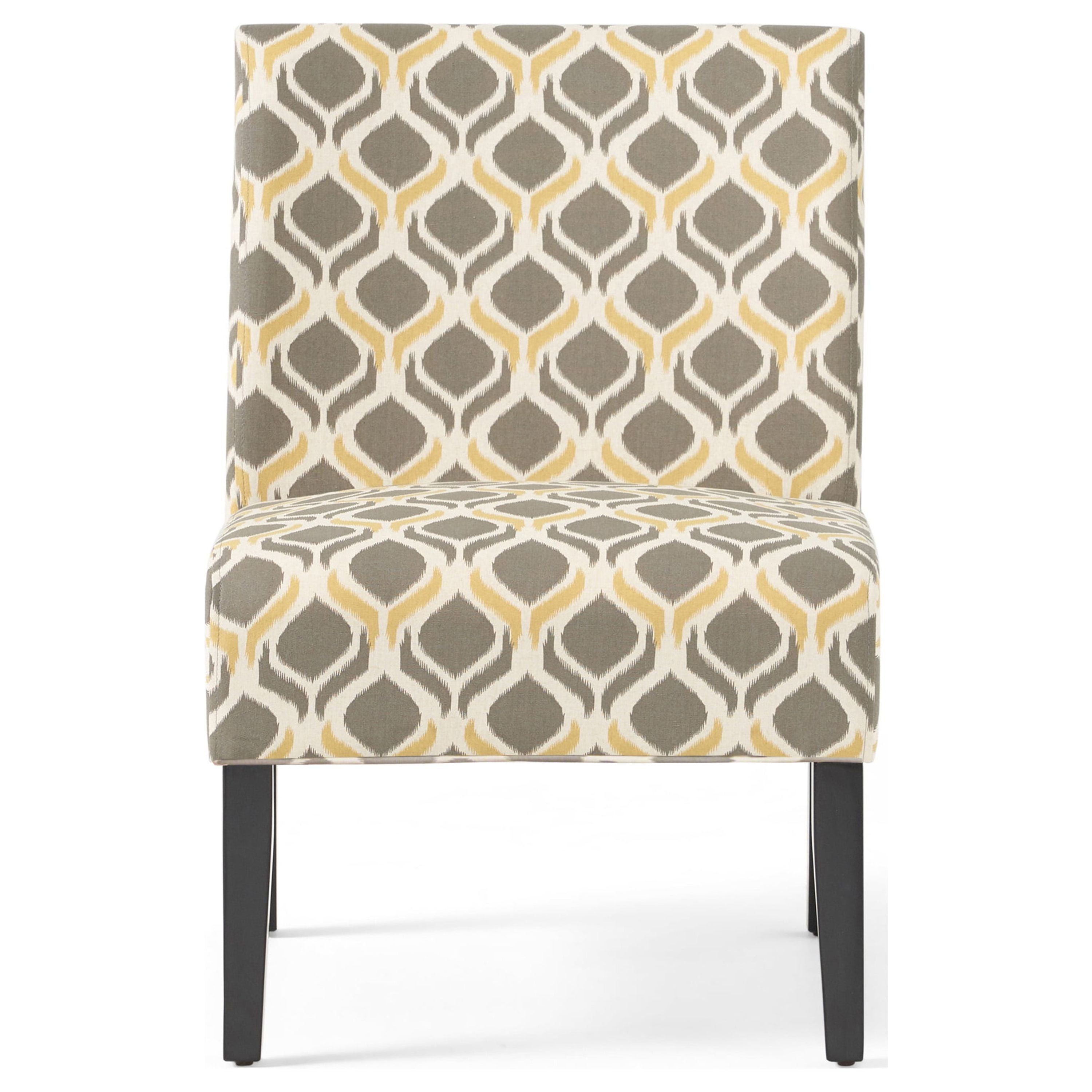 Noble House Kerri Contemporary Fabric Accent Chair, Yellow Gray, Matte Black Includes: One (1) Accent Chair Material: Fabric Fabric Composition: 100% Polyester Leg Material: Rubberwood Multiple Color and Design Options Leg Finish: Matte Black Assembly Required Hand-Crafted Details Dimensions: 29.50 inches deep x 22.50 inches wide x 32.00 inches high Seat Dimensions: 22.00 inches deep x 22.50 inches wide x 18.50 inches high