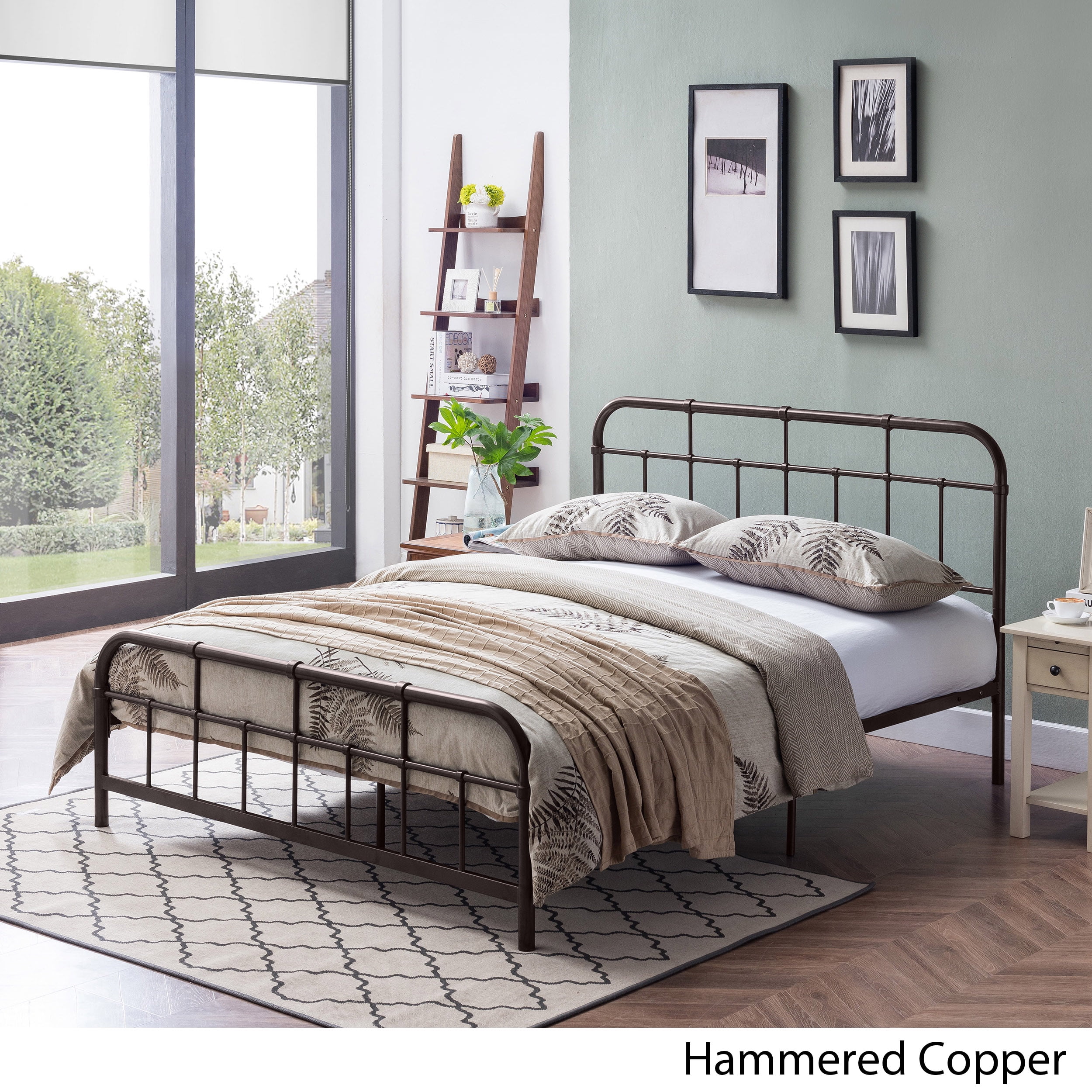 Noble House Khari Industrial Queen-Size Iron Minimal Bed Frame, Hammered Copper