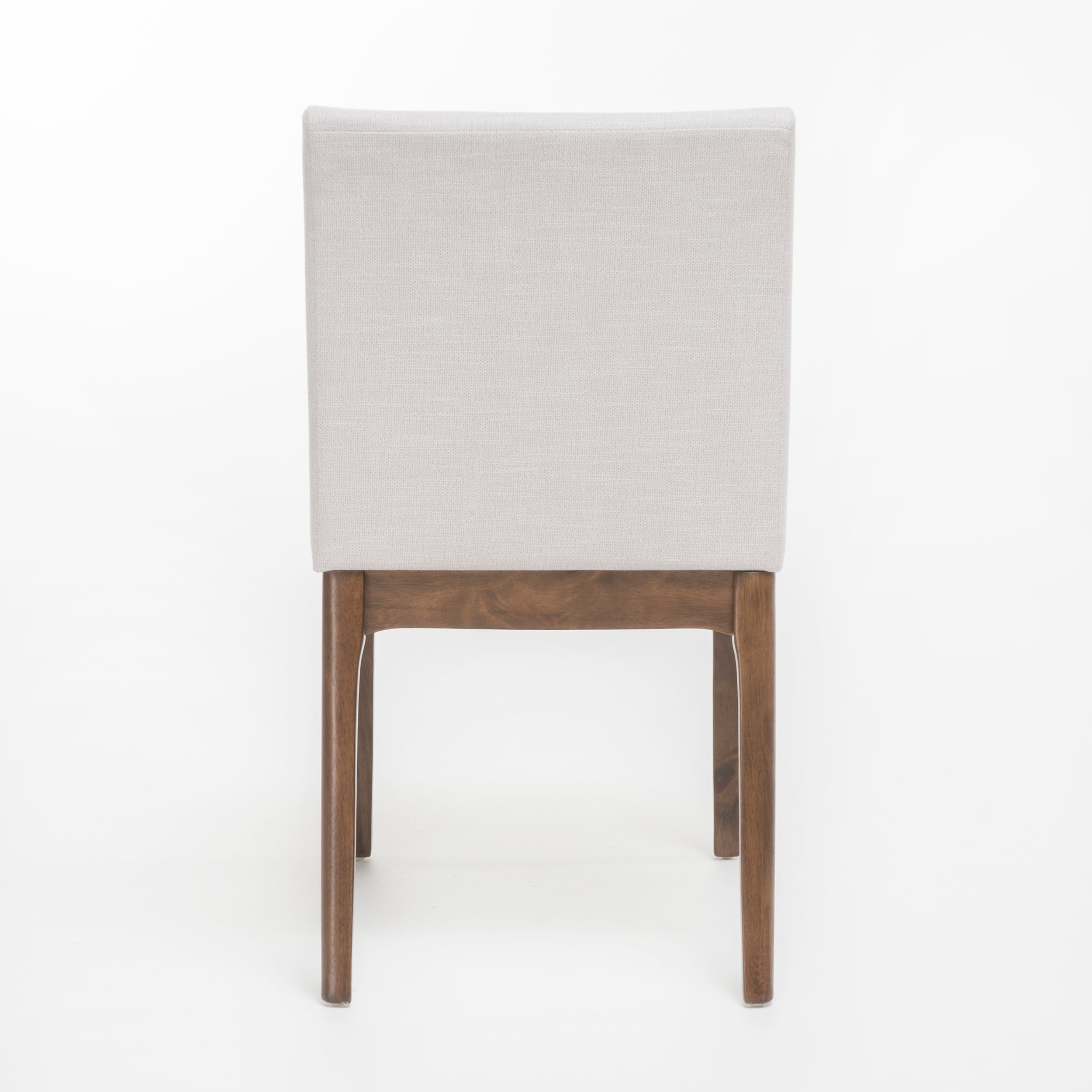Noble House Kimberly Mid Century Fabric Dining Chair, Set of 2, Light Beige, Walnut Includes: Two (2) Dining Chairs Multiple Material Options Leg Material: Rubberwood Multiple Color Options Leg Finish: Walnut Assembly Required Dimensions: 23.50 inches deep x 17.50 inches wide x 32.75 inches high Seat Dimensions: 17.00 inches deep x 17.50 inches wide x 19.00 inches high Weight Capacity: 300 lbs