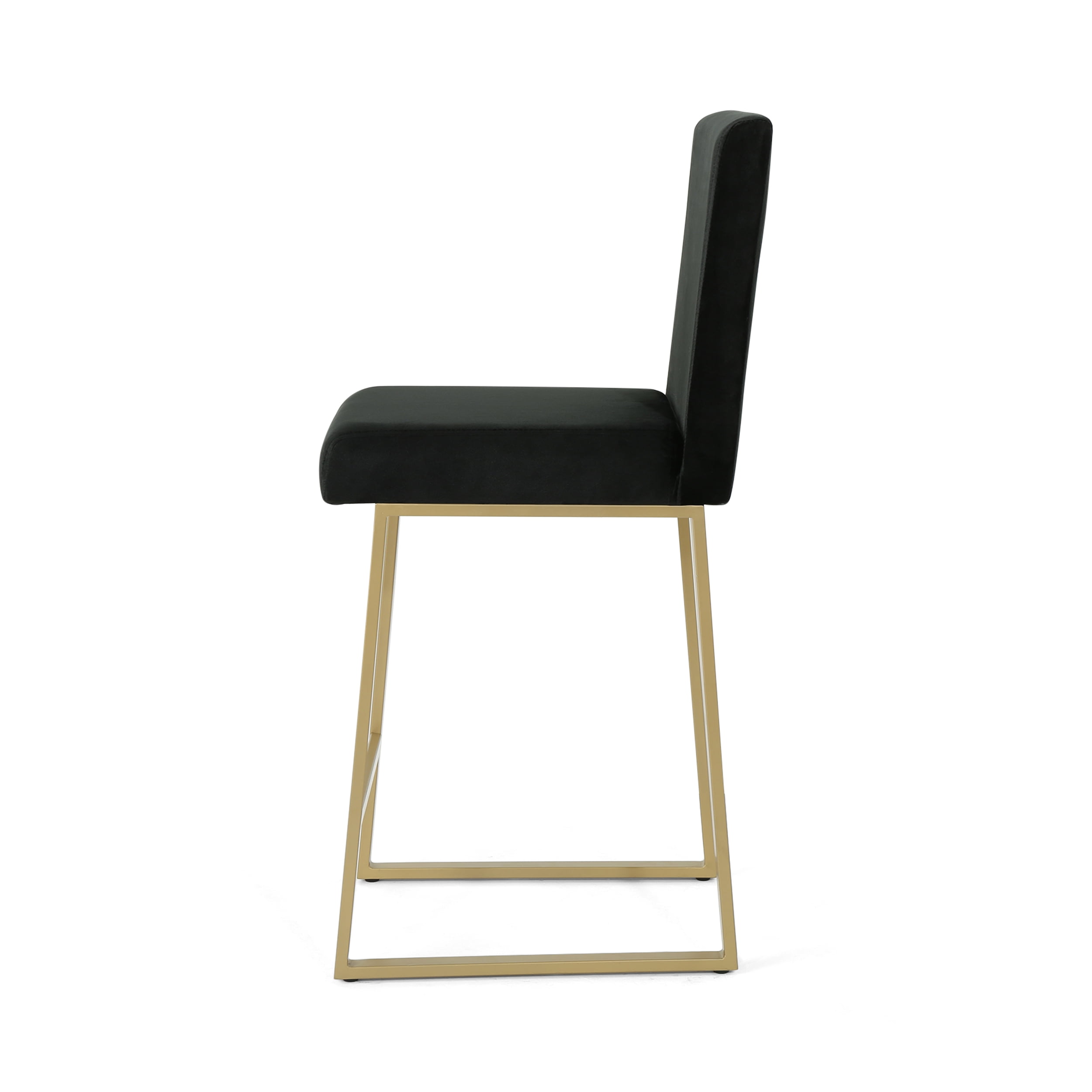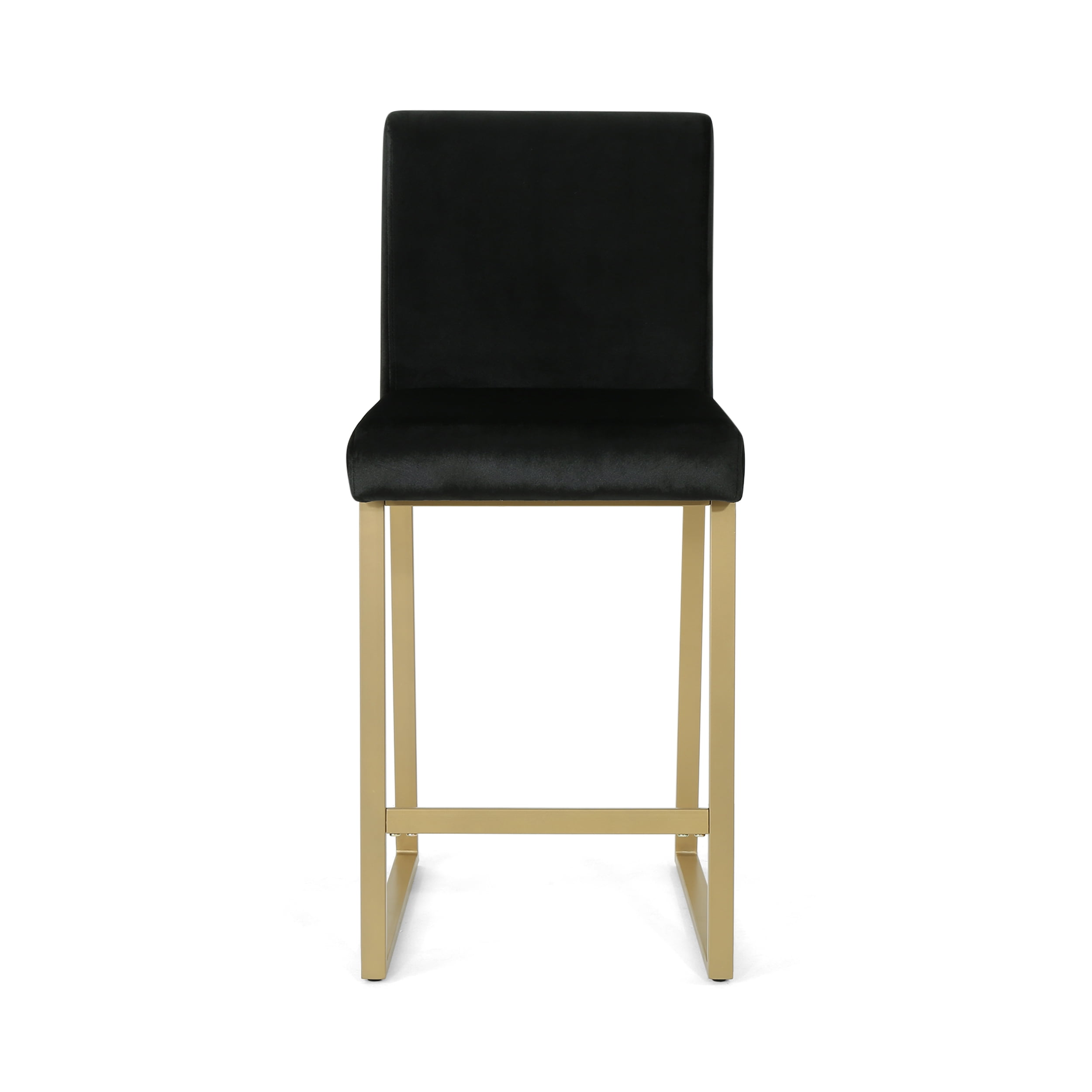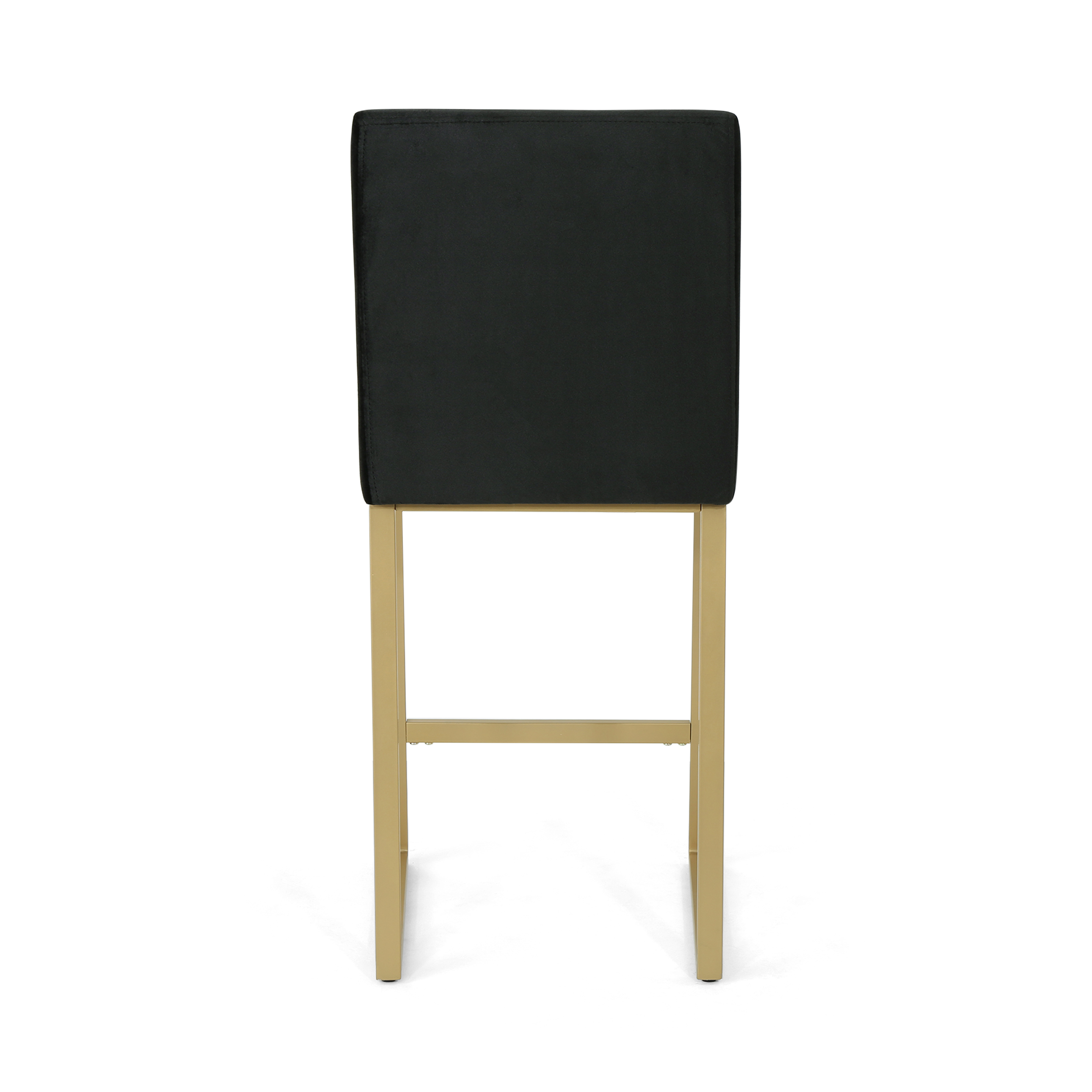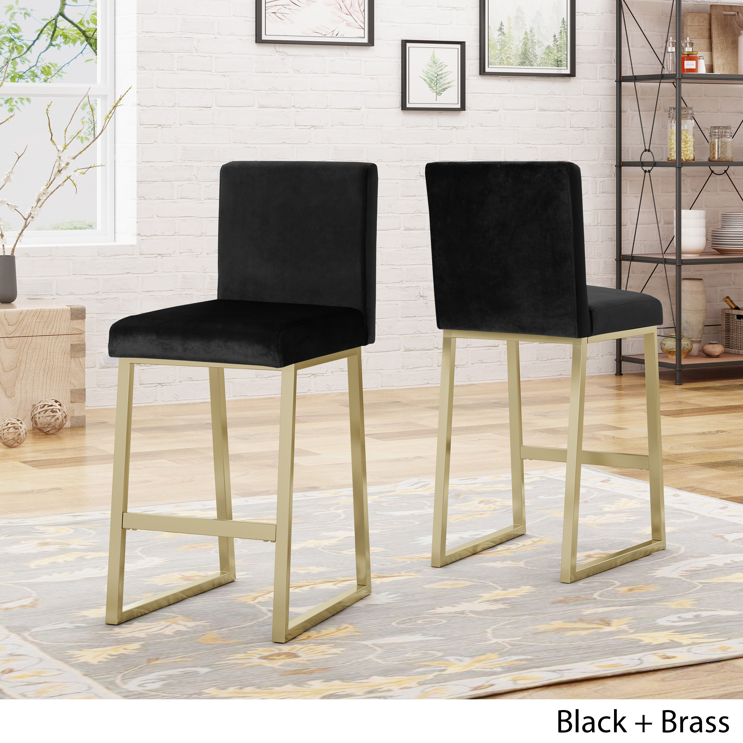 Includes: Two (2) Barstools Upholstery Material: Velvet Fabric Composition: 100% Polyester Frame Material: Iron Fabric Color: Black Frame Finish: Brass Hand Crafted Details Some Assembly Required Product Dimensions: 21.50 inches deep x 17.75 inches wide x 40.00 inches high Seat Dimensions: 17.00 inches deep x 17.75 inches wide x 26.75 inches high Recommended Location: Indoor