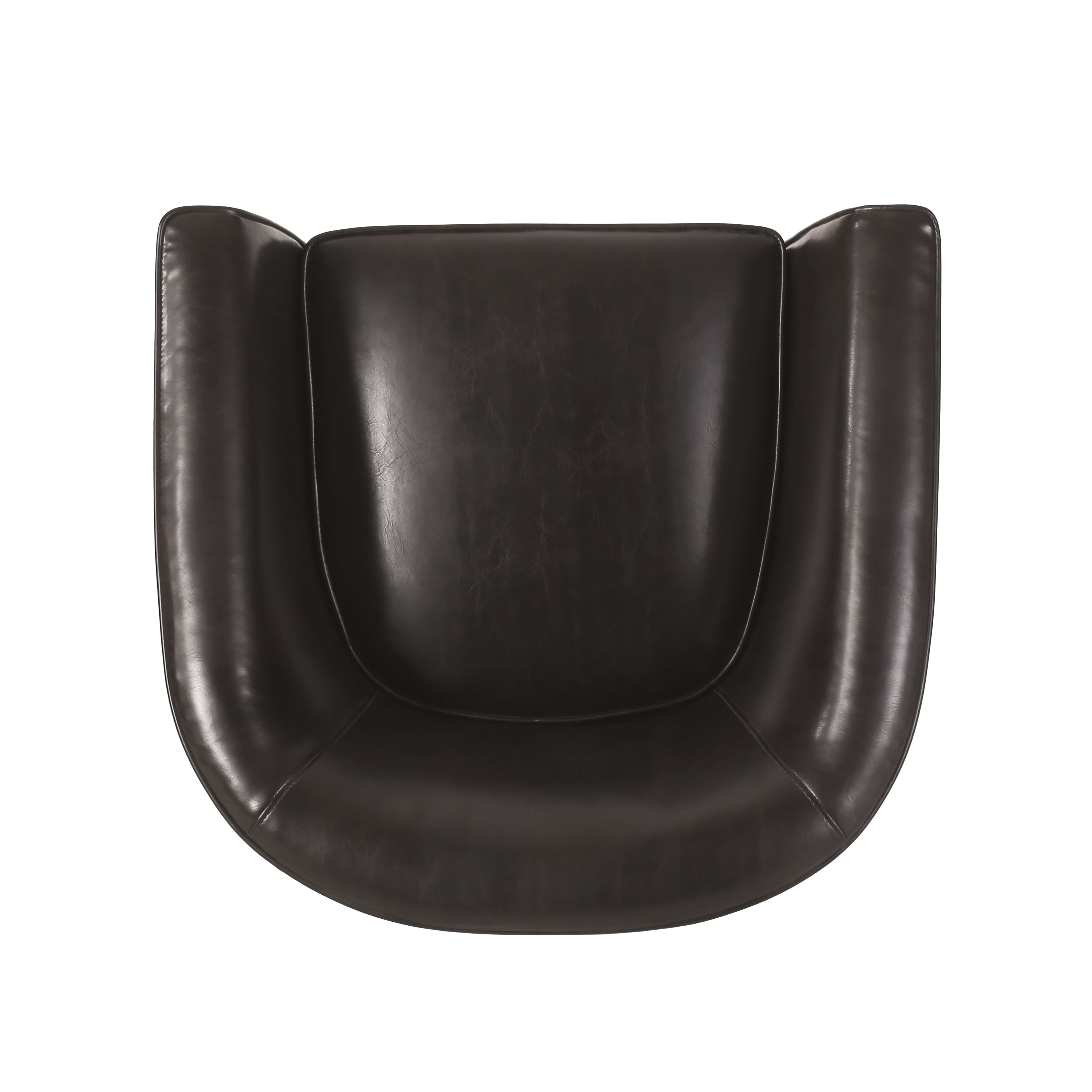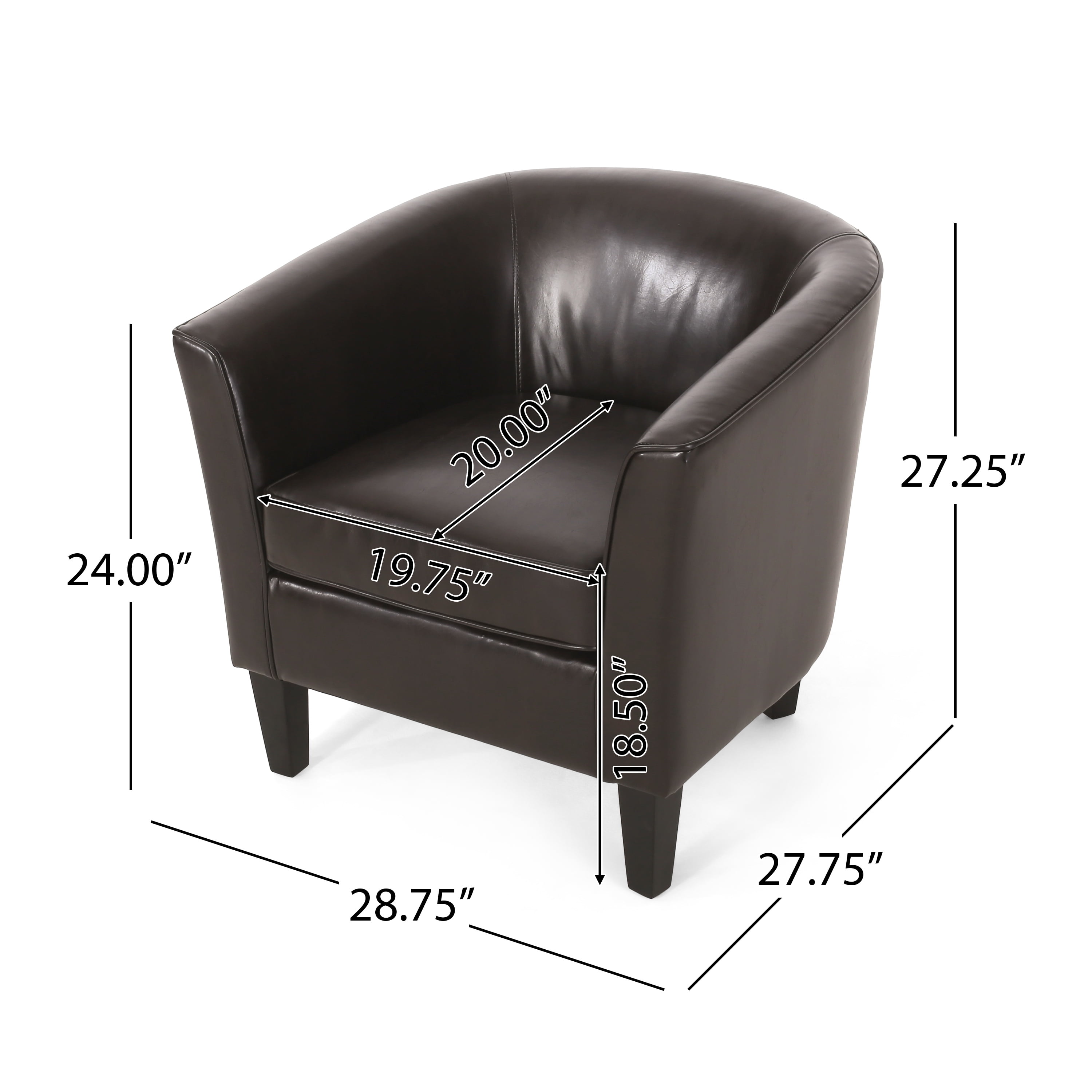 Noble House Lansden Brown Bonded Leather Tub Chair: Includes: One (1) Club Chair Material: Bonded Leather Leg Material: Birch Wood Color: Brown Leg Finish: Dark Brown Assembly Required Dimensions: 27.75 inches deep x 28.75 inches wide x 27.25 inches high Seat Dimensions: 20.00 inches deep x 19.75 inches wide x 18.50 inches high Arm Height: 24.00 inches Weight Capacity: 300 lbs