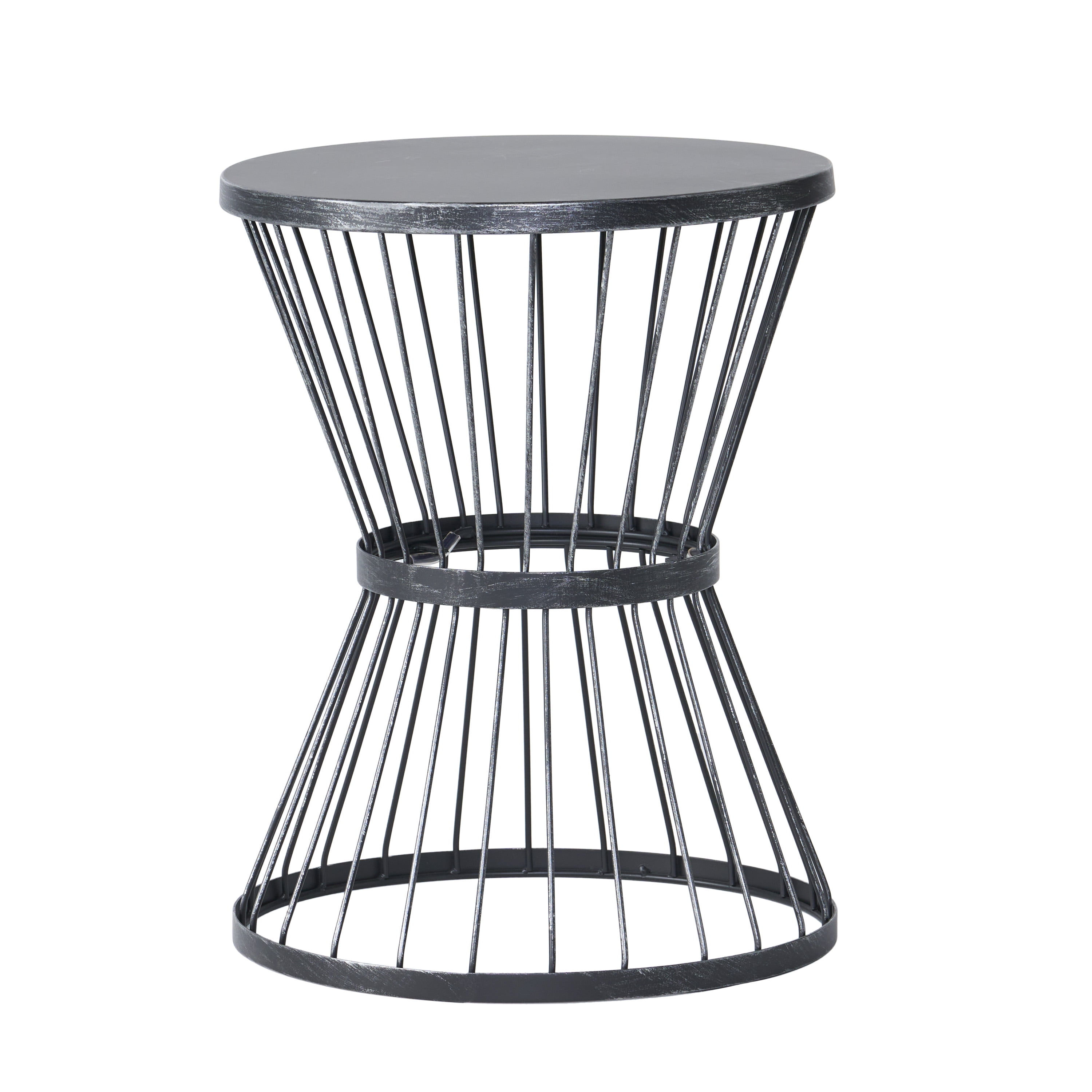 Enhance your outdoor space with an artistic touch that offers a place for your chilled cocktails, emphasizing relaxing summer vibes. With clean lines and a simple yet sophisticated aesthetic, this end table is an excellent sidekick to your existing outdoor furniture, perfect for holding a tray of snacks or a fresh pitcher of lemonade. The frame of this side table features a sleek, modern hourglass structure and an open cage design, making this piece great for any area in need of something new. MODERN DESIGN: With clean, precise lines, our side table is the ideal modern accessory for your space. Finished with a charming hourglass shape and open cage design, this table not only offers a chic, minimalistic look but also provides incredible structure. HOURGLASS SHAPE: Featuring a modern hourglass structure, the frame of this table brings a chic touch to the overall piece, making it an understated yet chic addition to your home. This is finished with a simple cage design. POWDER-COATED IRON FRAME: Constructed of powder-coated iron, the frame of this table is made to be incredibly durable, ensuring that this piece will hold up under use. DIMENSIONS: Choose an accessory that is the perfect size for you and your furniture. This accent table is 16.25″ W x 16.25″ D x 21″ H. You will love how much your space can transform with the simple addition of this charming table.NO ASSEMBLY: This accent table comes ready to use straight out of the box. No assembly is required. Features: Includes: One (1) Table Material: Iron Multiple Color Options Assembly Required Specifications: Product Dimensions: 21″H x 16.25″W x 16.25″D Weight Capacity: 14 lbs Product Weight: 8.82 lbs
