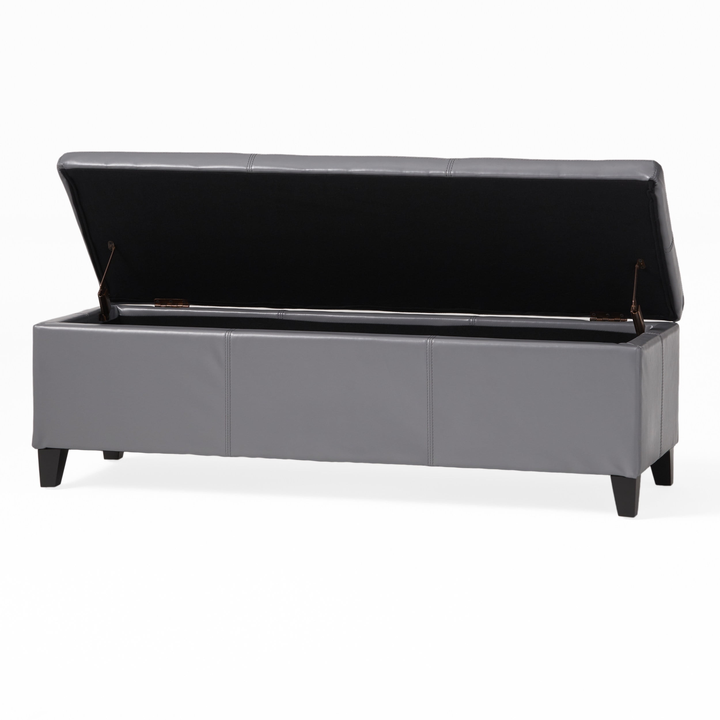 Noble House Lawrence Grey Faux Leather Storage Ottoman
