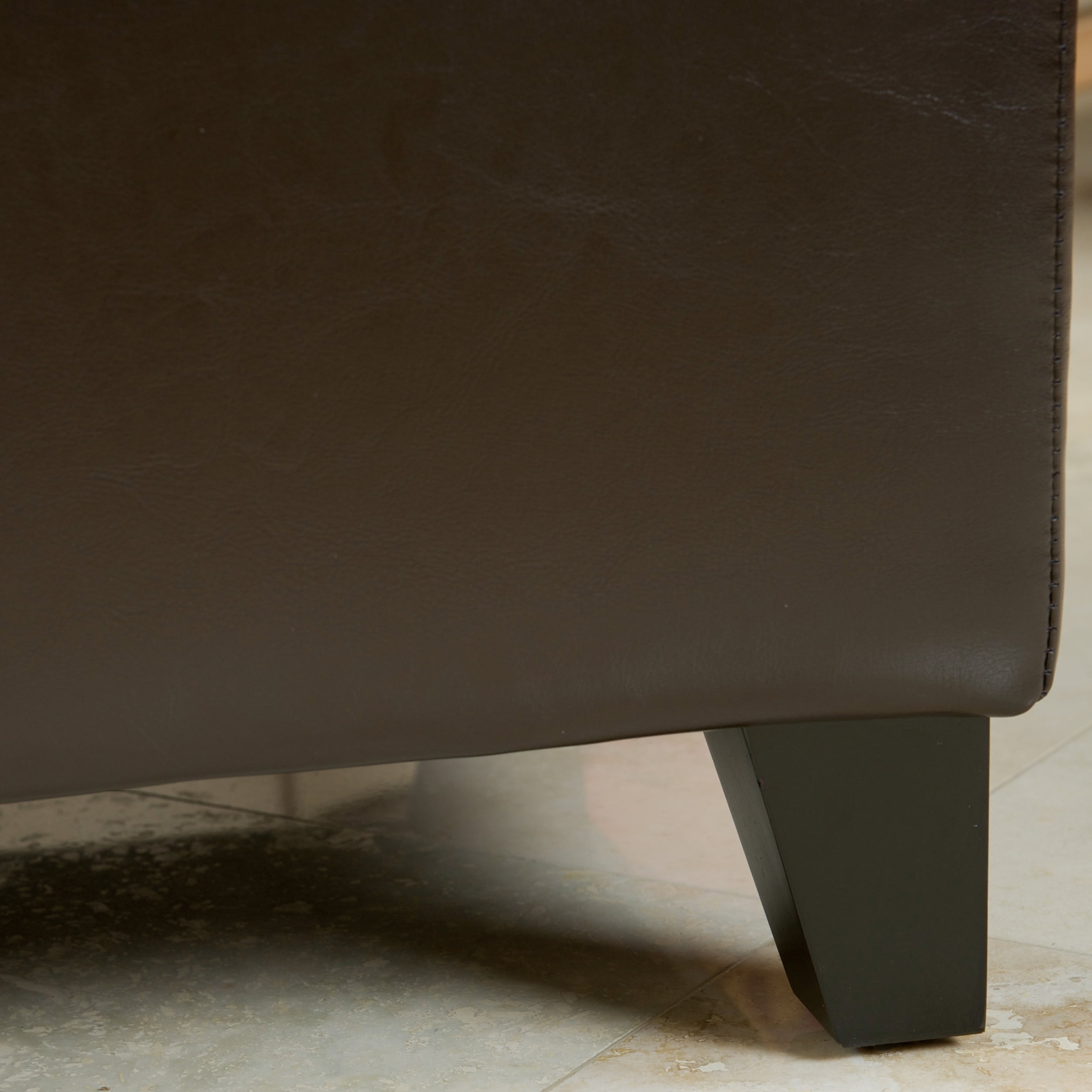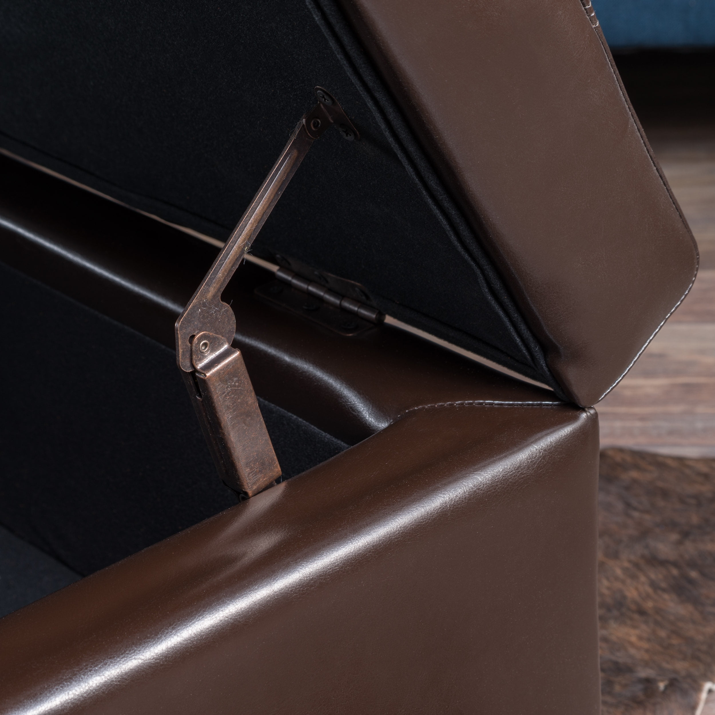 Hidden storage space inside Tufted PU leather top adds aesthetic appeal and decoration Upholstery type: PU Upholstery color: Brown Assembly Required Dimensions: 16 inches high x 19 inches wide x 51 inches long Interior dimensions: 9 inches high x 14 inches wide x 46 inches long