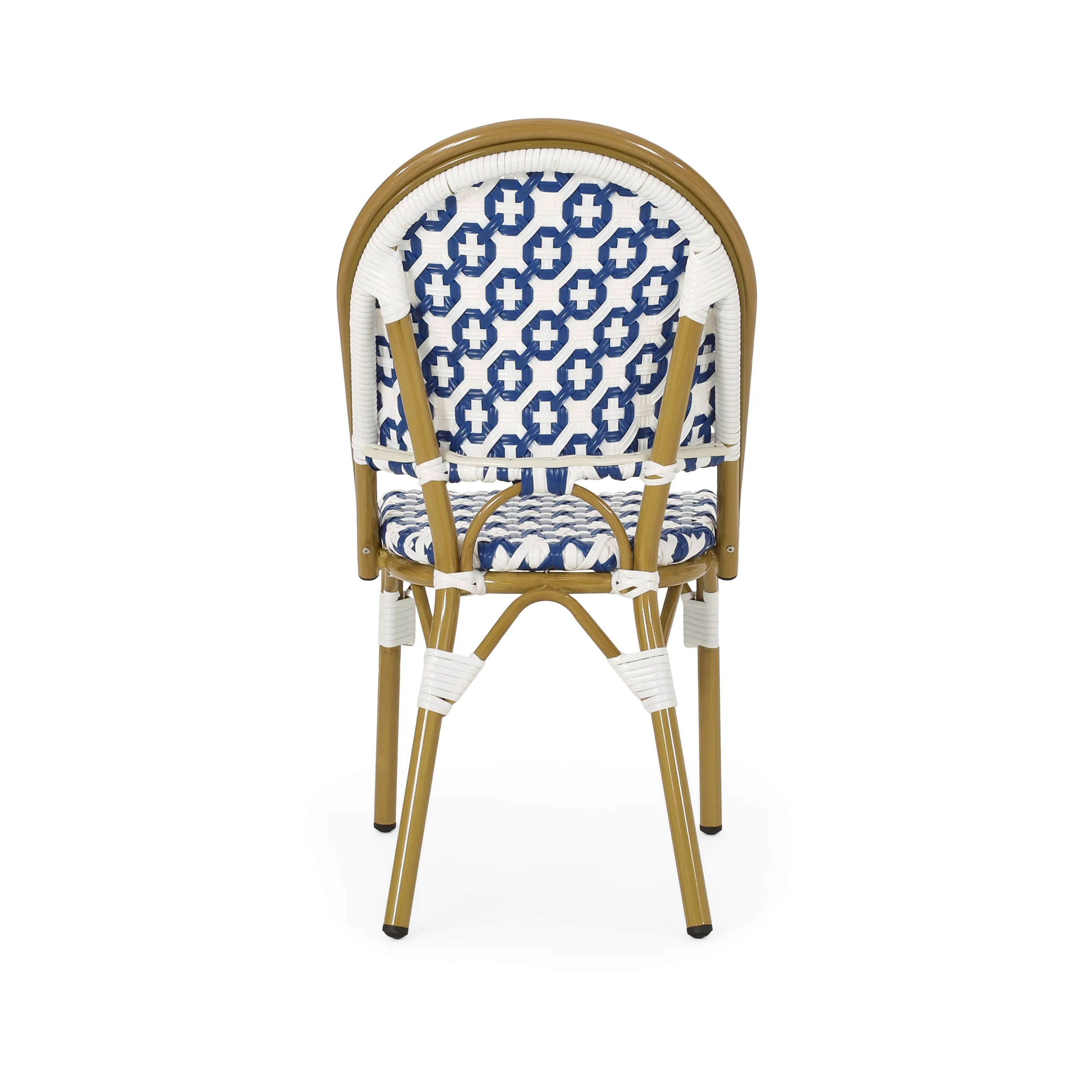 Noble House Louna Aluminum & Faux Rattan Bistro Chairs in Blue/White (Set of 2)