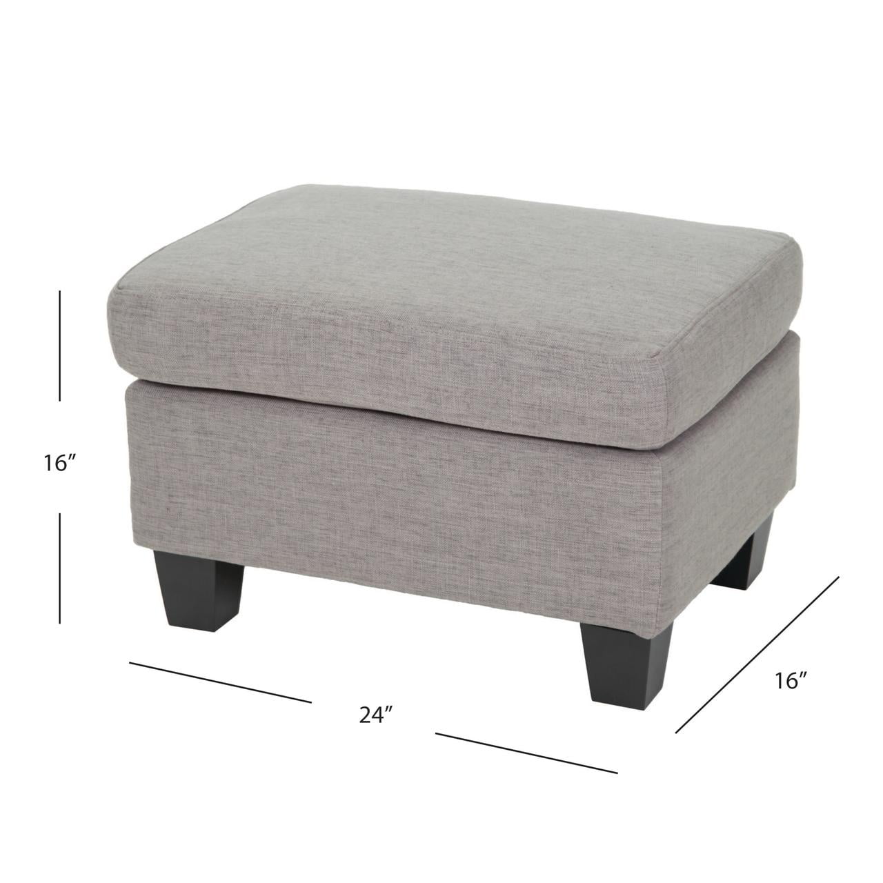Includes: One (1) Ottoman Material: Fabric Leg Material: Birch Wood Multiple Color Options Assembly Required Dimensions: 18.00 inches deep x 24.00 inches wide x 16.00 inches high Weight Capacity: 300 lbs