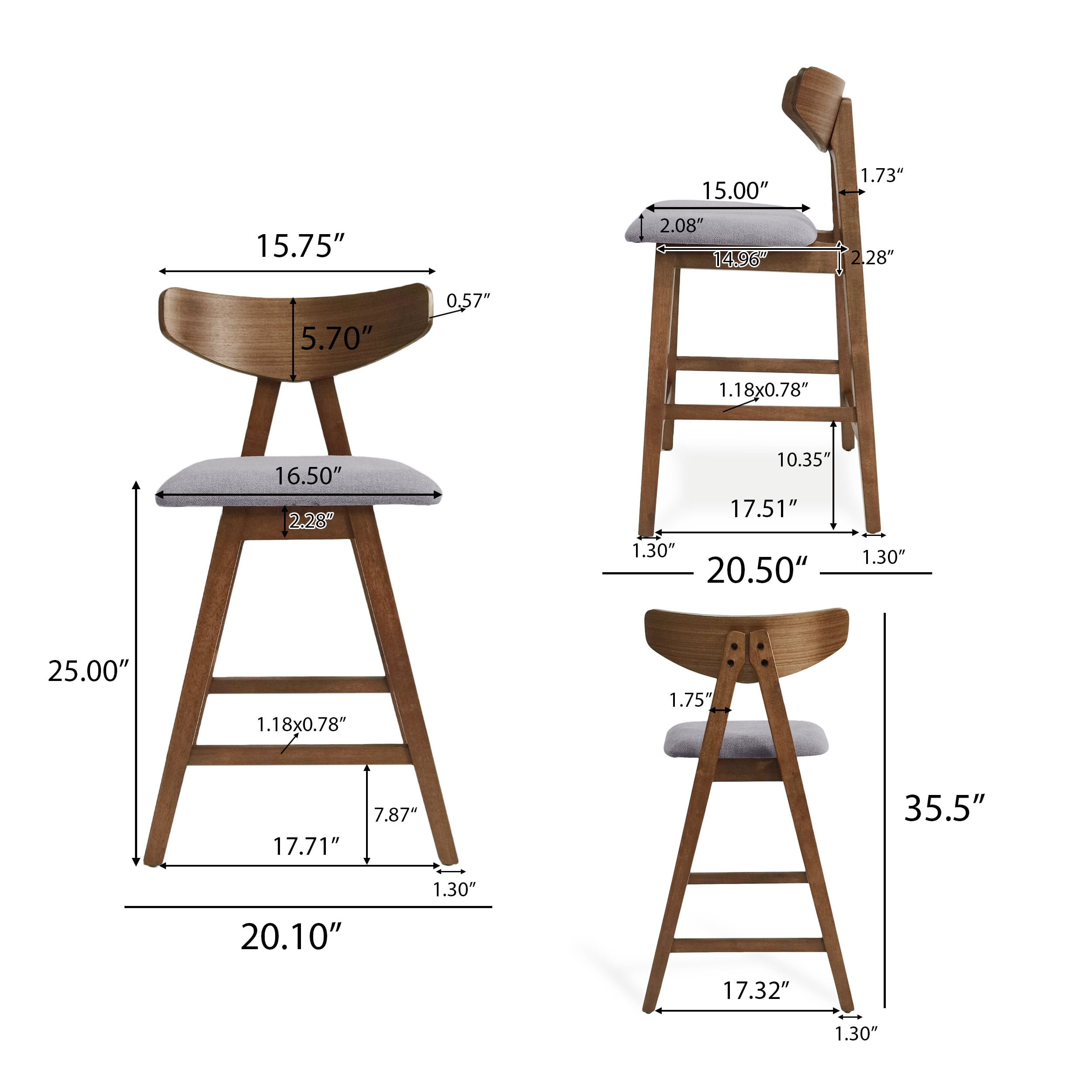 Noble House Marten Indoor Fabric Upholstered 25″” Counter Stools, Set of 2, Dark Gray, Walnut Includes: Two (2) Counter Stools Material: Fabric Frame Material: Rubberwood Multiple Color Options Leg Finish: Walnut Assembly Required Dimensions: 20.50 inches deep x 20.10 inches wide x 35.50 inches high Seat Dimensions: 15.00 inches deep x 16.50 inches wide x 25.00 inches high