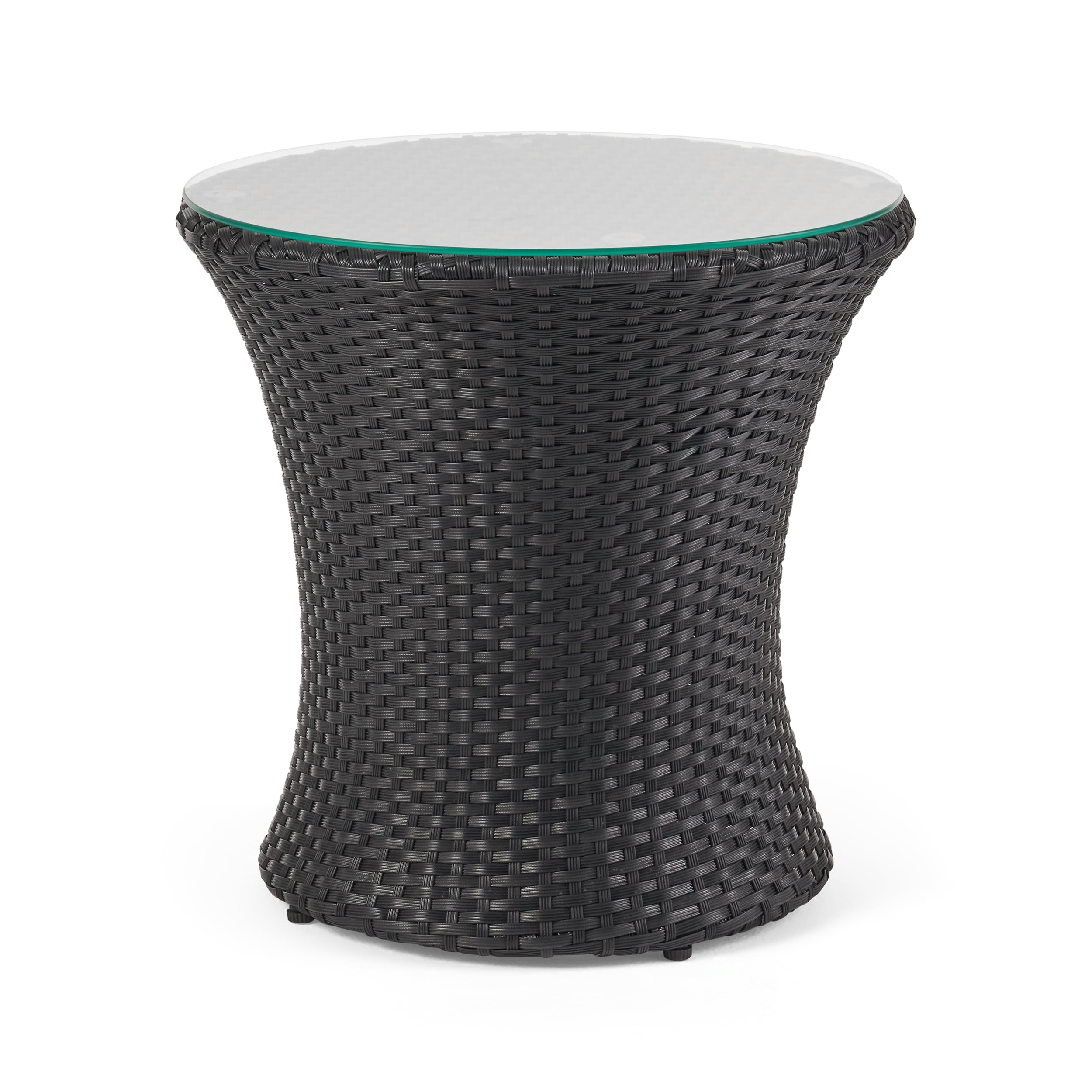Includes: Two (2) Chairs and One (1) Table Material: Faux Rattan Cushion Material: Water Resistant Fabric Fabric Composition: 100% Polyester Frame Material: Aluminum Multiple Color Options No Assembly Required Chair Dimensions: 27.50 inches deep x 27.50 inches wide x 23.50 inches high Chair Seat Dimensions: 24.75 inches deep x 23.00 inches wide x 12.50 inches high Table Dimensions: 20.00 inches deep x 20.00 inches wide x 19.75 inches high