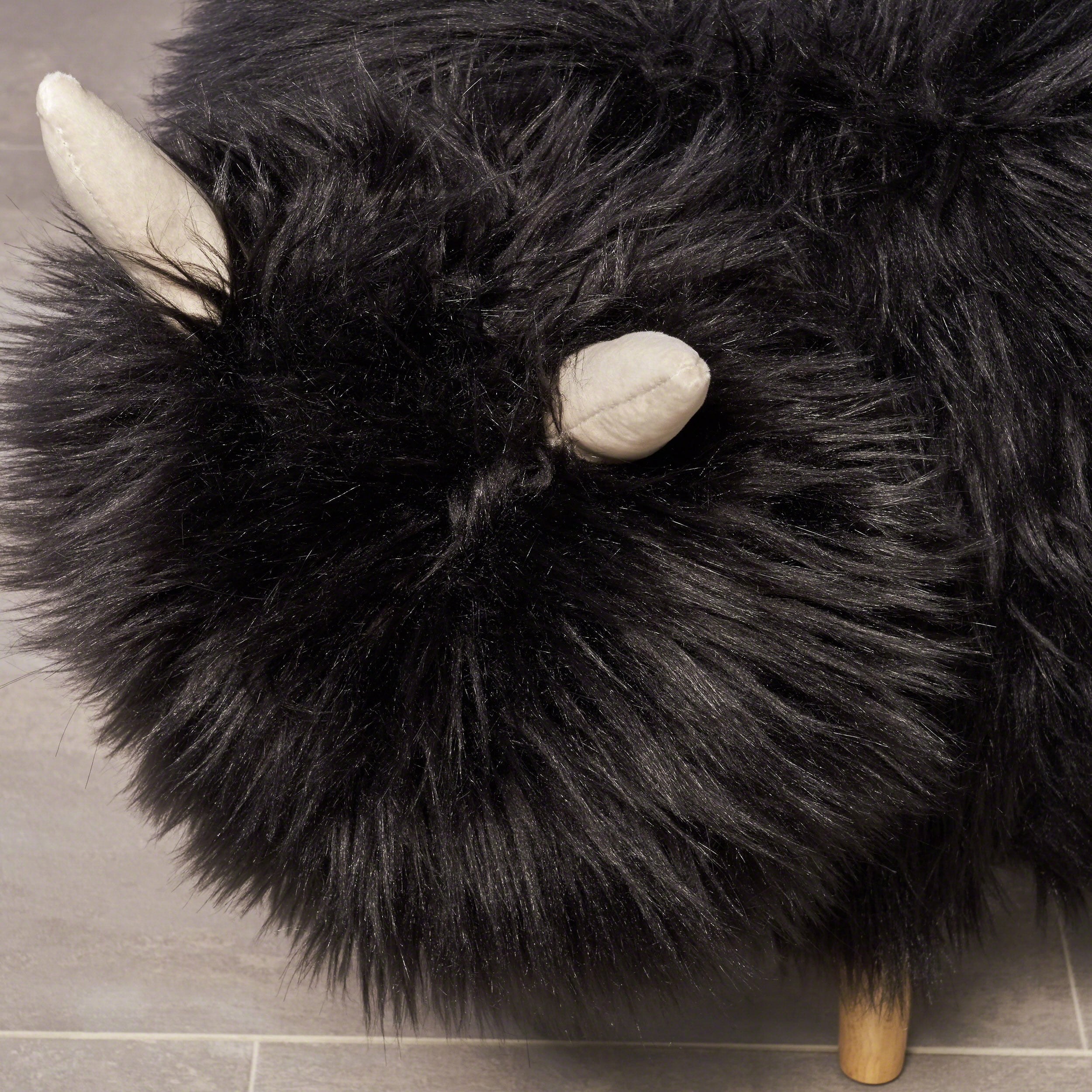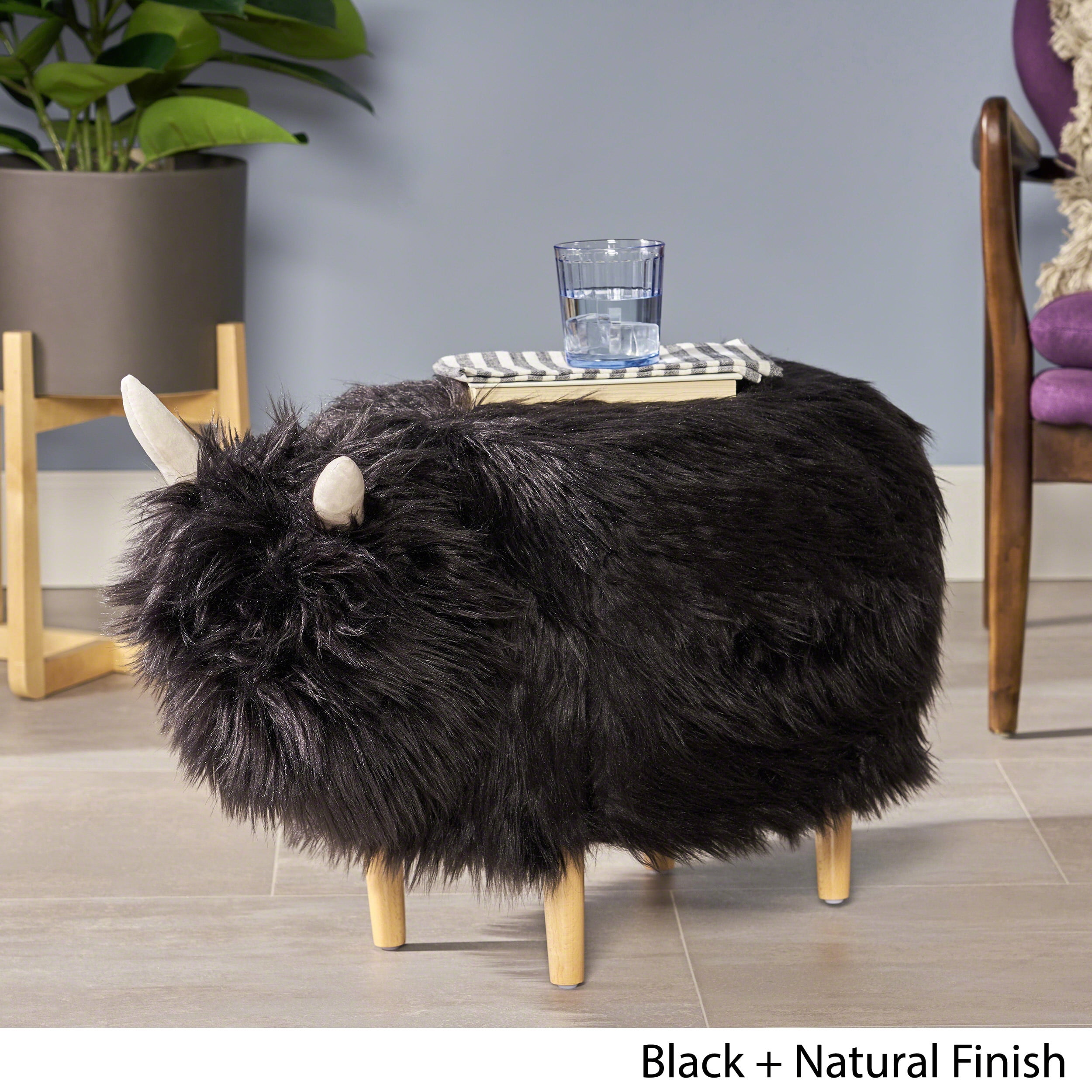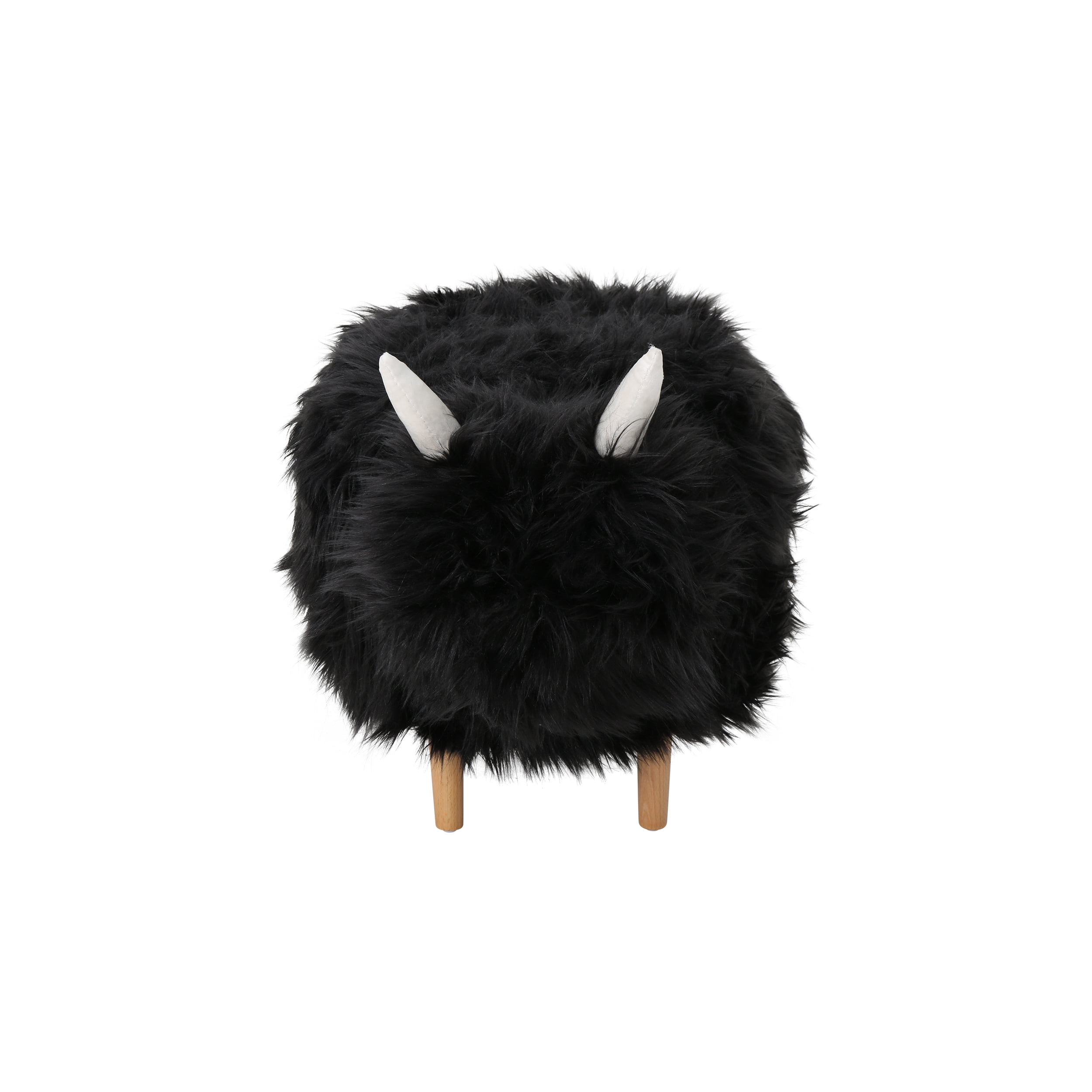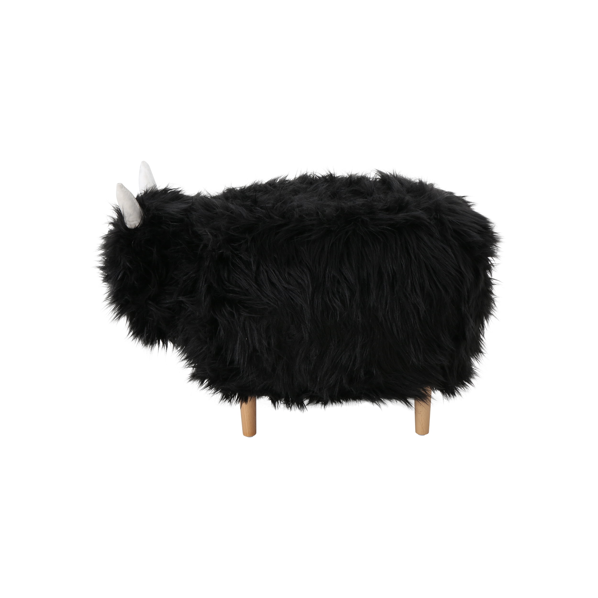 Includes: One (1) Yak Ottoman Material: Faux Fur Leg Material: Beech Wood Multiple Color Options Leg Finish: Natural Brown Assembly Required Dimensions: 17.50 inches deep x 26.50 inches wide x 17.25 inches high Weight Capacity: 300 lbs