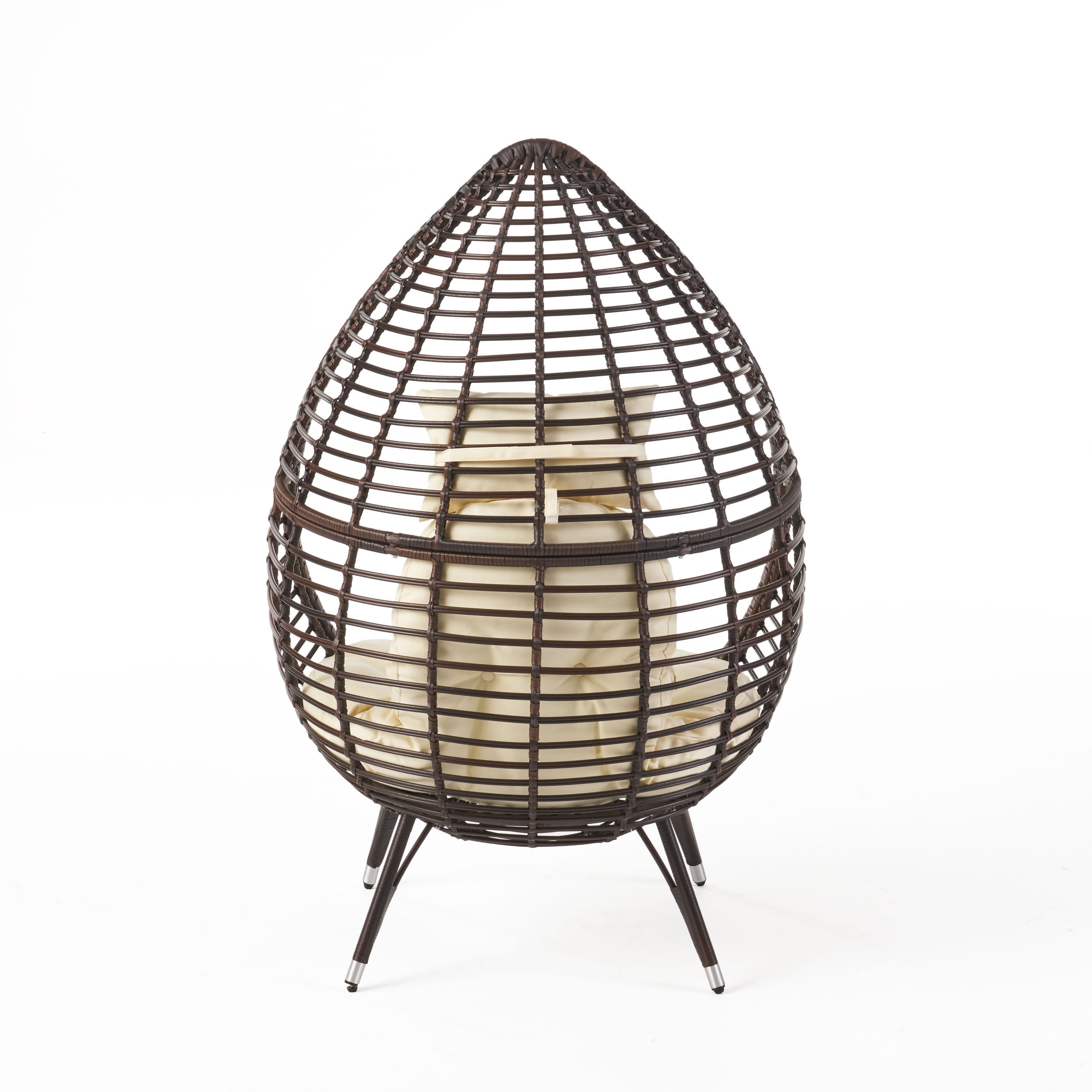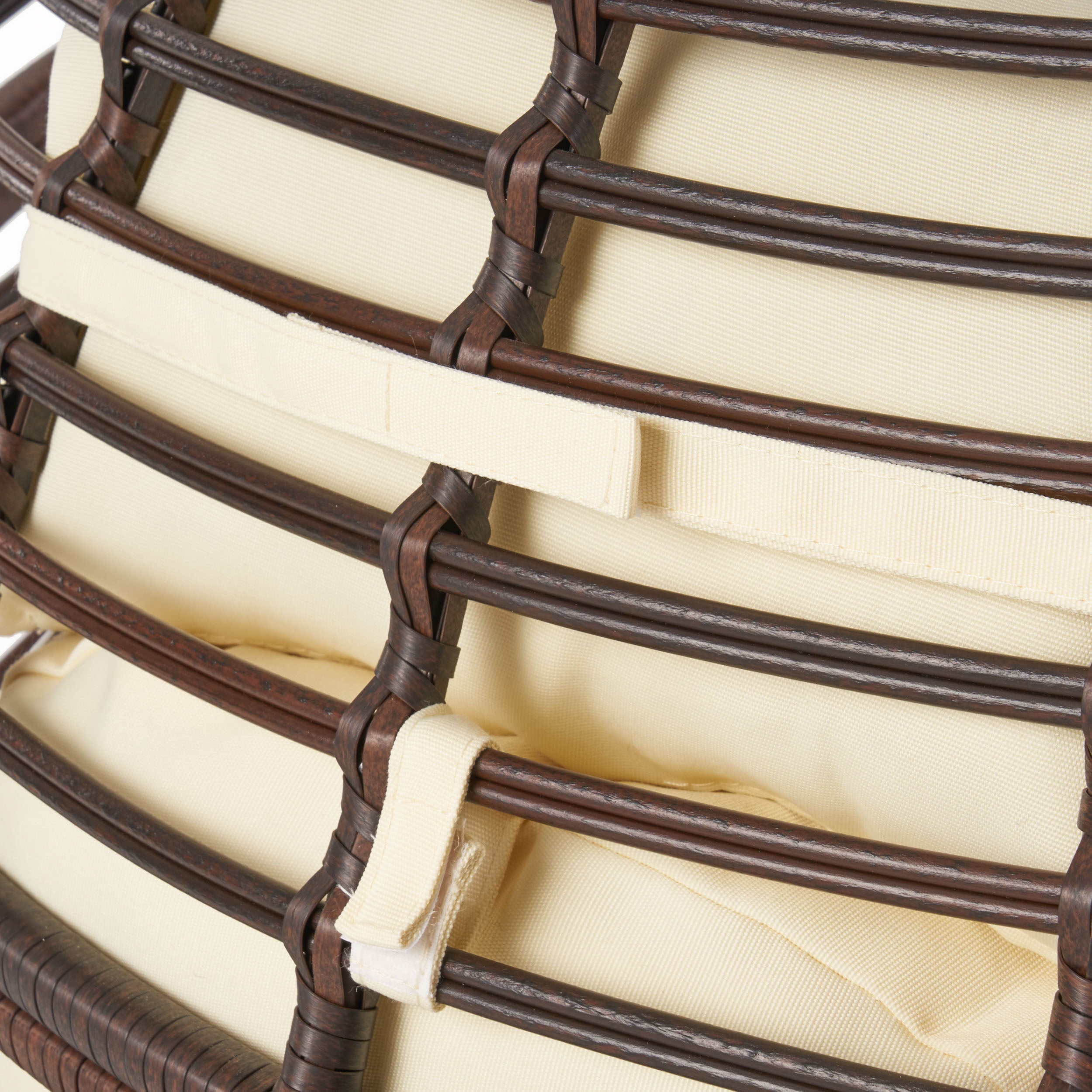Includes: One (1) chair Materials: Metal and resin wicker Cushion material: Fabric Color: Multi-brown Cushion color: Beige Assembly required: Yes Weight: 36-pounds Dimensions: 60.25 inches high x 37.75 inches wide x 33 inches deep