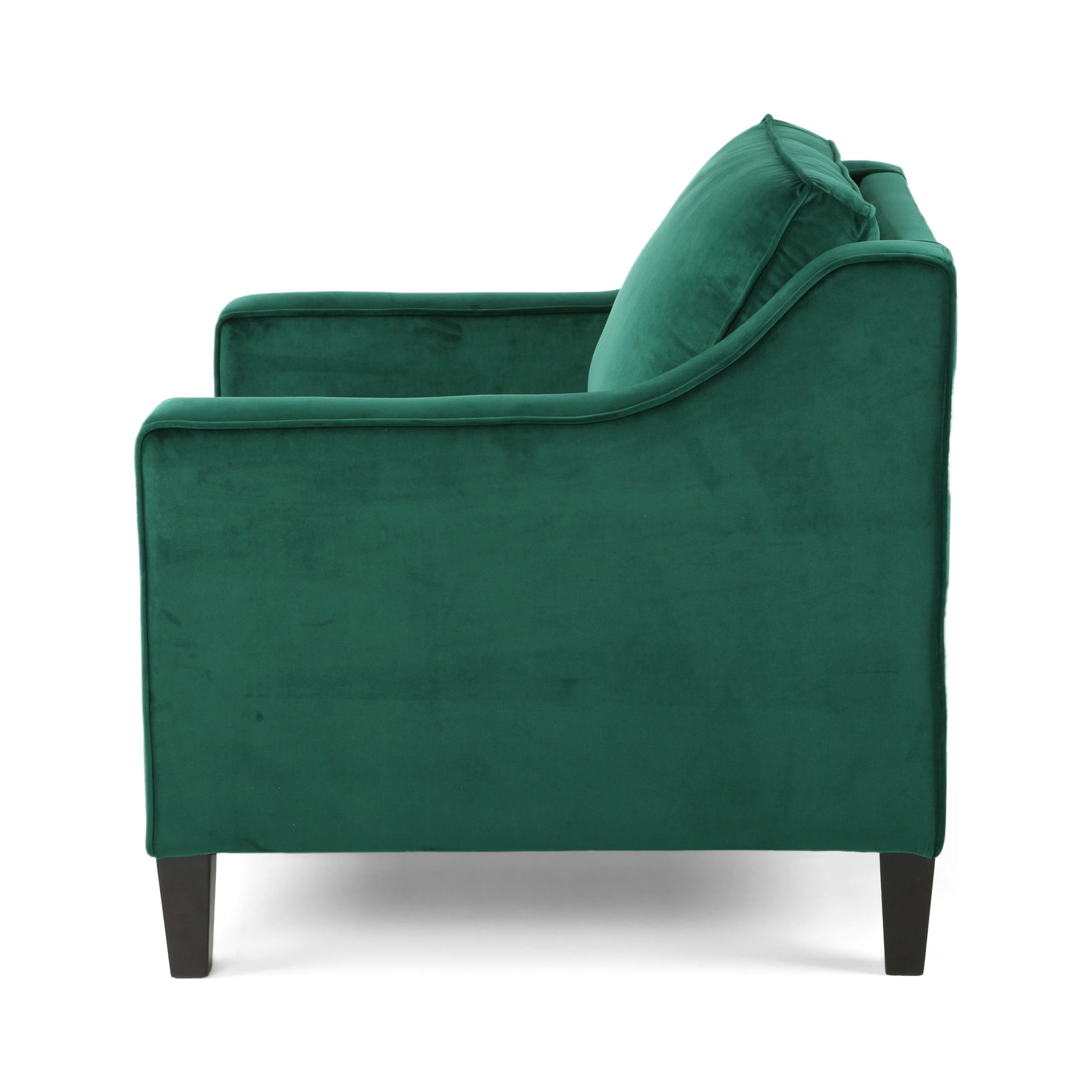 Noble House Milo Fabric Club Chair, Green: Includes: One (1) Club Chair Material: Velvet Velvet Composition: 100% Polyester Leg Material: Birch Multiple Color Options Leg Finish: Dark Brown Hand-Crafted Details Assembly Required Dimensions: 33.50 inches deep x 30.75 inches wide x 33.75 inches high Seat Dimensions: 20.75 inches deep x 23.50 inches wide x 20.50 inches high Arm Height: 24.75 inches
