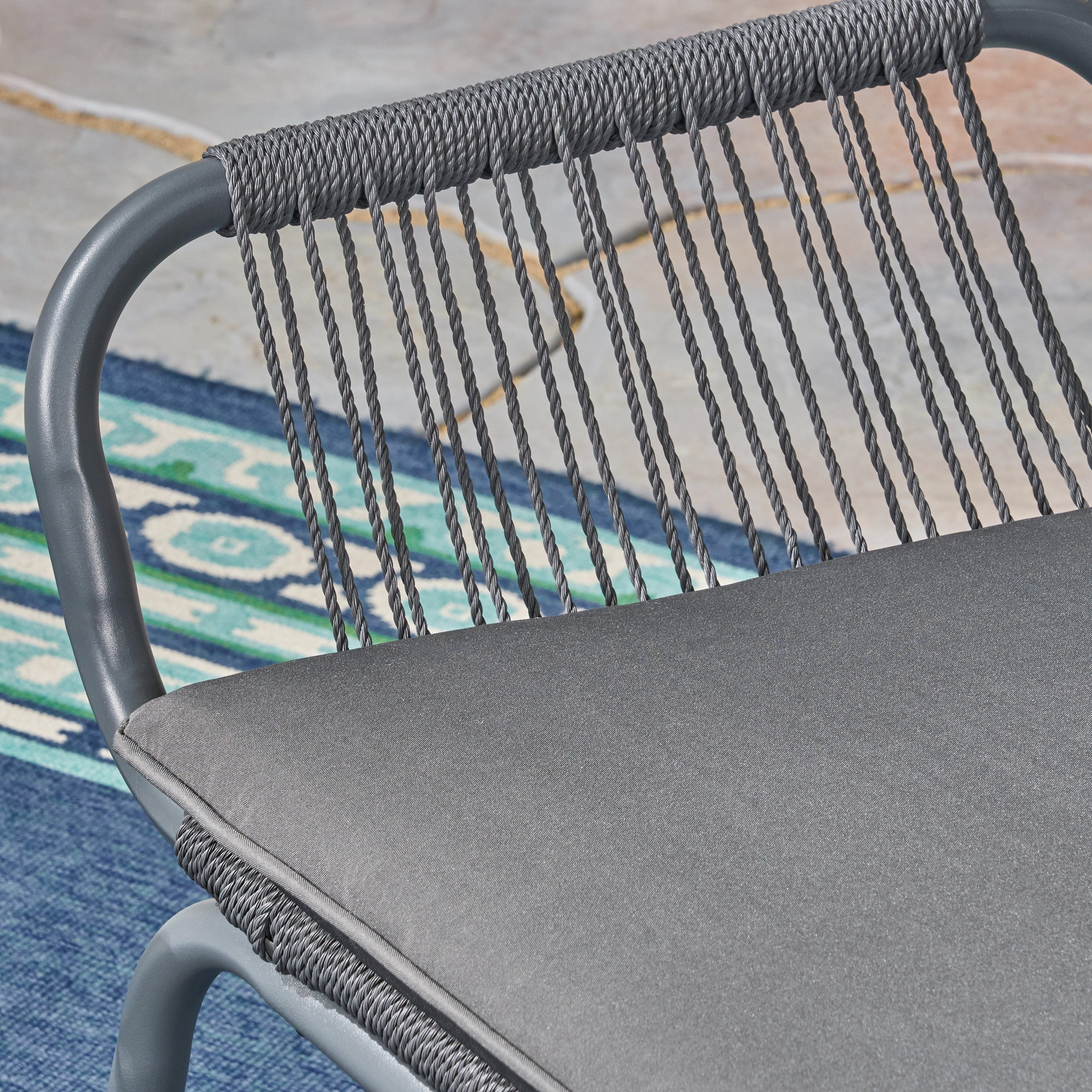 Noble House Morgan Modern Solid Print Outdoor Rope and Steel Club Chairs, Gray / White Set of 2