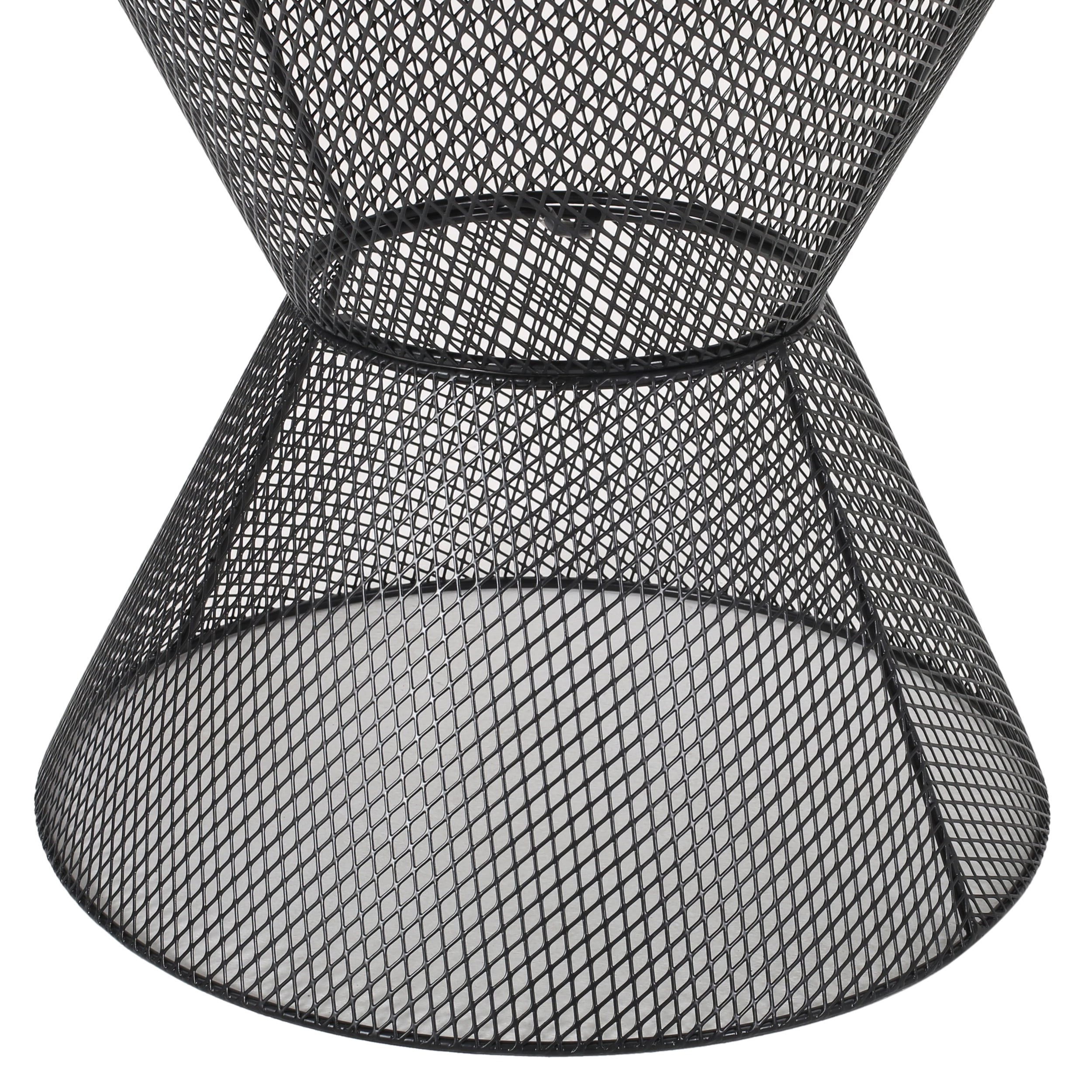 Easily place a chilled drink on our bold side table while you relax with a good book under the summer sun. Featuring a breezy mesh look and rounded silhouette, our side table serves as the perfect companion for your existing furniture, providing a timeless style to your home. Consisting of a striking hourglass shape and iron frame, this delightful table is made to last with its intricate, durable structure and refreshing finish. Ideal for any outdoor space, this table will charm you and your guests alike. MODERN: With clean lines contrasted perfectly by its rounded silhouette, our table is the ideal modern accessory for your interior space. Finished with an hourglass shape and diamond mesh design, this chat set not only has a sleek, minimalistic look but also provides a stable structure. HOURGLASS SHAPE: The table offers a charming hourglass shape that is designed to enhance the modern vibe of this set. This drum style is perfect for rounding out compact spaces with a dazzling touch. IRON FRAME: Constructed of iron, the frame of this table is made to be incredibly durable, ensuring that this piece will hold up under heavy use. DIMENSIONS: Choose an accessory that is the perfect size for you and your furniture. This side table is 17.75” W x 17.75” L x 18.25” H. You will love how much your space can transform with the simple addition of this charming table. ASSEMBLY REQUIRED: Minimal assembly is required for this table. All of the instructions and tools needed for assembly are included. Features: Includes: One (1) Side Table Material: Iron Finish: Matte Black hand-Crafted Details Assembly Required Dimensions: 17.75 x 17.75 x 18.25 Specifications: Product Dimensions: 18.25″ H x 17.75″ W x 17.75″ D Product Weight: 6.72 lbs