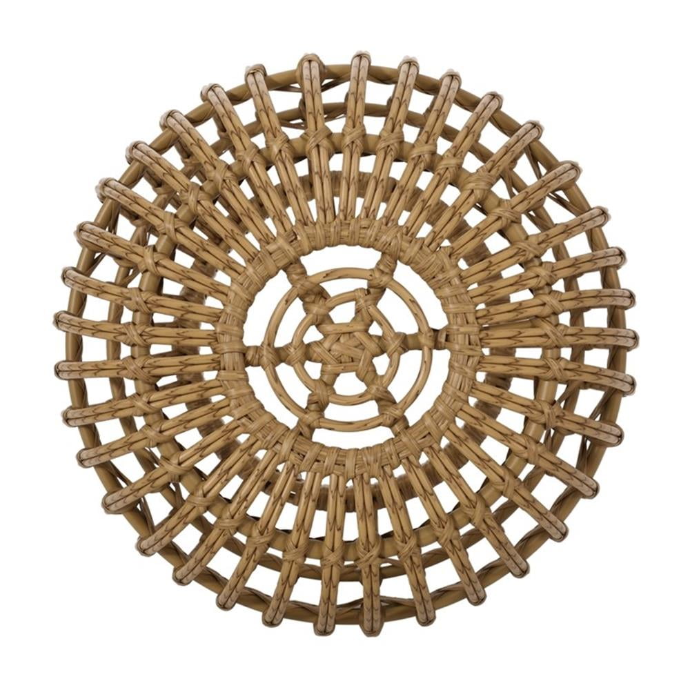 Befitting for any sofa side or a plain corner of your home, our impressive side table takes a stunning open weave design and curved structure to offer a charming boho touch to your decor. Its flat rounded shape brings a refined atmosphere to this piece while providing incredible stability. With an underlying metal frame, the sturdy structure of this table will allow you to easily enjoy a warm sunny day outdoors with a glass of lemonade and a bowl of your favorite snacks. BOHO: For a carefree, unconventional look and a variety of textures for your interior space, our side table brings an earthy boho touch to your decor with its gorgeous faux rattan weave and open structure. HANDCRAFTED DESIGN: This accessory is expertly designed and handcrafted with artisan expertise. Any natural variations are not product flaws, but rather, will ensure that your purchase is truly a one-of-a-kind product. POLYETHYLENE RATTAN: Featuring a long-lasting woven finish, this style is not only incredibly durable but also provides a versatile appearance. The handcrafted details of this material allow this piece to blend seamlessly with your outdoor decor. DIMENSIONS: Choose an accessory that is the perfect size for you and your furniture. You will love how much your space can transform with the simple addition of this charming side table. NO ASSEMBLY: This side table comes ready to use straight out of the box. No assembly is required. Features: Set includes 1 side table Material: Faux wicker / rattan Finish: Light brown Frame material: Iron Specifications: Table Dimensions: 18.5″H x 19.7″W x 19.7″D Product Weight: 8.38 lbs