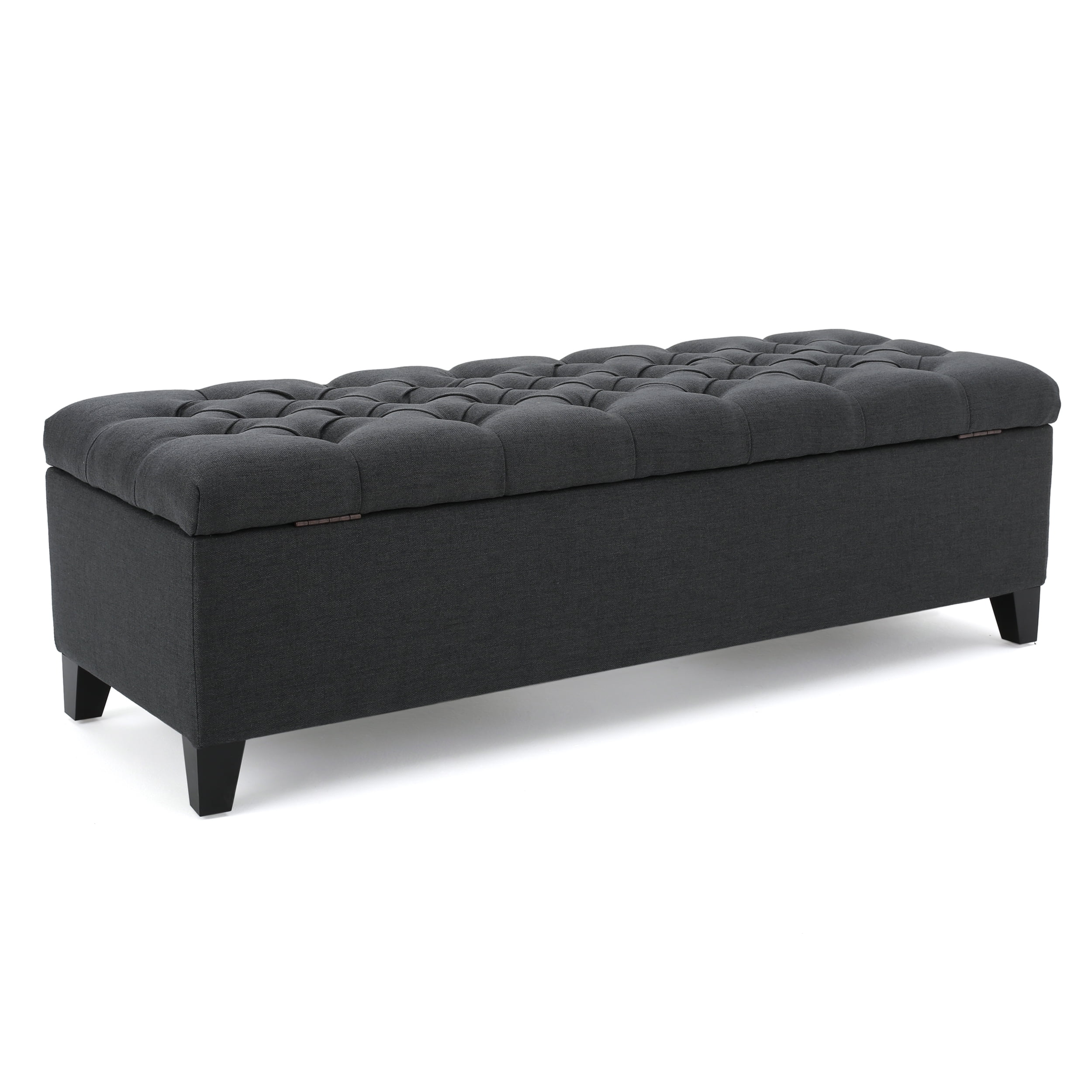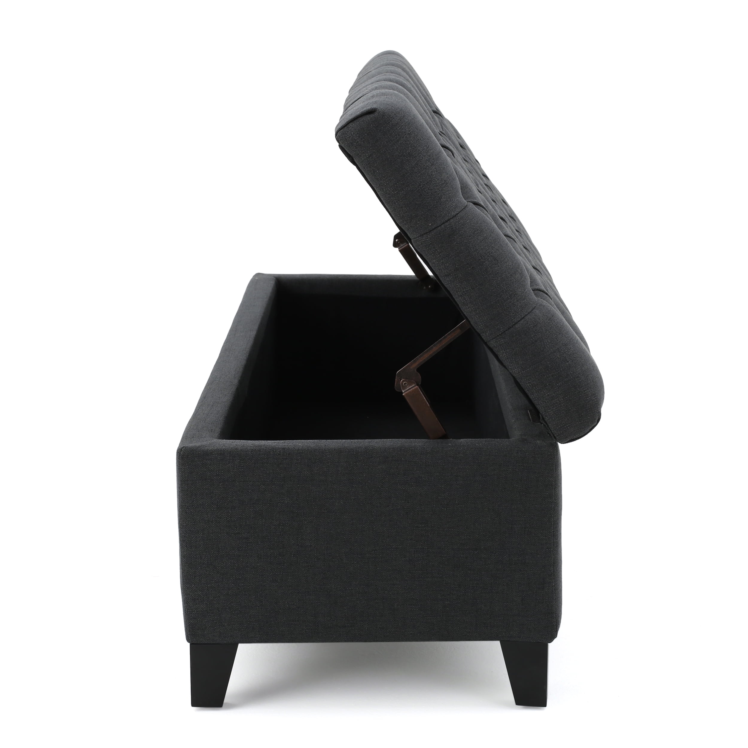 Noble House Paskal Contemporary Button-Tufted Fabric Storage Ottoman Bench, Dark Gray and Dark Brown