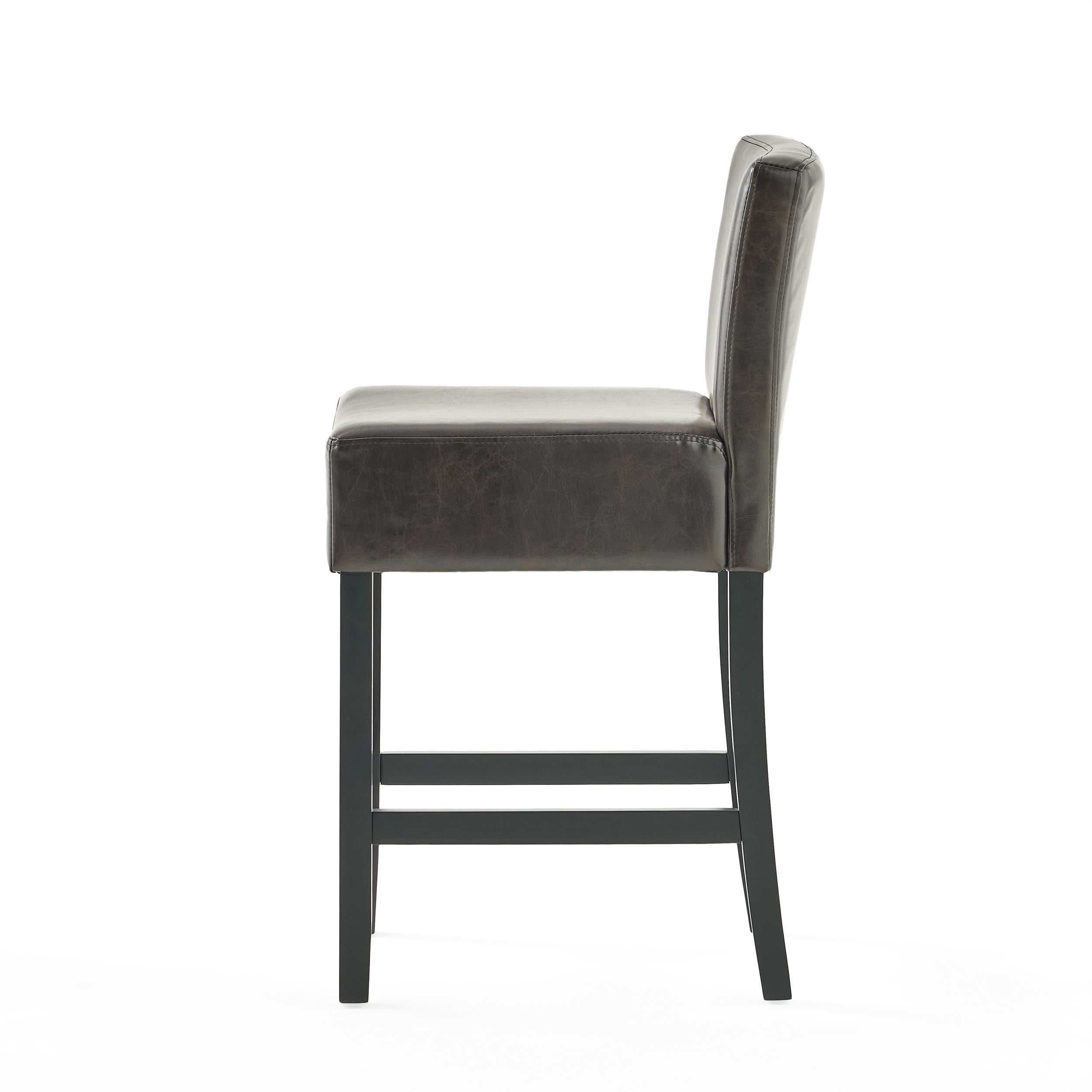 Includes: Two (2) counter stools Color: Brown Finish: Espresso Assembly required: Yes Weight: 21 pounds Material: Bonded Leather, Wood Dimensions:18″W x 23”D x 38.50”H Seat Dimensions: 18″W x 17.25”D x 26”H