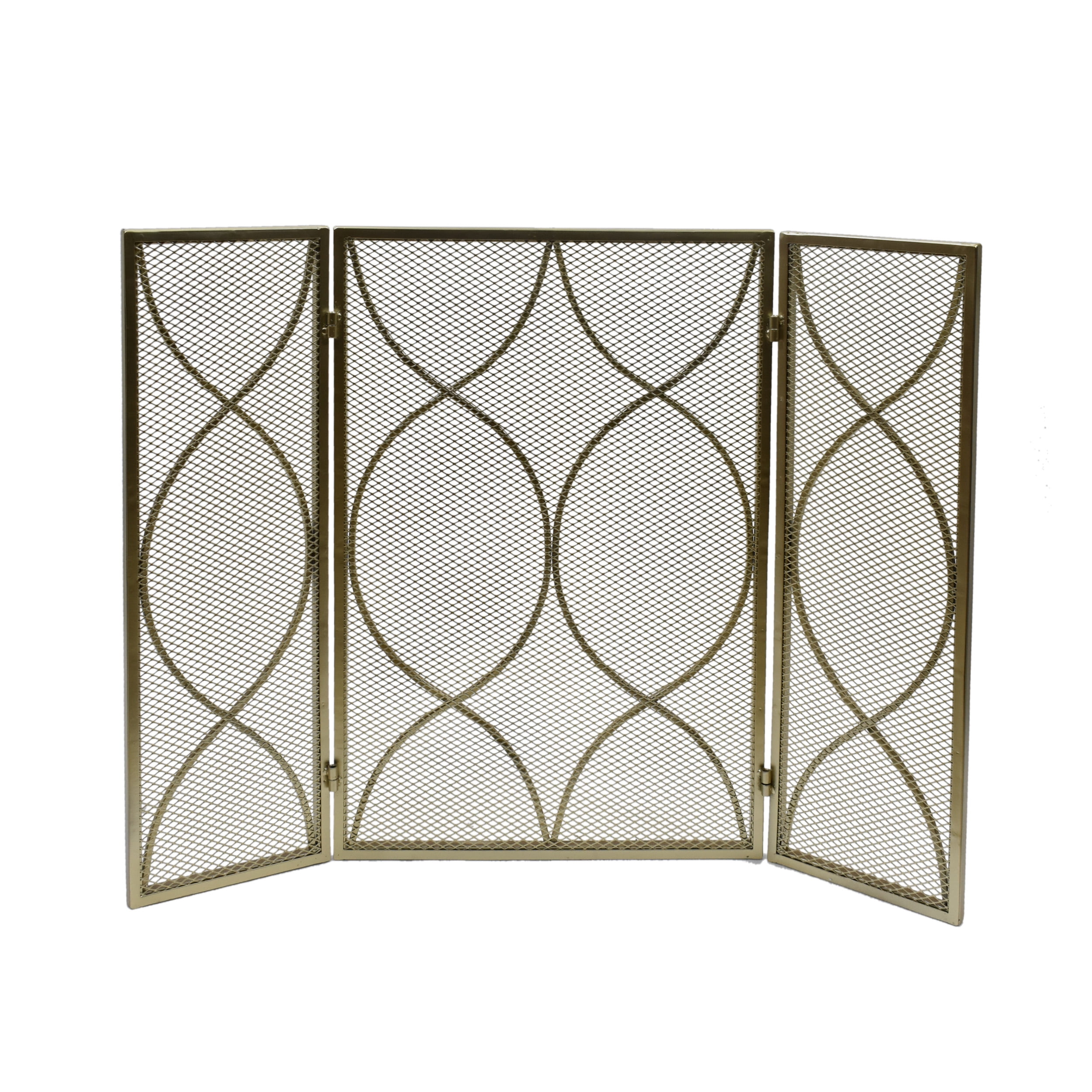 Enjoy a good book or cup of hot cocoa next to the fire with the help of our stylish fire screen. This fireplace screen offers a sleek accent to your living room or bedroom while providing protection from hot embers or flying sparks with its fine mesh screen. This three-panel screen is foldable, making this extremely convenient to use. Featuring precise, straight lines and a curved geometric pattern, this accessory highlights both functionality and style to give your home the best of the best. MODERN: Our fireplace screen incorporates clean, straight lines with a curved geometric pattern for a truly modern look. With fine diamond mesh and a simple brushed finish, this accessory brings out a simplistic style that emphasizes functionality. IRON FRAME WITH MATTE FINISH: Constructed of iron, the frame of this fireplace screen is made to be incredibly durable. It is finished with a matte color, giving this accessory a polished look. With an underlying metallic frame, the brushed coating provides a hand-crafted touch for an artistic flair. THREE-PANEL DESIGN: This fire screen offers a foldable, three-panel design for a stable and stylish structure. This look offers your fireplace a sophisticated touch that also encompasses your fireplace to prevent any embers from flying out. DIMENSIONS: Choose an accessory that is the perfect size for you and your furniture. This fireplace screen?s overall dimensions are 29.75? H x 41.00? W x 1.25? D. You will love how much your space can transform with the simple addition of this fire screen. NO ASSEMBLY: This fire screen comes ready to use straight out of the box. No assembly required.