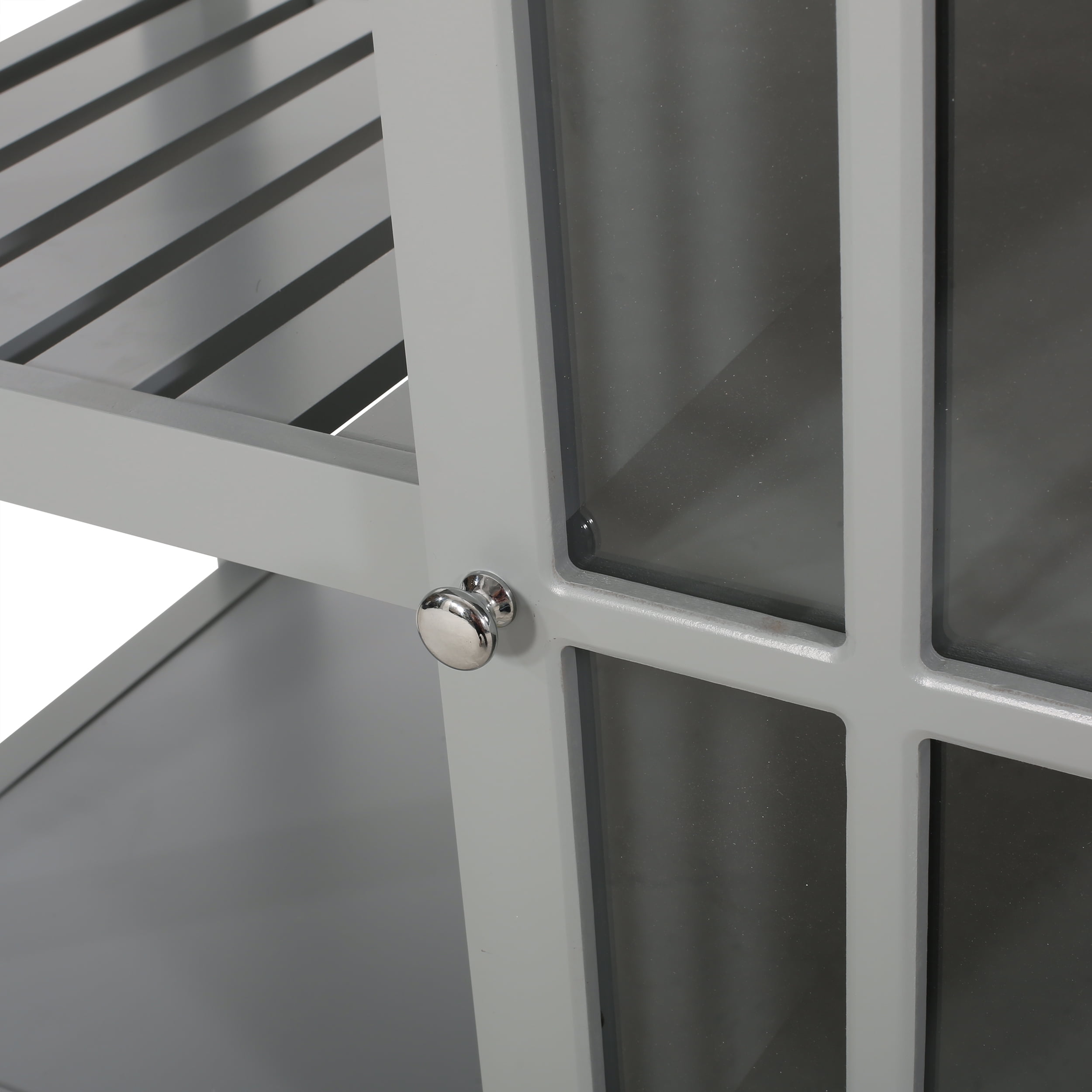 Put everything in its place with a beautiful combination of storage space. From its beautiful glass panel cabinet to its open shelving, our kitchen cart offers ample organizational space to upgrade your living standard with a breeze. This piece offers a stunning contemporary style and functional design that gives you plenty of options to effortlessly and efficiently store your kitchen accessories. Crafted with sturdy wood and rolling casters, our kitchen cart brings a fresh yet timeless look for all to enjoy. CONTEMPORARY DESIGN: Featuring clean lines and half-moon handles, our kitchen cart offers the look, feel, and design of a truly contemporary piece. With a minimalistic yet refined structure, this set brings out a simplistic style that emphasizes comfort and functionality. RUBBERWOOD TOP: Our environmentally-friendly wood not only offers plenty of durability, but it also gives this piece a beautiful natural-grain look. Combined with a gorgeous finish, this wood will truly stand out in any room. MULTI-FUNCTIONAL: Our kitchen cart offers two drawers, one glass-paneled cabinet space, and two half shelves for storing your items. This cart is also finished a towel holder on one side and hanging hooks on the other. The bottom of cart is completed by rolling casters with locks that make it effortless to transport. IDEAL FOR SMALL SPACES: This island offers a compact design that makes this perfect for apartments or small spaces. Choose an accessory that is the perfect size for you and your furniture. This kitchen cart is 34.15” W x 17.15” D x 34.75” H. You will love how much your space can transform with the simple addition of this charming cart. ASSEMBLY REQUIRED: Some assembly is required for this kitchen cart. All of the instructions and tools needed for assembly are included.