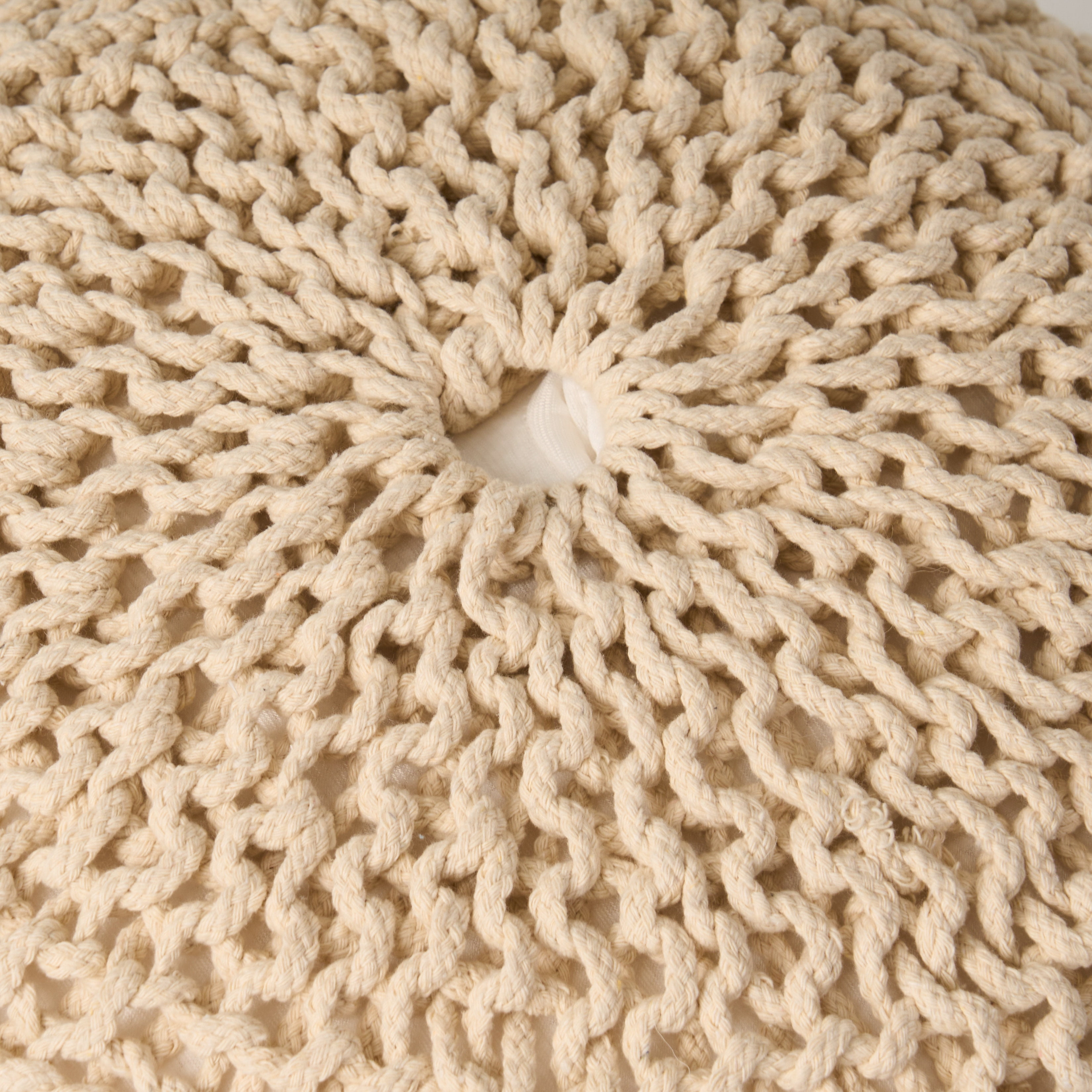 Invite elevating colors and textures into your home for an instant upgrade. Featuring a charming round knitted design, this pouf offers your indoor space an uplifting atmosphere, making this the perfect seating for children in a nursery or a colorful footrest in a stylish living room. Whether you’re looking to put your feet up after a long day or if you’re in need of extra plush seating, this pouf offers a variety of functions for you and your guests to discover. MODERN DESIGN: Our pouf is ideal for those who enjoy simple, uncluttered spaces but still want to receive the full experience of the product’s functions. With its refreshing color and textured design, this lovely round pouf is a perfect accessory for any modern home. KNIT WEAVE: Our pouf brings a charming coziness to your home with its delightful knit weave cover. Not only does this give your home a snug look but it also brings a splash of texture to your decor. FABRIC COVER: Made with fabric, our pouf is knitted with sturdy rope to create an incredibly strong and stable accessory. Featuring a wide array of colors, this material offers your home beautiful aesthetics and a breathable design. DIMENSIONS: Choose an accessory that is the perfect size for you and your furniture. You will love how much your space can transform with the simple addition of this charming pouf. NO ASSEMBLY: This pouf comes ready to use straight out of the box. No assembly is required.