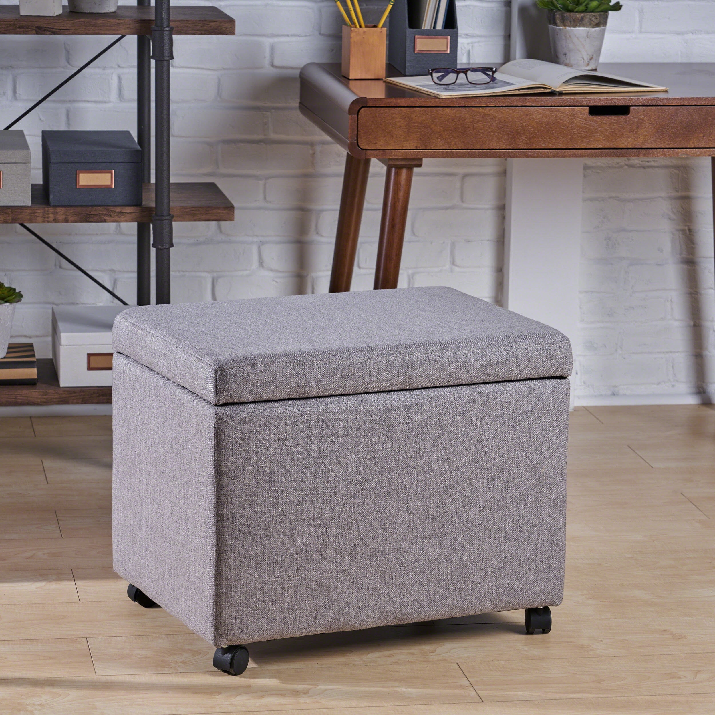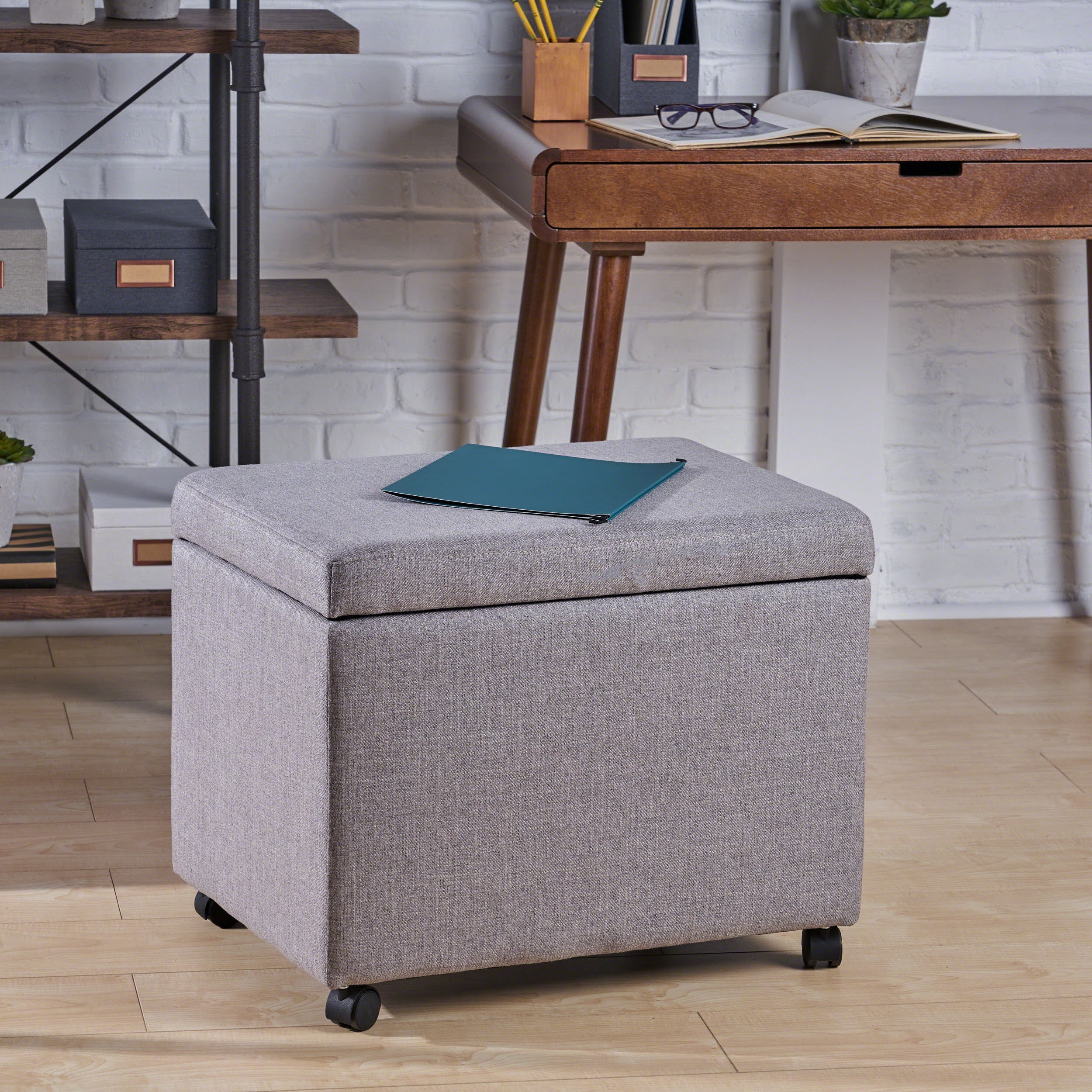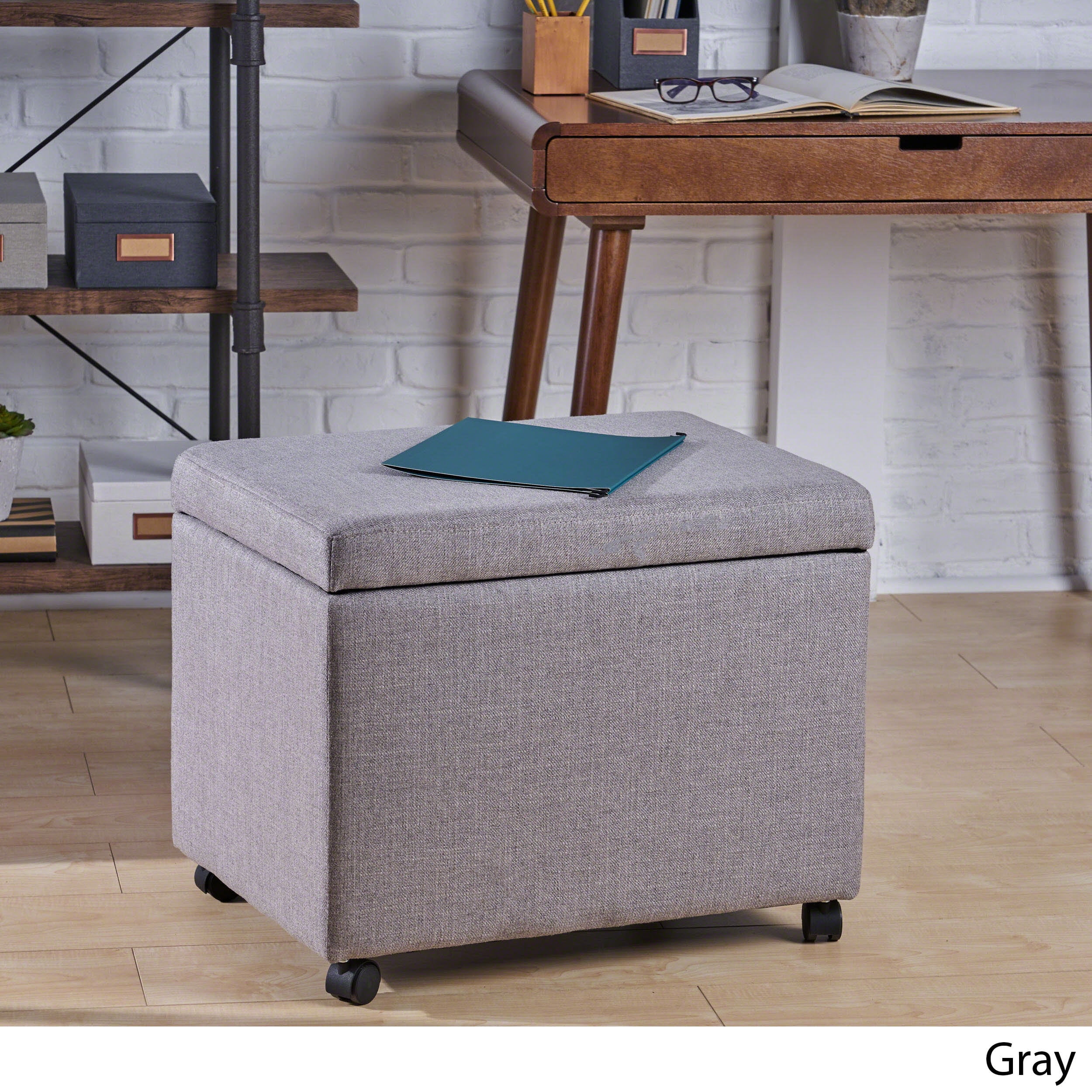 Includes: One (1) File Ottoman Material: Fabric Leg Material: Plastic Casters Color: Gray Leg Finish: Black Assembly Required Hand Crafted Details Dimensions: 18.25 inches deep x 24.25 inches wide x 20.25 inches high Interior Dimensions: 13.75 inches deep x 20.25 inches wide x 14.25 inches high
