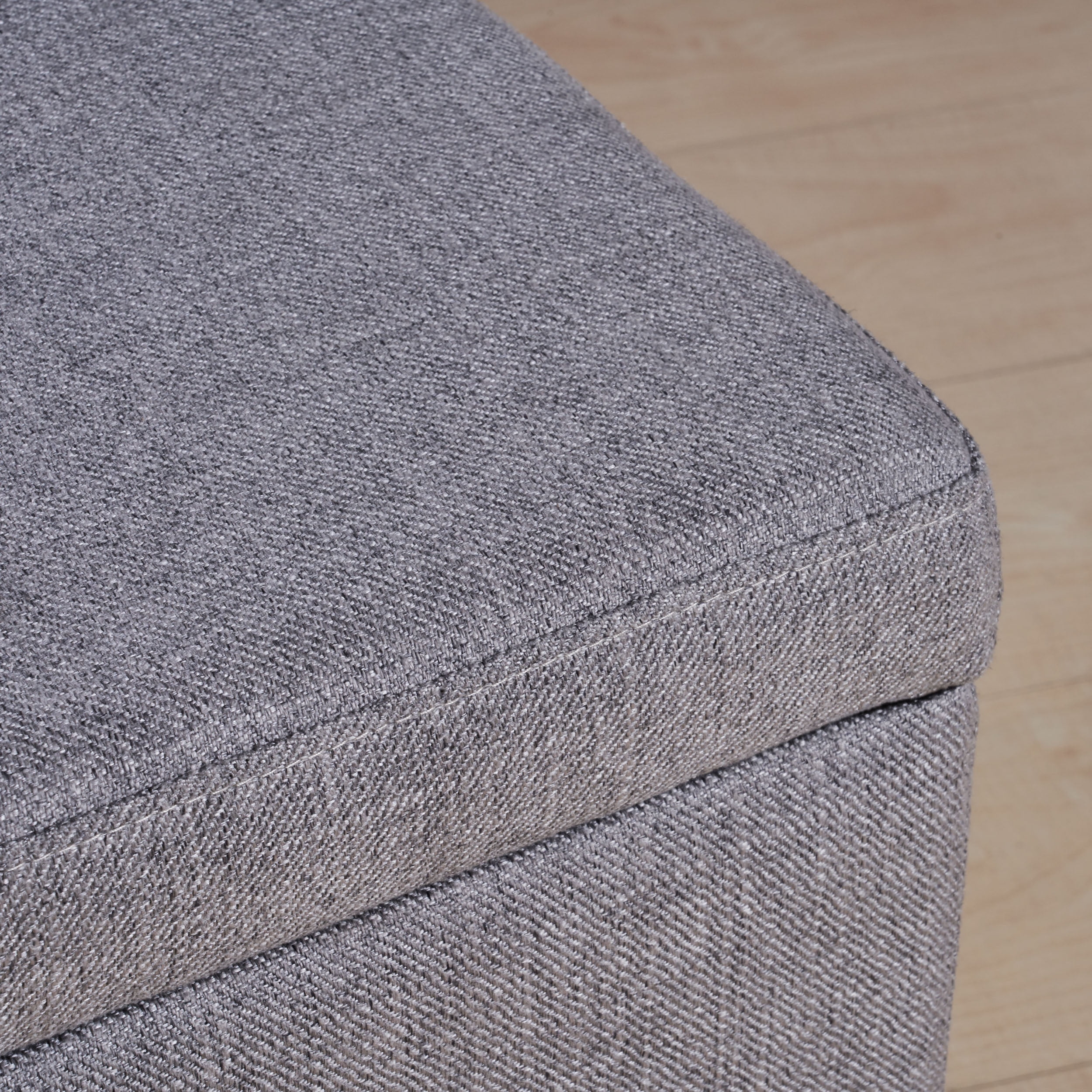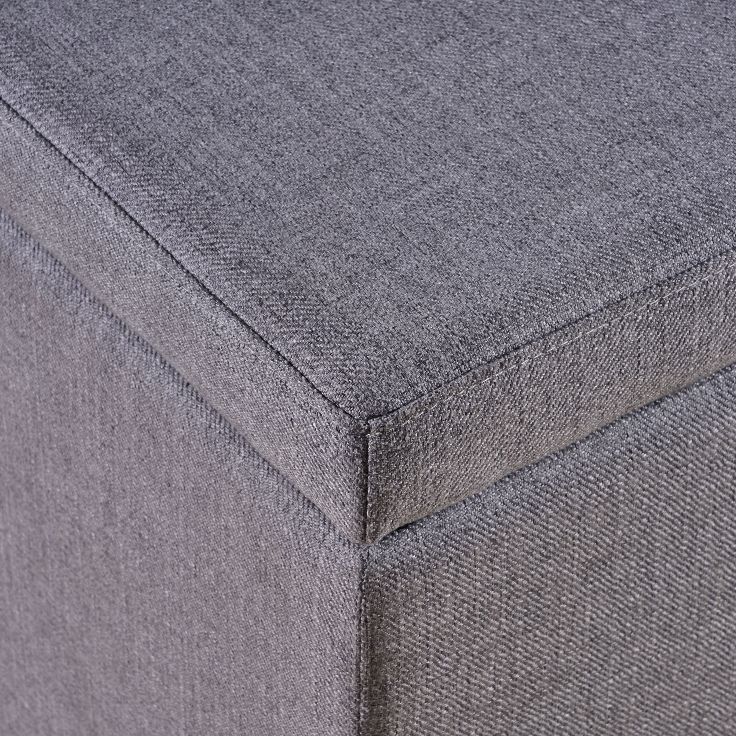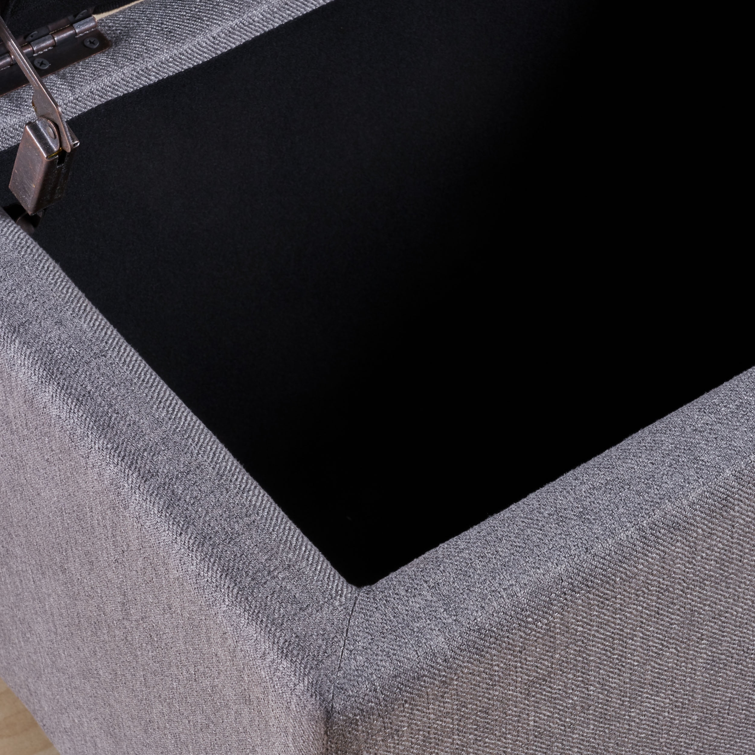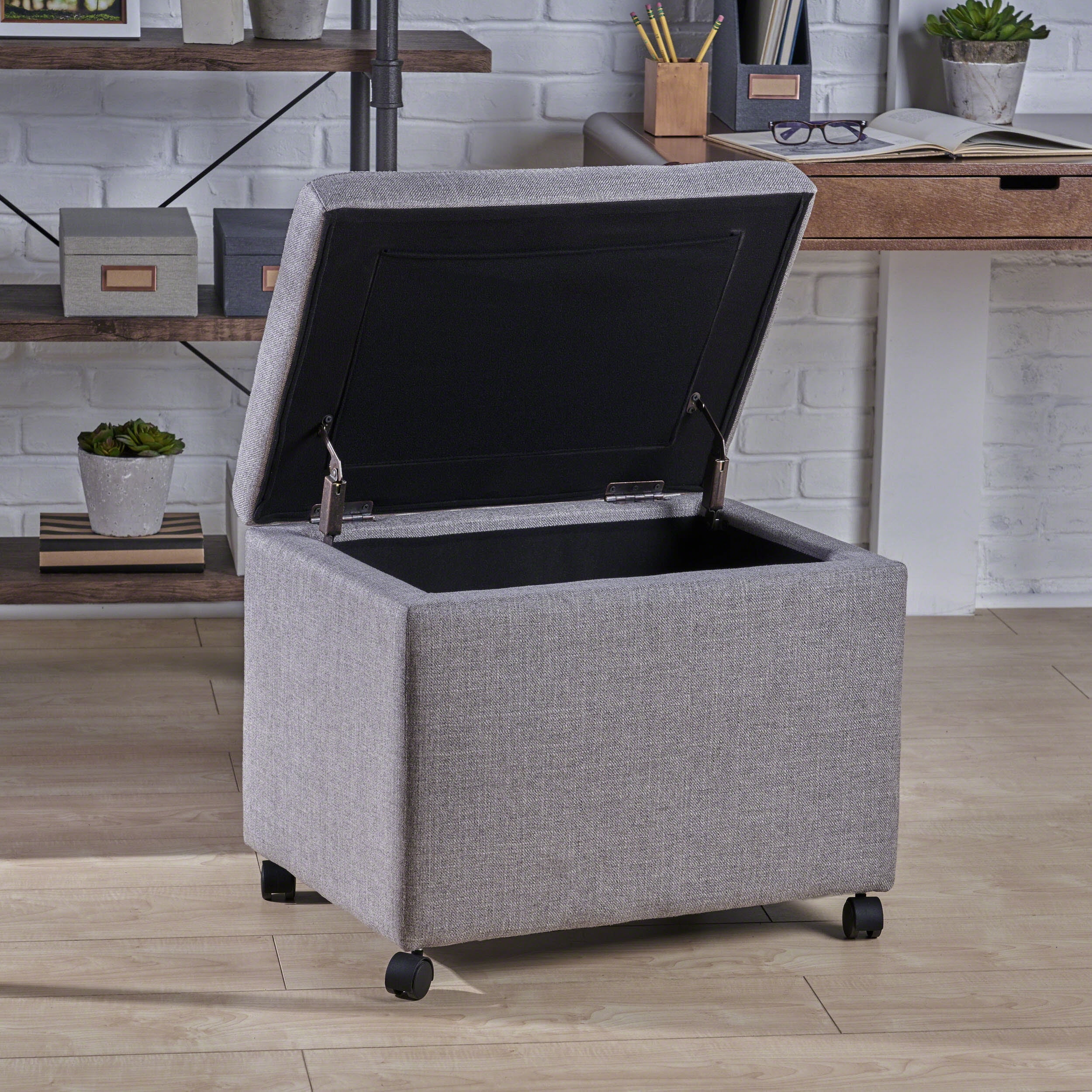 Includes: One (1) File Ottoman Material: Fabric Leg Material: Plastic Casters Color: Gray Leg Finish: Black Assembly Required Hand Crafted Details Dimensions: 18.25 inches deep x 24.25 inches wide x 20.25 inches high Interior Dimensions: 13.75 inches deep x 20.25 inches wide x 14.25 inches high