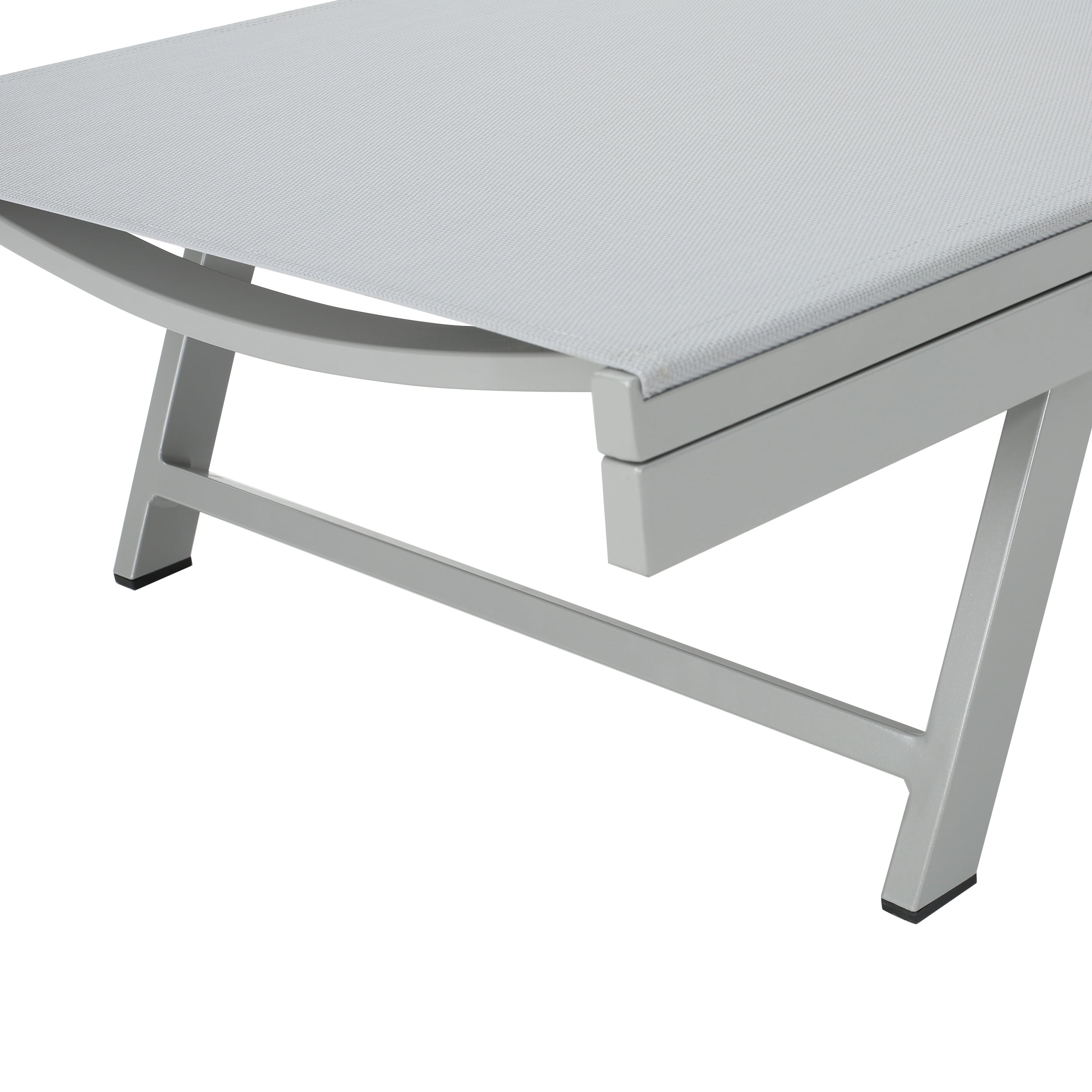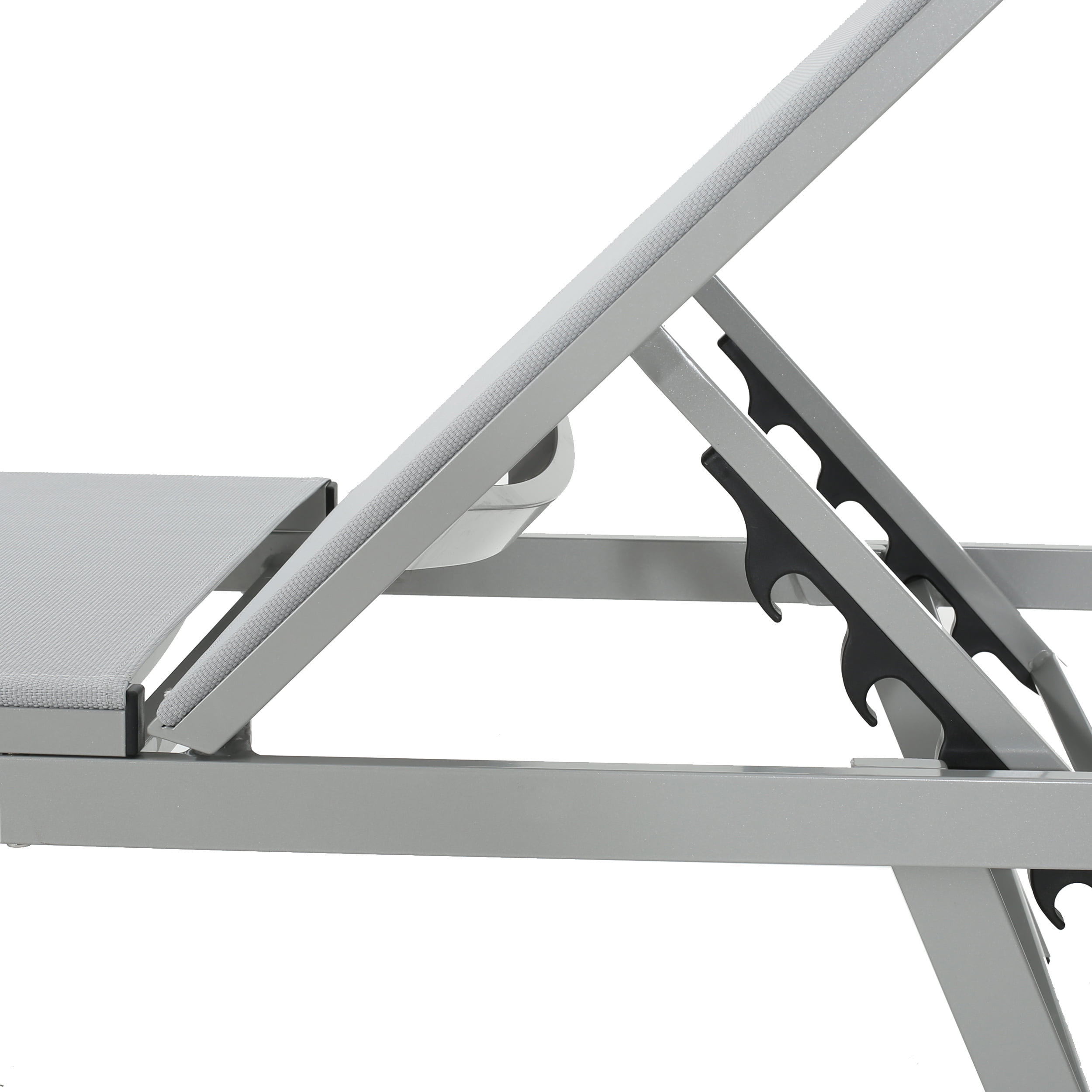 This elegant and unpretentious set of chaise lounges is perfect for sunbathing or poolside relaxing. Made from the highest-quality mesh and aluminum, they are light and maneuverable and yet, at the same time, highly durable. These will be the source of years of enjoyment. Features: Includes: Two (2) Chaise Lounges Material: Outdoor Mesh Frame Material: Aluminum Color: Grey Frame Finish: Dark Grey No Assembly Required Hand Crafted Details Specifications: Chaise Lounge Dimensions: 77.50″ D x 25.00″ W x 11.50″ H