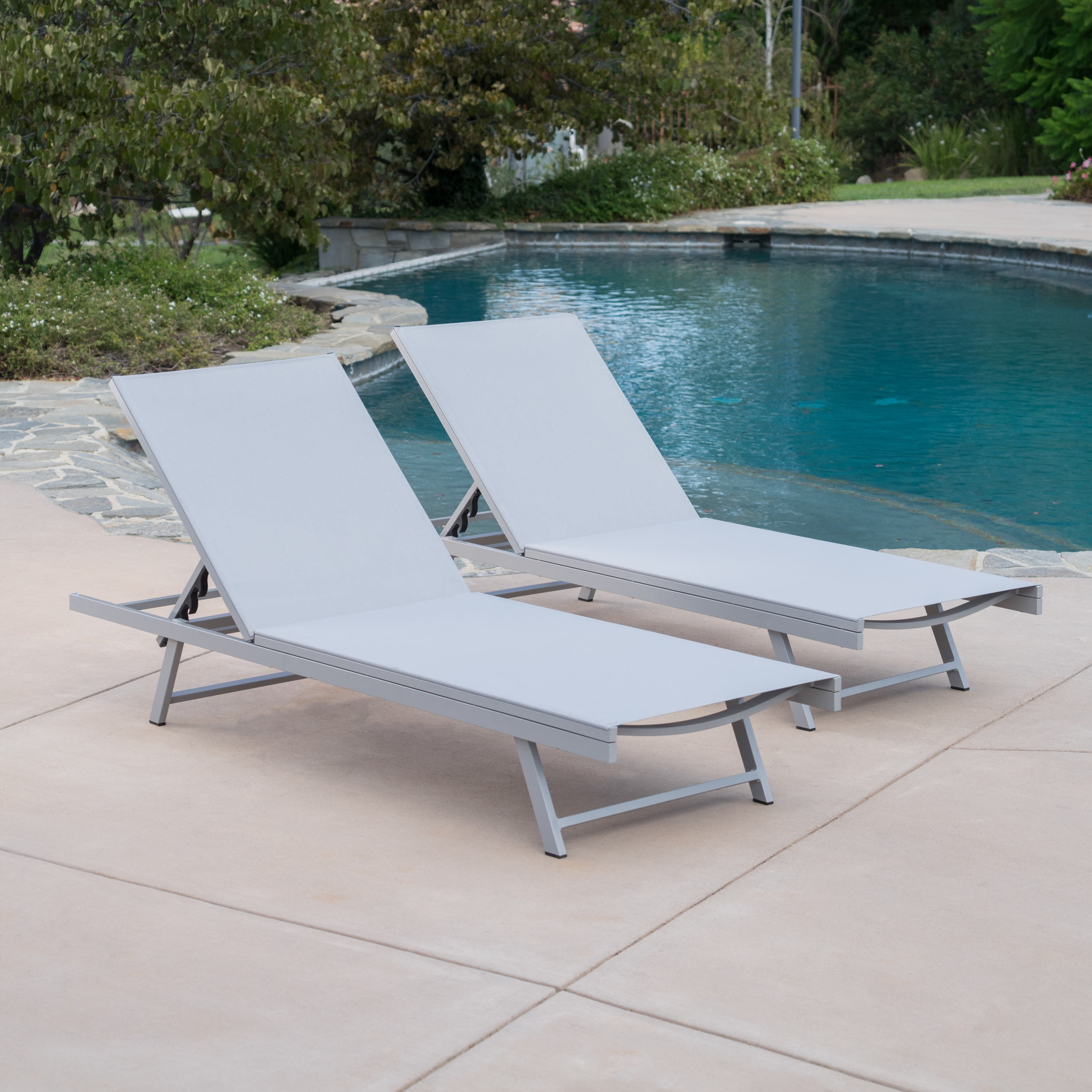 Noble House Salton Outdoor Grey Mesh Lounge Dark Grey Aluminum Frame (Set of 2)