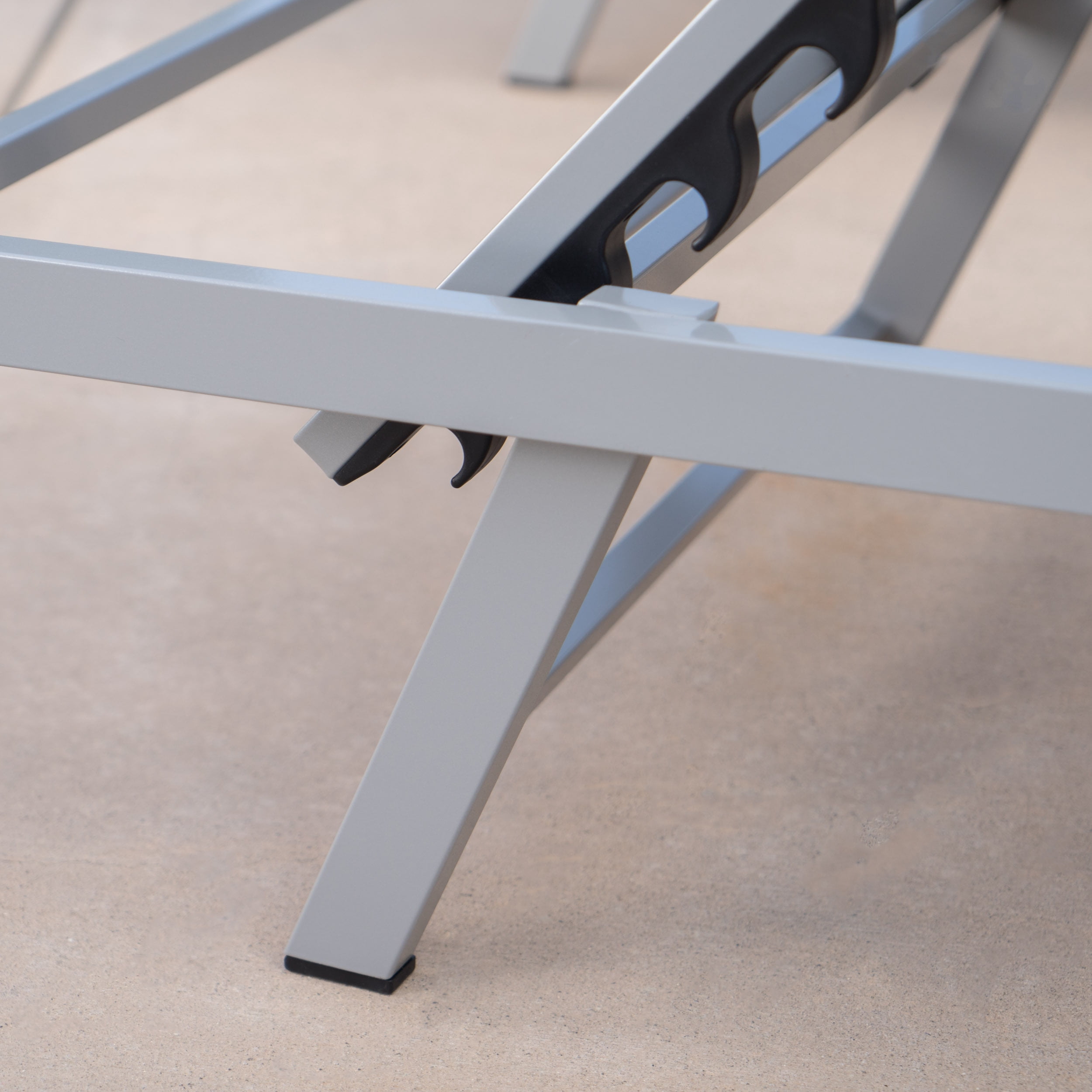 Includes: Two (2) Chaise Lounges Material: Outdoor Mesh Frame Material: Aluminum Color: Grey Frame Finish: Dark Grey No Assembly Required Hand Crafted Details