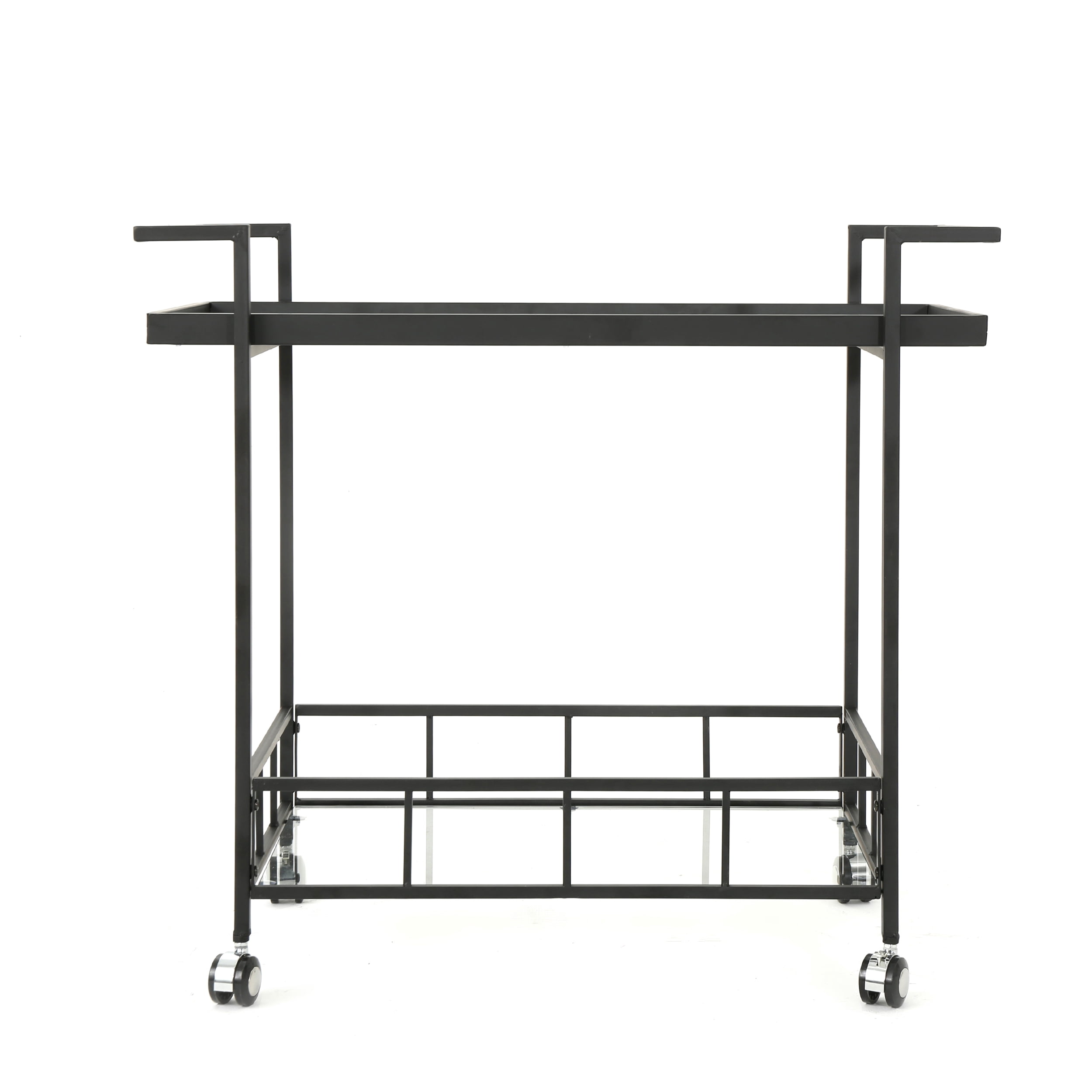 Noble House Sarrave Indoor Industrial Iron 29 in Bar Cart with Tempered Glass Shelves,Black