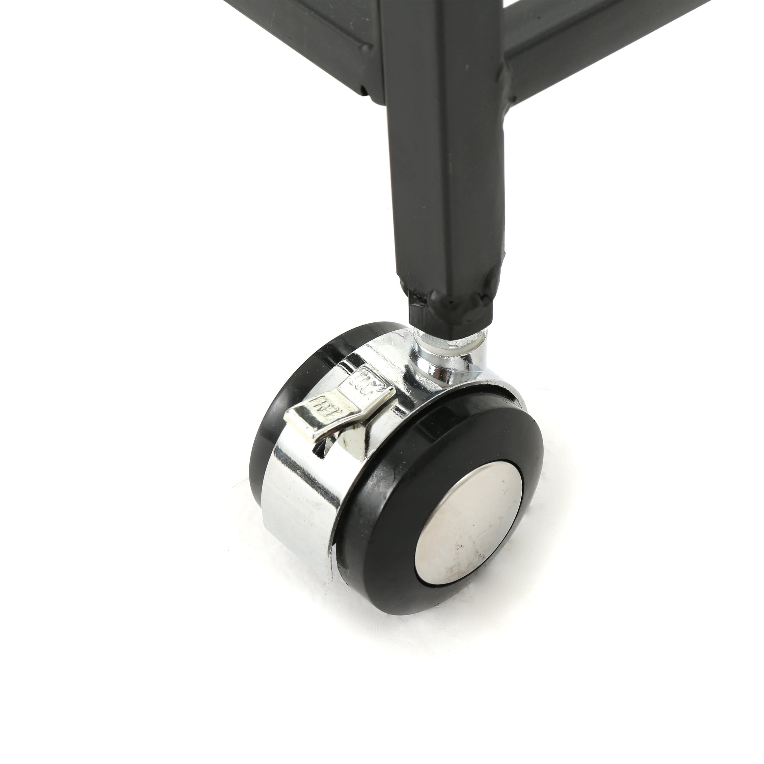 Host a beautiful soiree with help from our handy and lovely bar cart. Featuring durable metal construction and a matte finish, this cart adds a glam element to your home. Two tempered glass shelves ensure ample space for all your barware and beverages, while rolling casters add to the smart design. The clean, modern silhouette is sure to be the talk of your next soiree. Use our chic bar cart to make your parties as fun, unique, and well-put-together as you are.Dimensions: 18.80 inches deep x 35.50 inches wide x 32.00 inches high