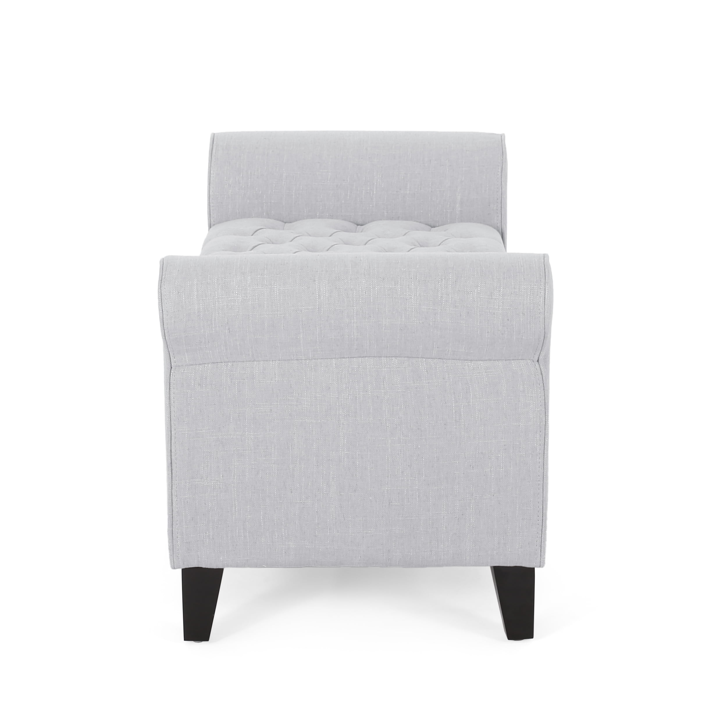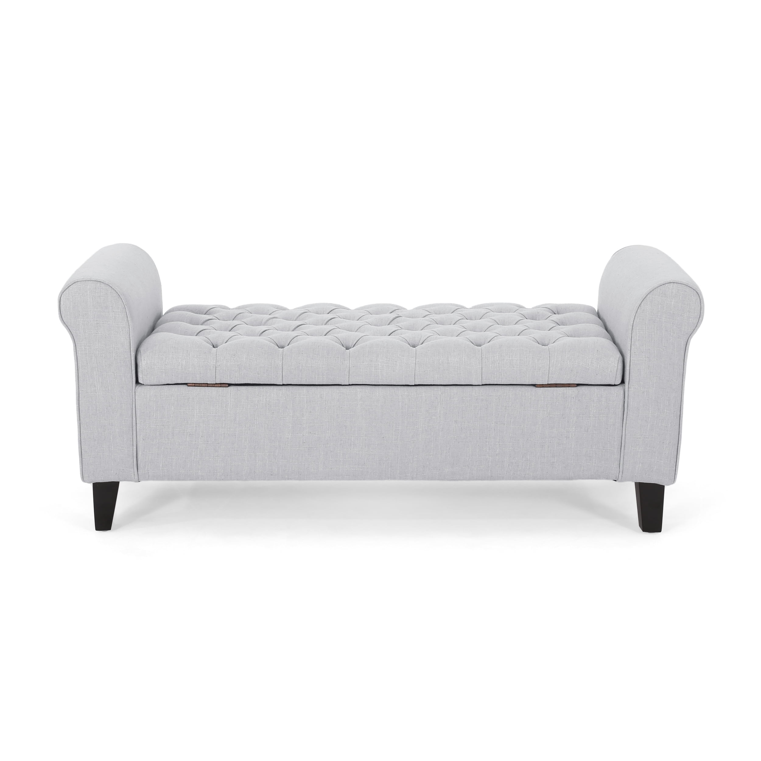 Unclutter your home with an elegant companion that will greet your guests with a refined flourish. Perfect for your living room, foyer, or bedroom, this ottoman bench boasts convenient storage space while offering your decor a graceful atmosphere. With rolled arms, lovely button-tufting and soft pressure hinges, this ottoman is an ideal addition for any home, adding class and function to your interior space. This ottoman will tie your home together with its versatility and stunning looks that will impress for years to come. CONTEMPORARY DESIGN: Featuring deep button tufting and beautifully rolled arms, our storage ottoman offers the look, feel, and design of a truly contemporary piece. With a minimalistic yet refined structure, this piece brings out a simplistic style that emphasizes comfort and functionality. BUTTON TUFTED DIAMOND STITCH: The button-tufted stitching in the lid offers an extra touch of sophistication that enhances its contemporary design. The diamond stitch pattern adds a bit of texture without sacrificing any comfort. ROLLED ARMS: To complete the refined contemporary look, this ottoman bench features elegantly rolled arms for a luxurious look. This adds an air of sophistication to your room and compliments the tufted diamond stitched lid. VERSATILE: This ottoman bench can function as extra seating while you put on your shoes or can act as storage space for all of your pillows and blankets. This uses pressure hinges so that the lid will stay open on its own and will also ensure a soft close. IDEAL FOR SMALL SPACES: Choose an accessory that is the perfect size for you and your furniture. This storage ottoman is 50.00″ W x 19.50″ D x 20.50″ H with a seat width of 38.00″ and a height of 15.00″. You will love how much your space can transform with the simple addition of this charming ottoman bench.